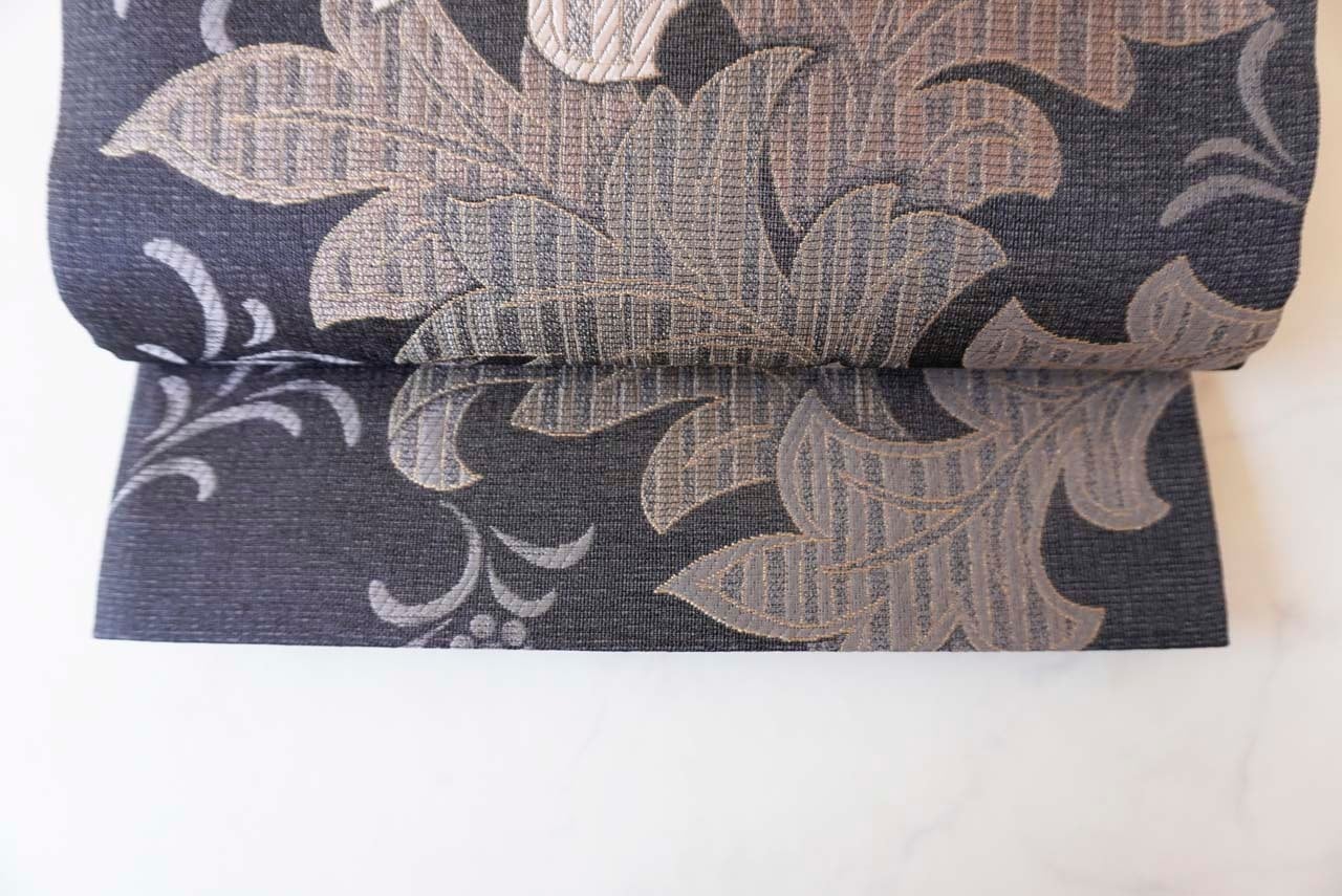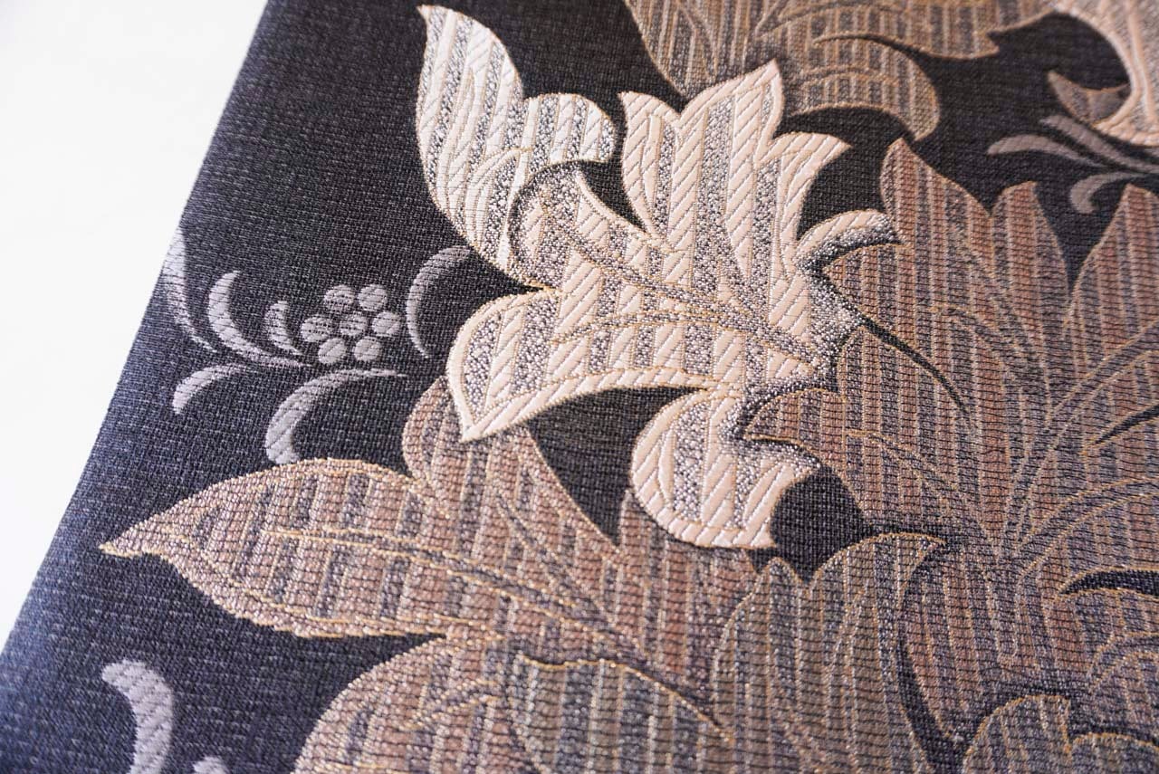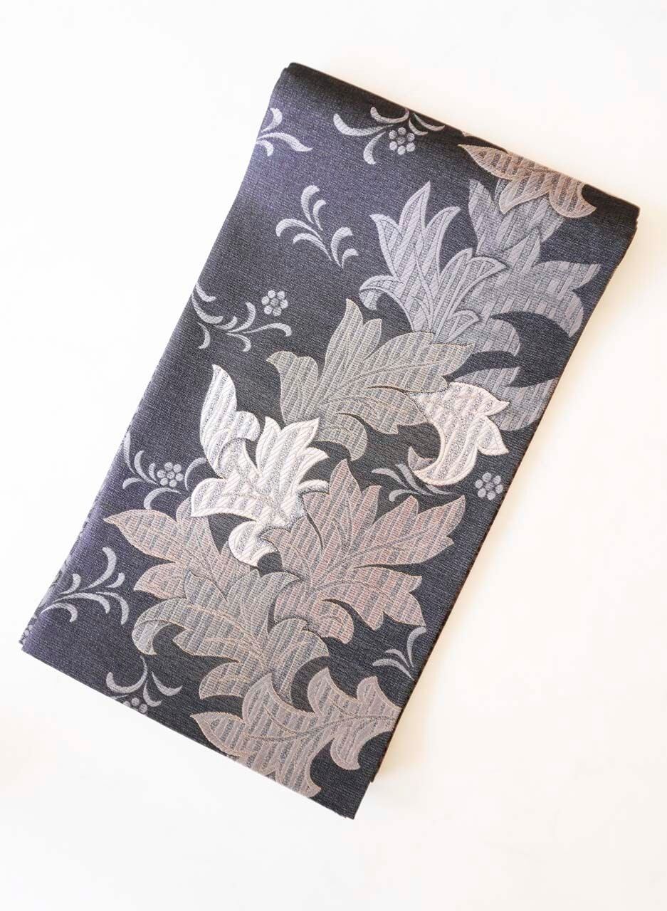 【ふくろ帯】吉村織物 備長炭染め モリスアカンサス文 ふくろ帯