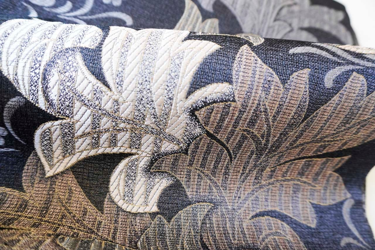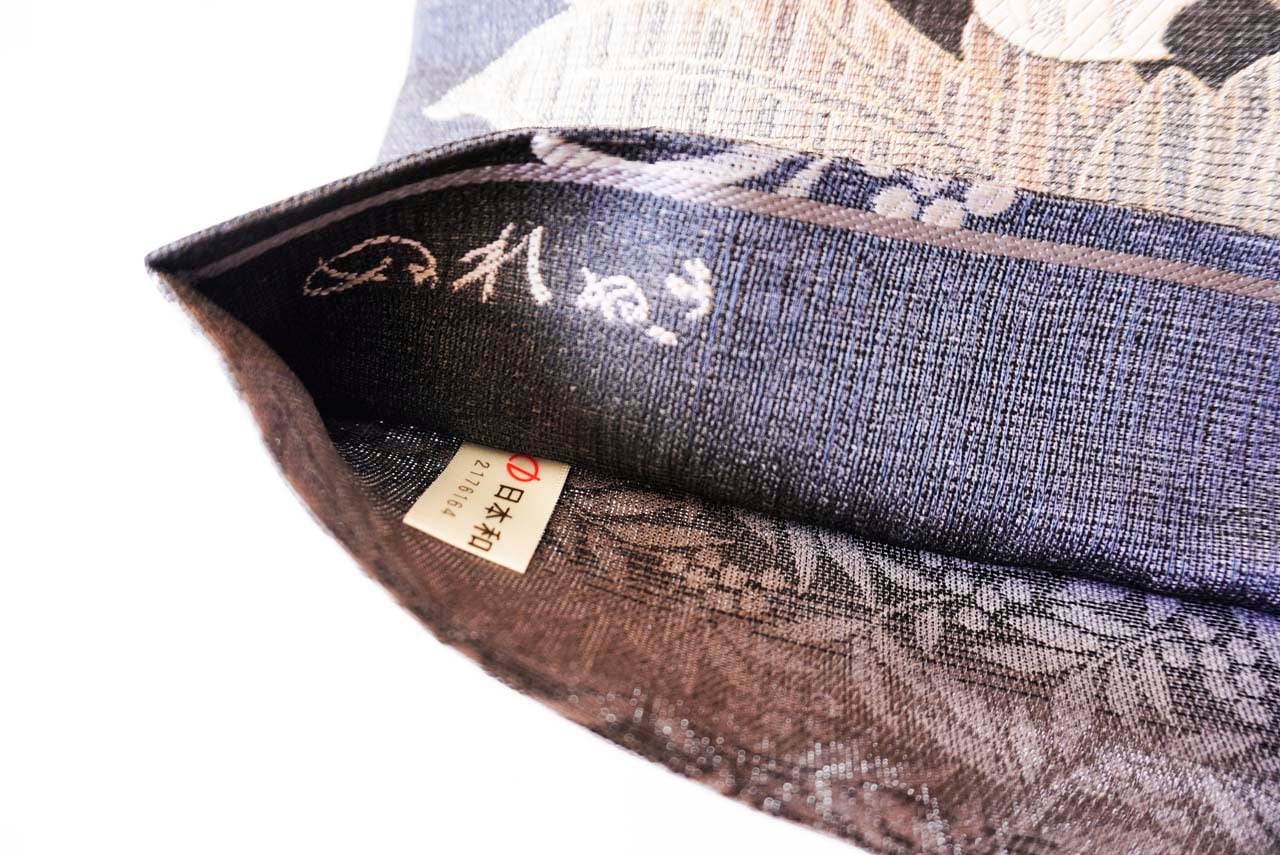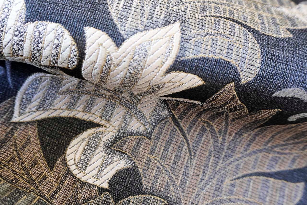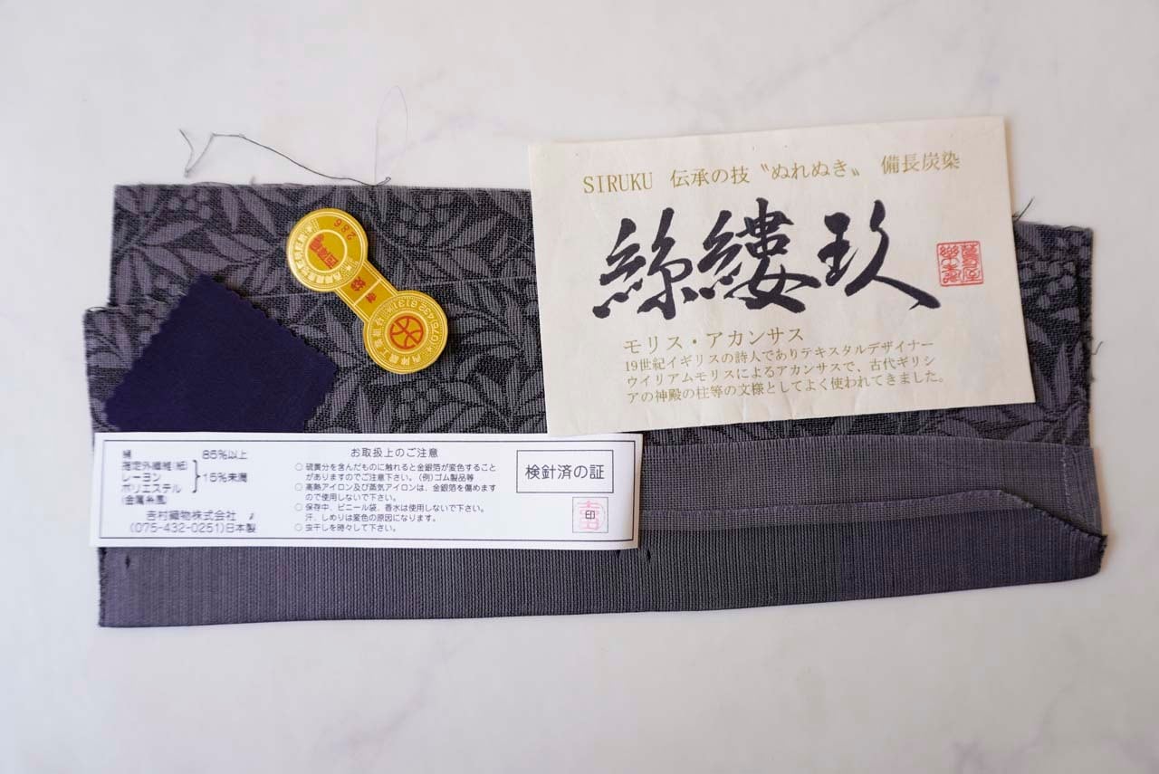 【ふくろ帯】吉村織物 備長炭染め モリスアカンサス文 ふくろ帯