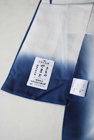 裾まわりと肩に、同系色の横段暈しがゆったりと広がり、