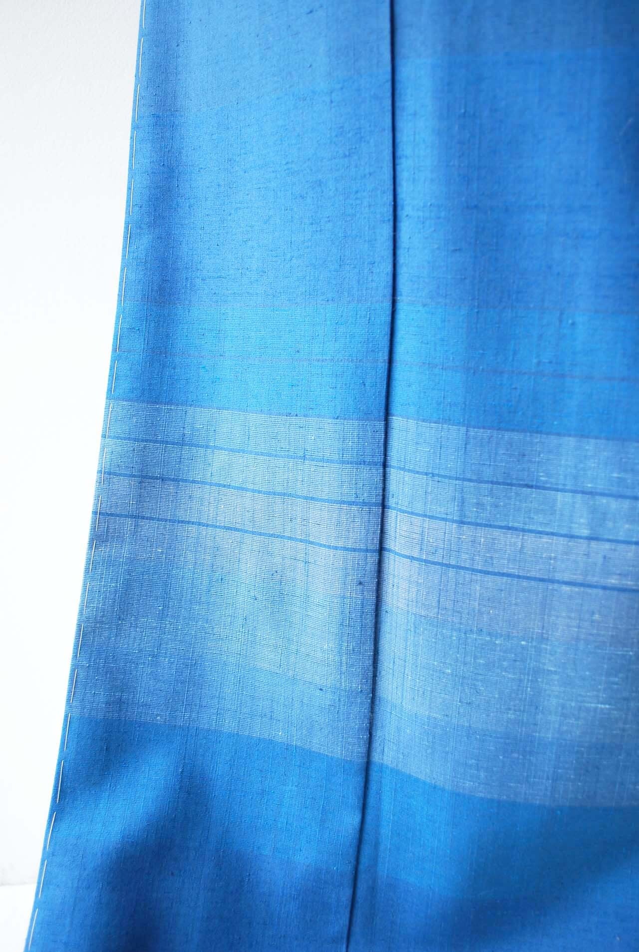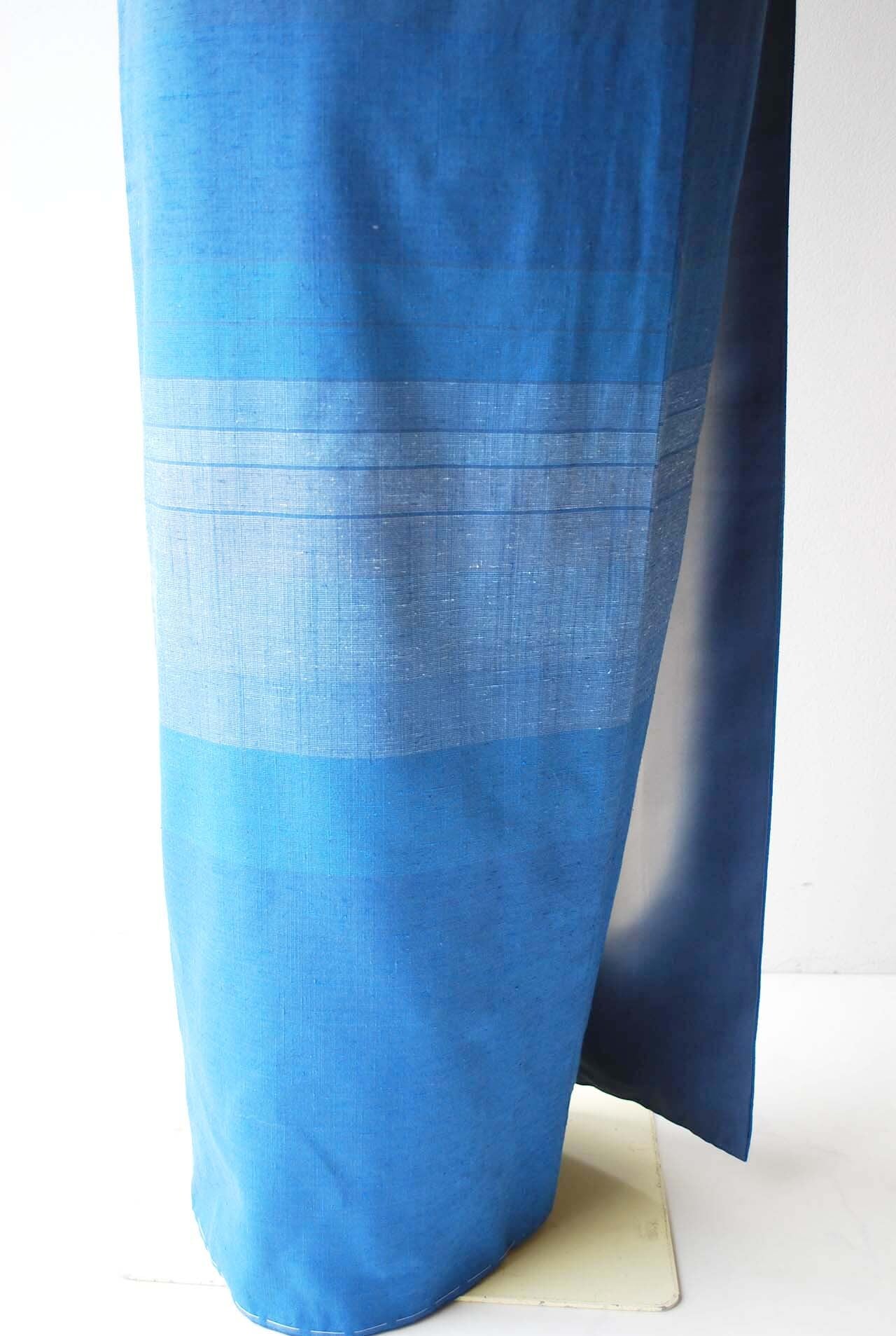【袷】奥順製 瑠璃色 横縞文 本場結城紬 付下げ