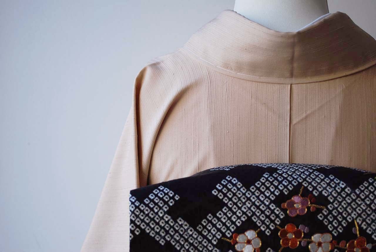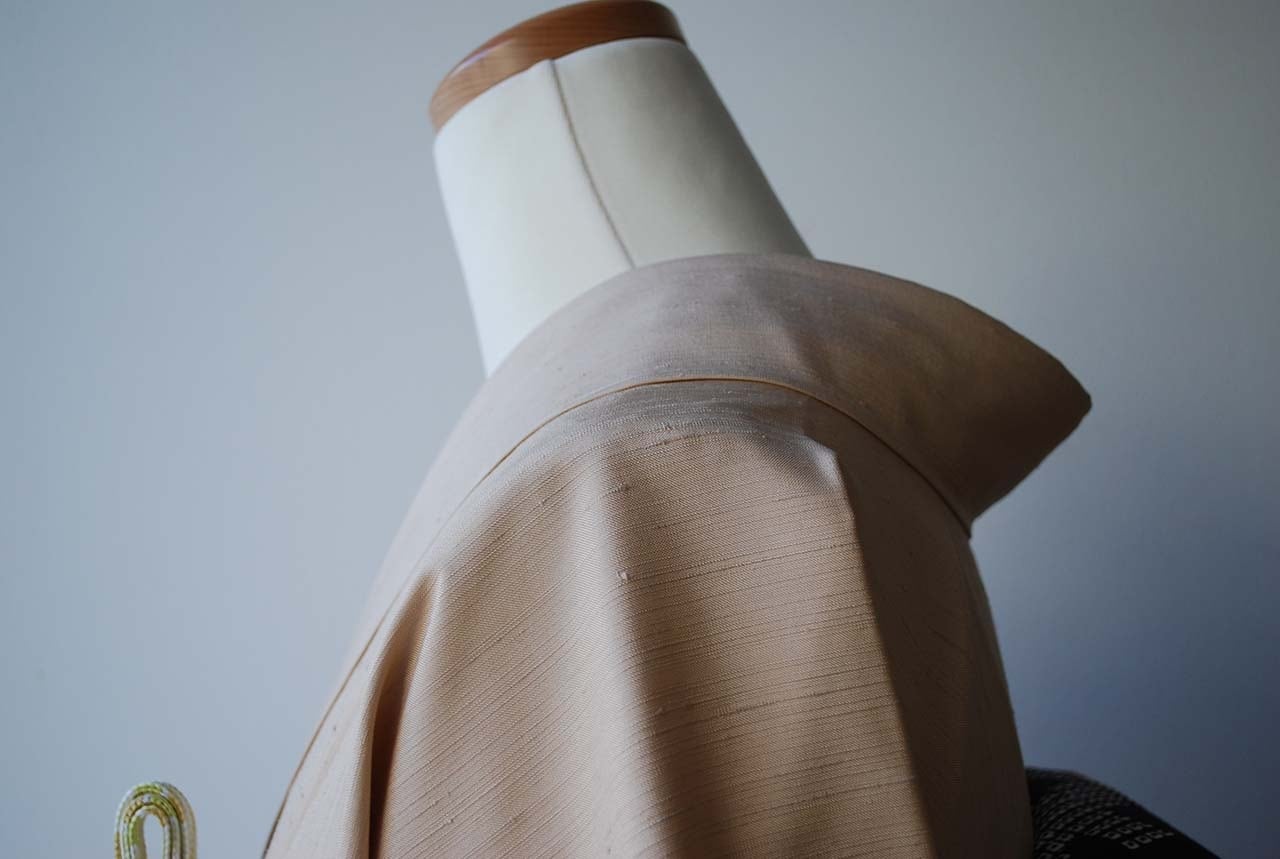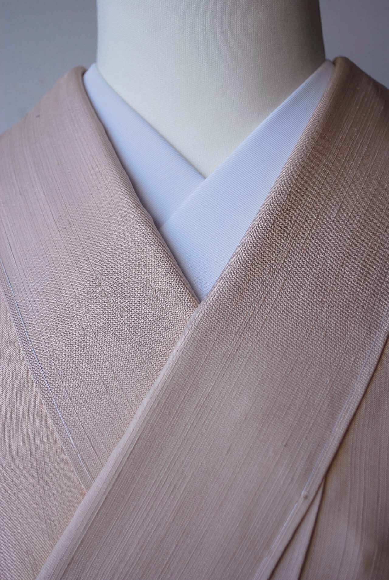 【袷】肌色 無地紬 ゆったりサイズ