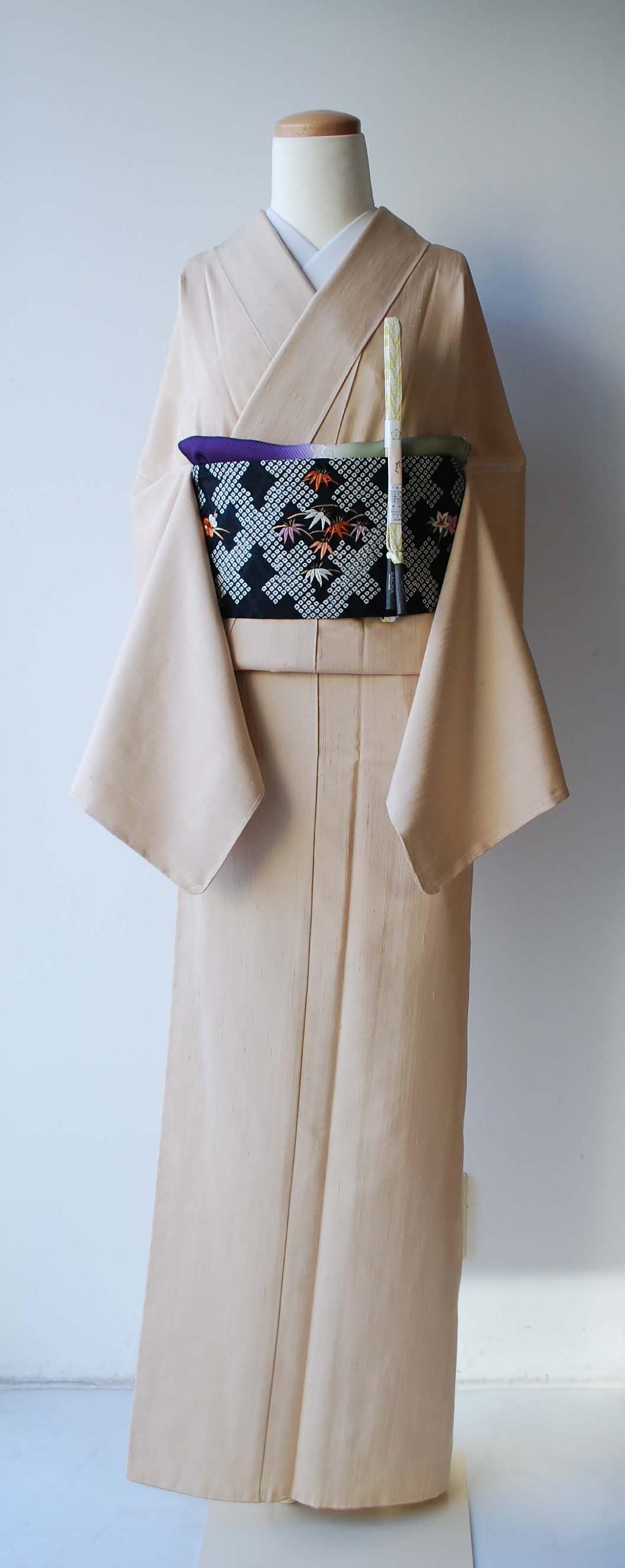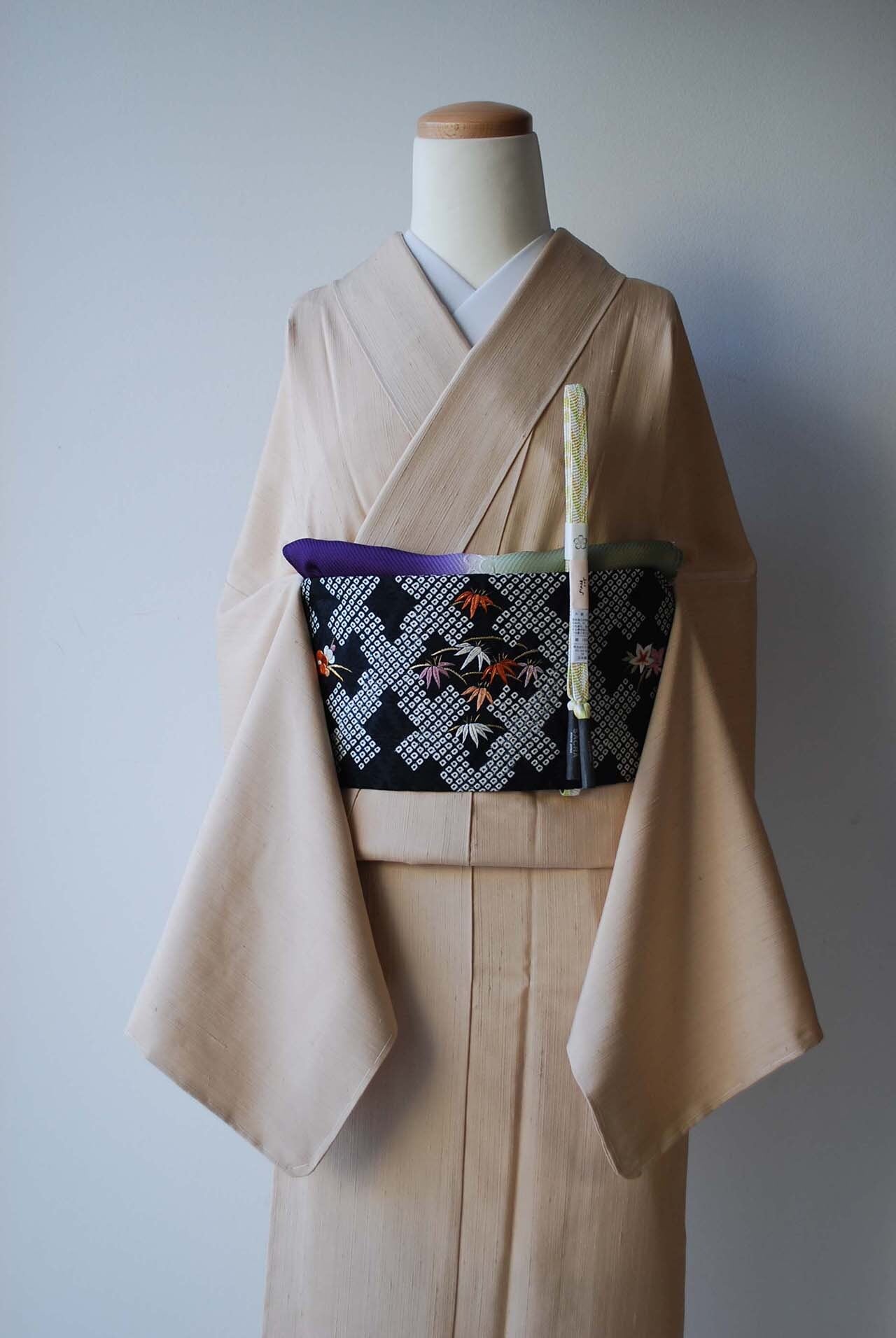 着回し抜群の無地紬、半幅帯から