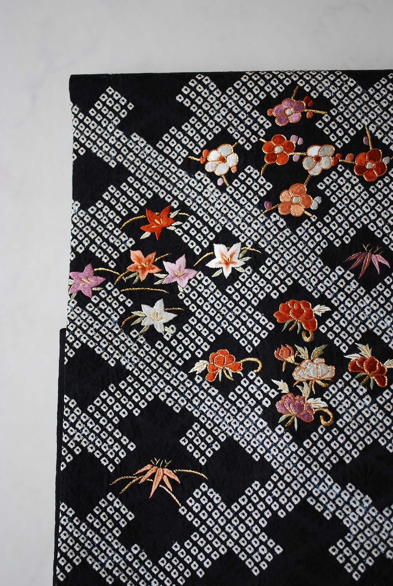 色とりどりの絹糸で丁寧に刺し込まれ、