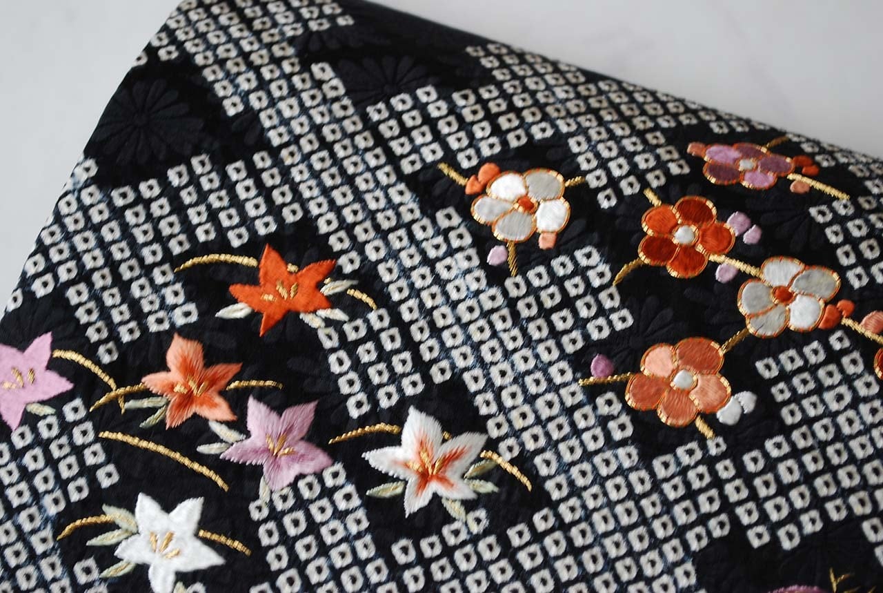 手刺繍の四季花文が映える