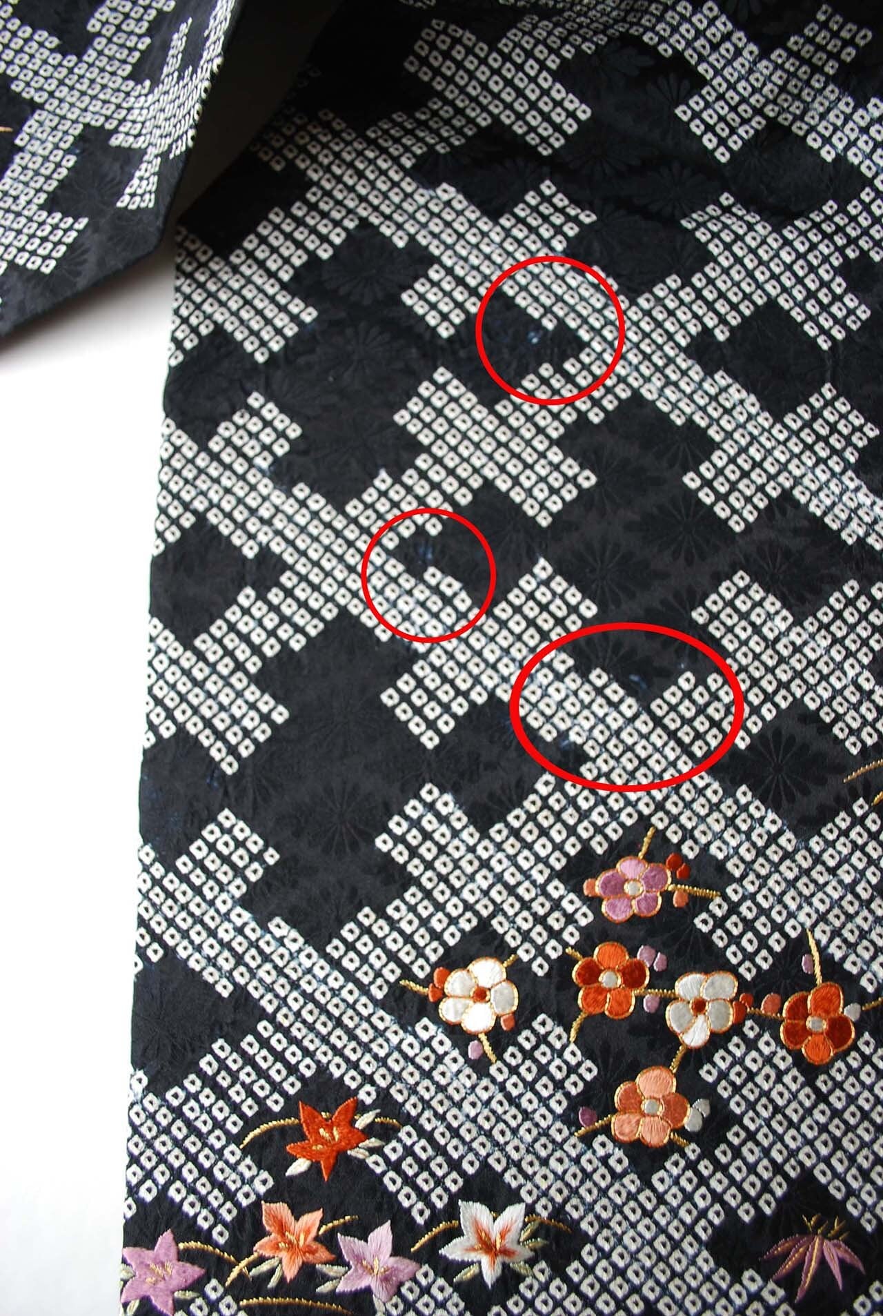 状態:ところどころ染ムラ、絞りに伴う滲みがございます
