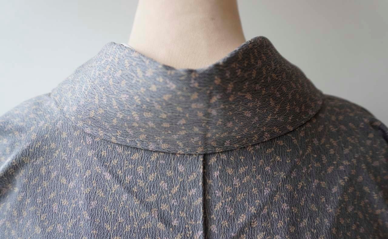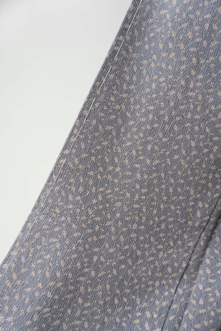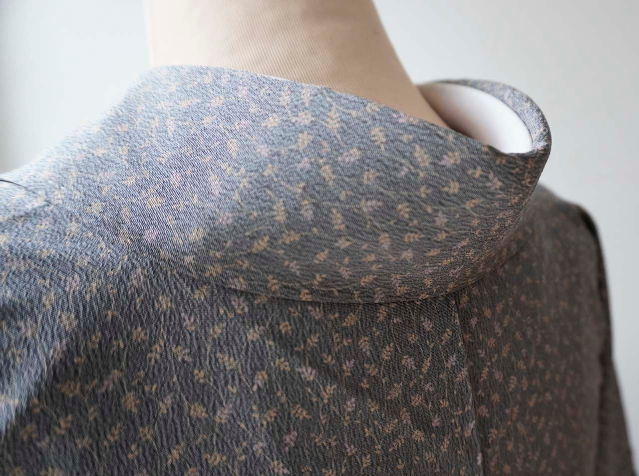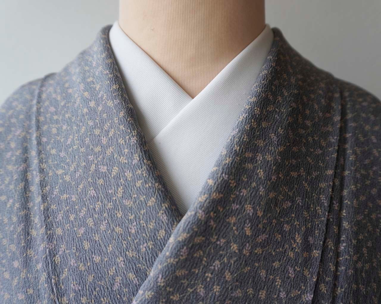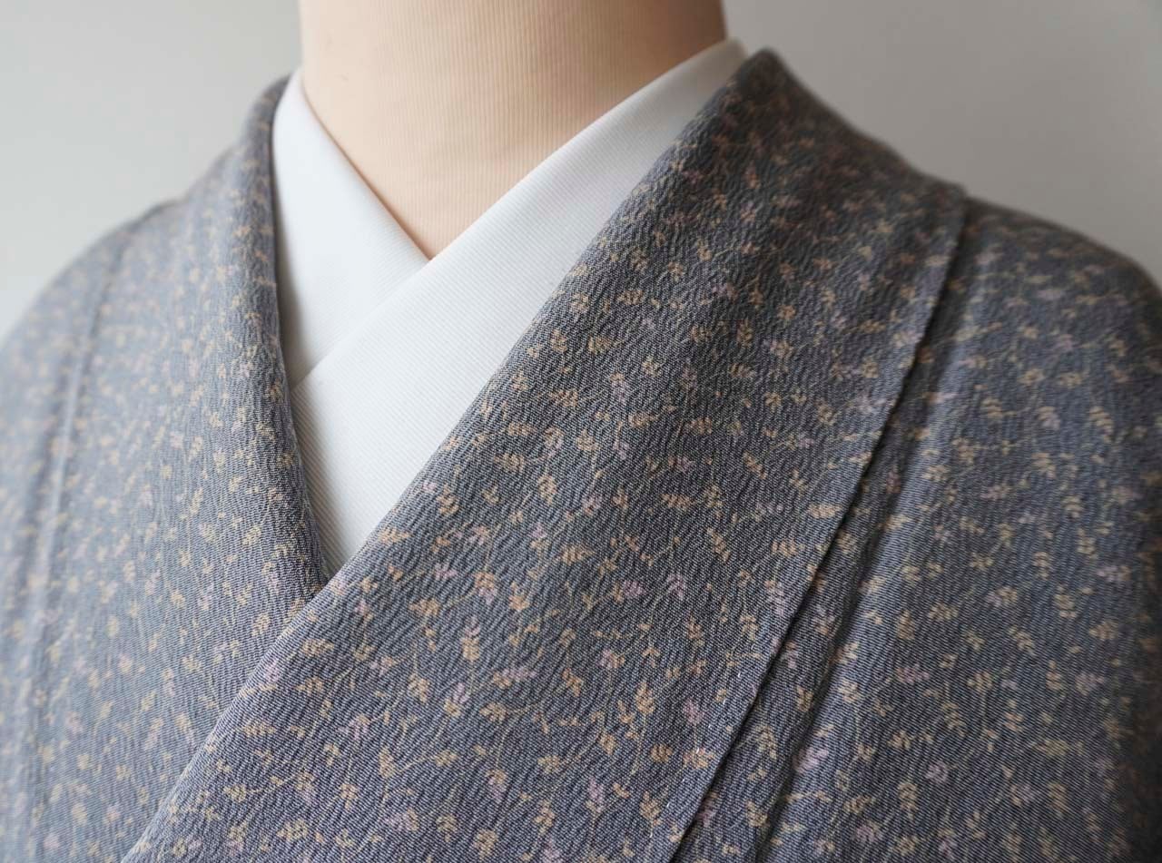 【袷】淡紫鼠色 小葉紋 縮緬 小紋