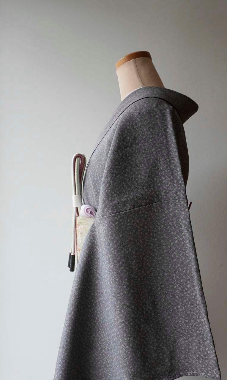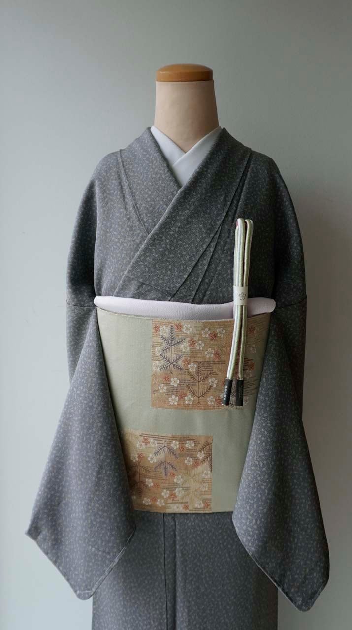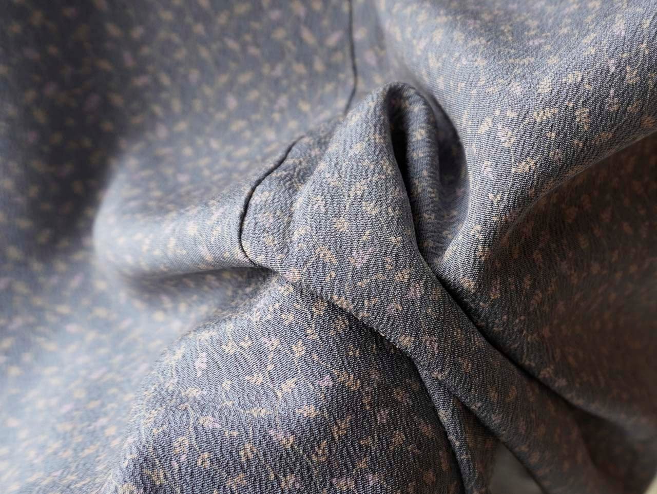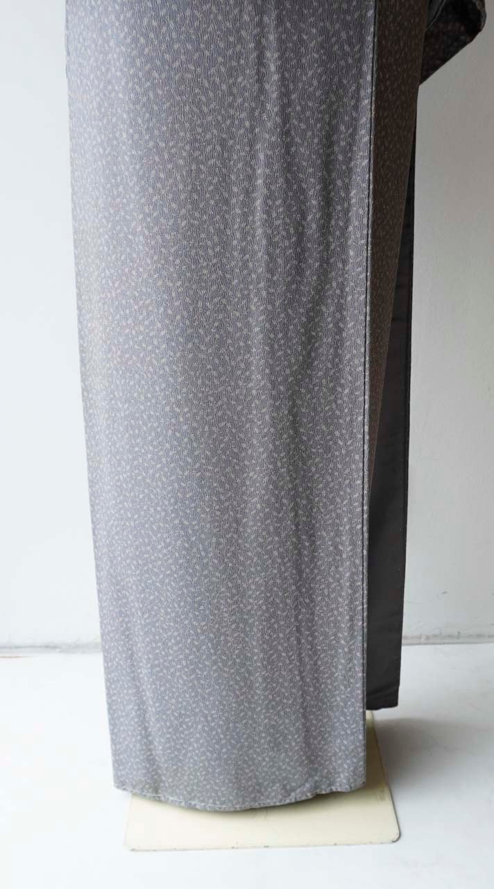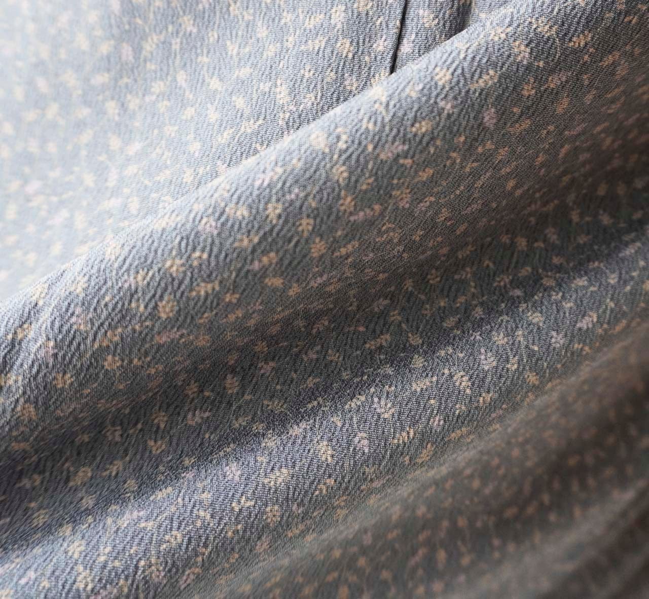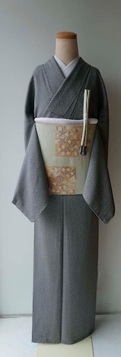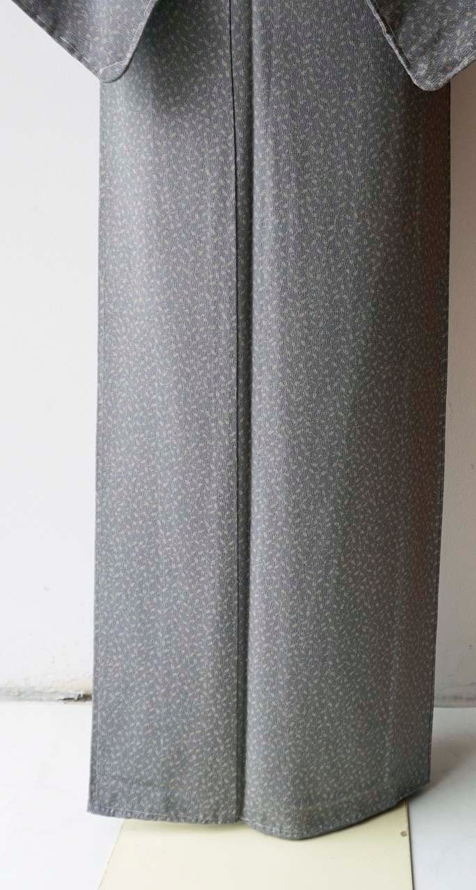 【袷】淡紫鼠色 小葉紋 縮緬 小紋