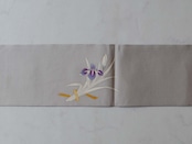 【なごや帯】絹鼠地 兜に菖蒲 塩瀬なごや帯