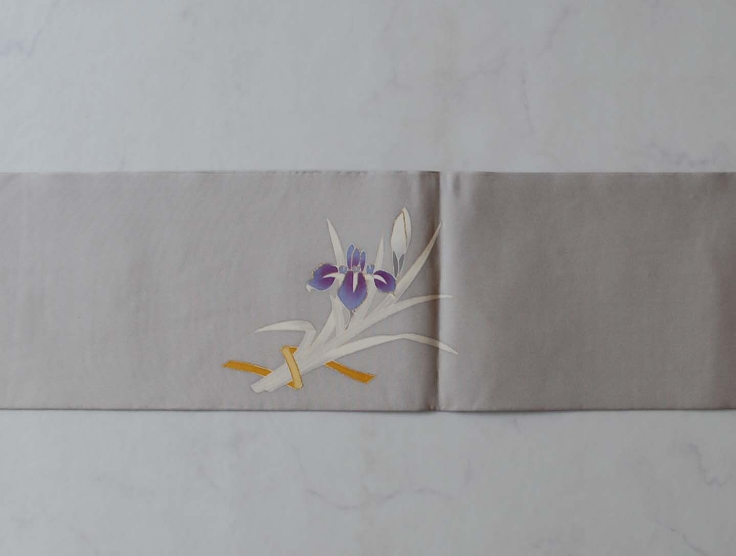 凛と咲く菖蒲の花と白銀の楓の葉が添えられています。