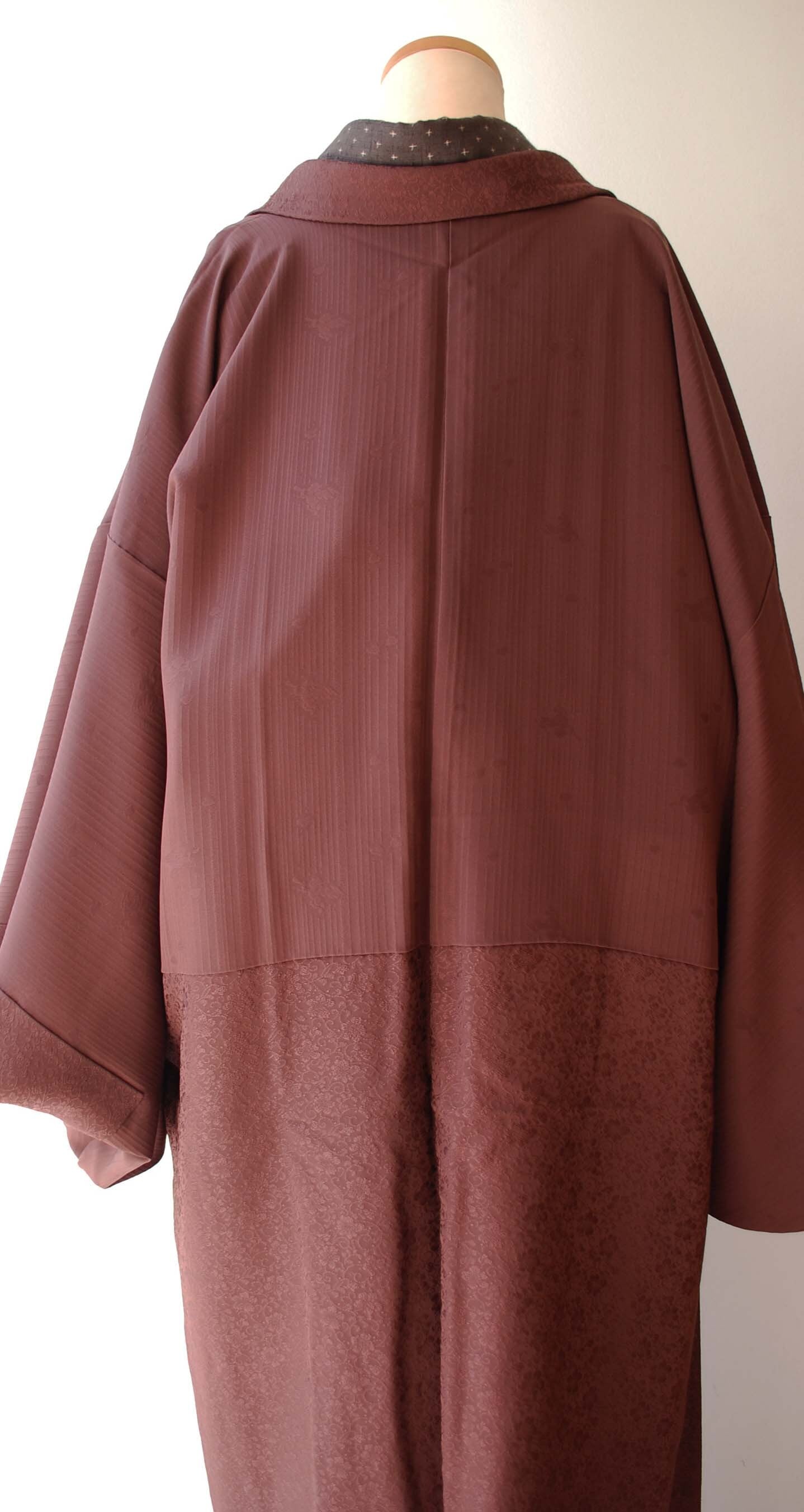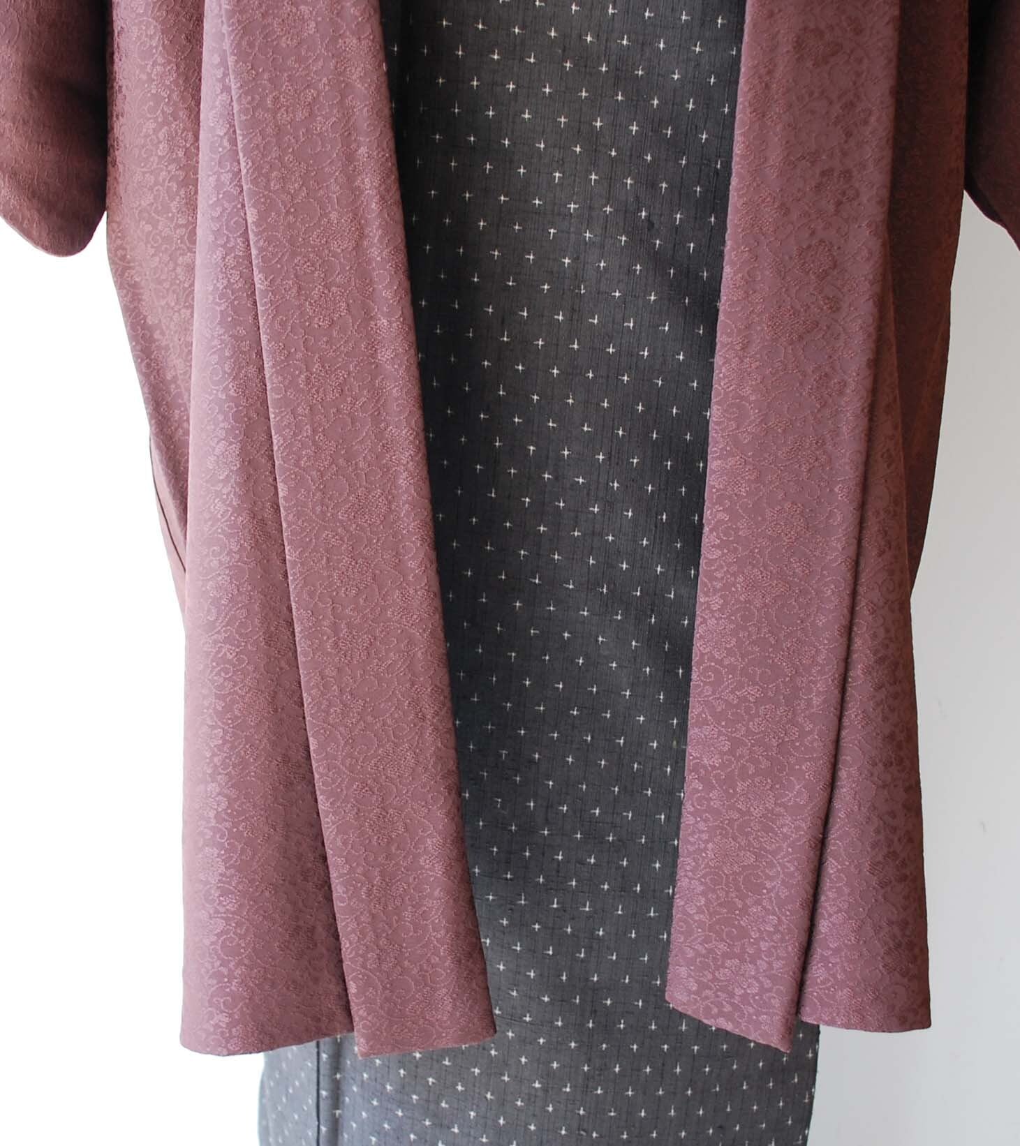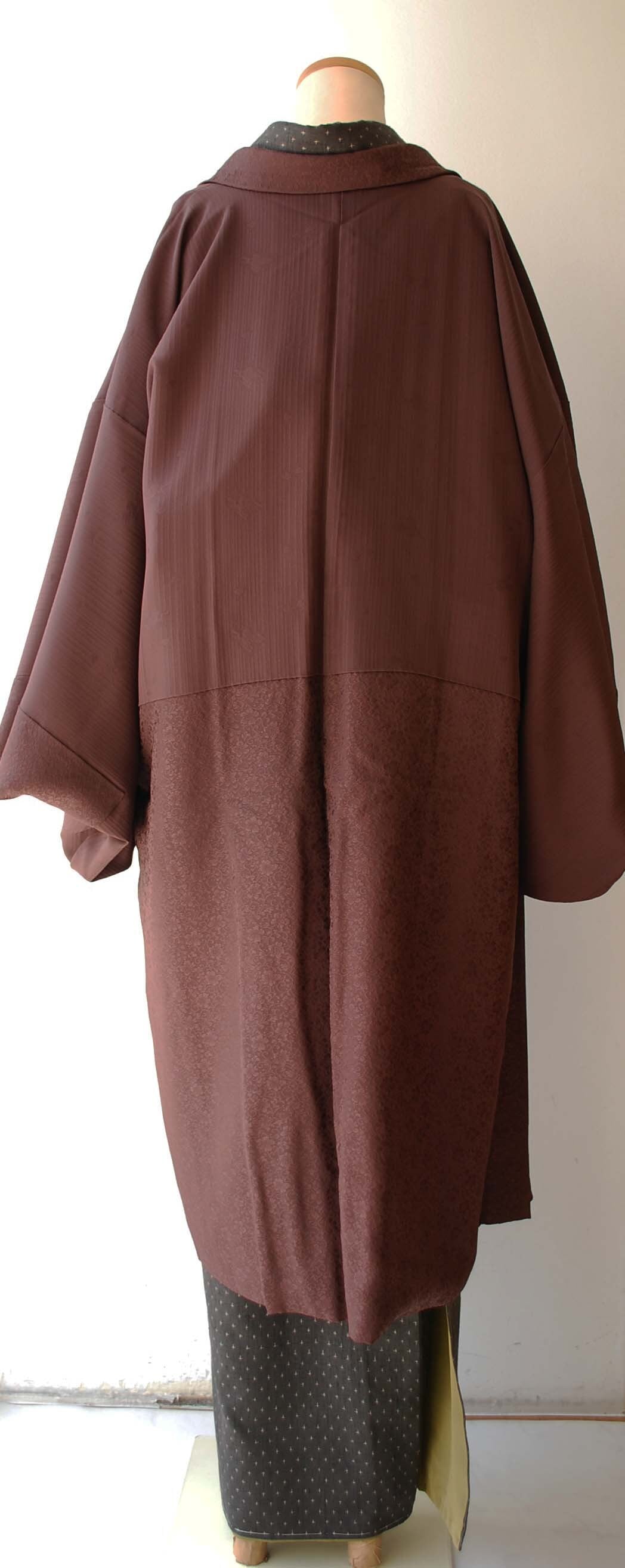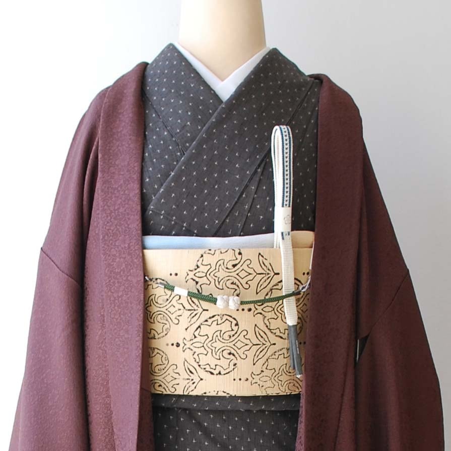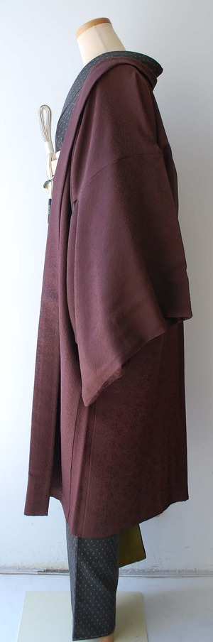 【袷羽織】 栗皮茶色 唐草地紋 袷羽織