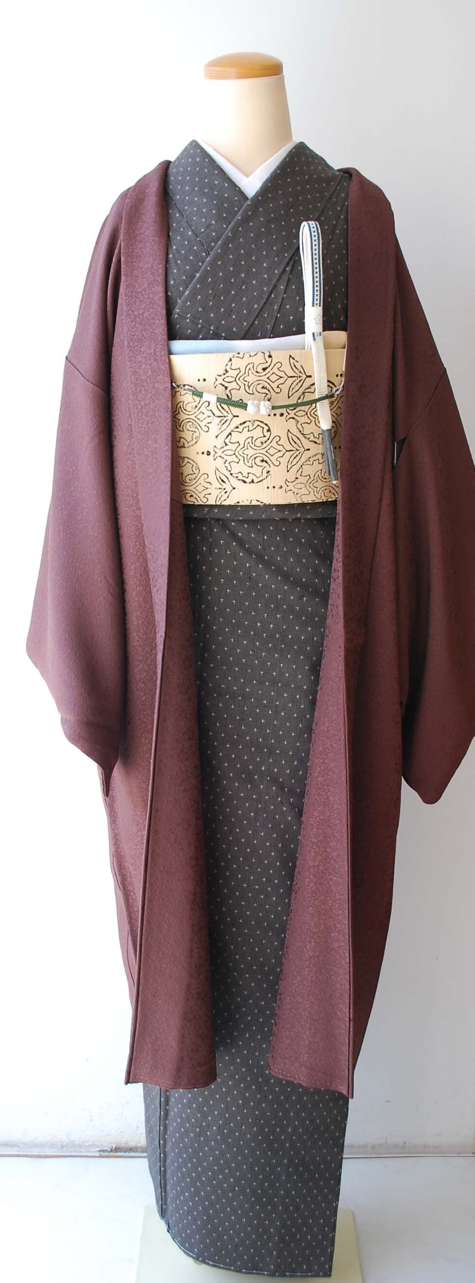 風情のある柄付けの柔らか物にも無地の紬にも