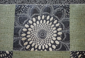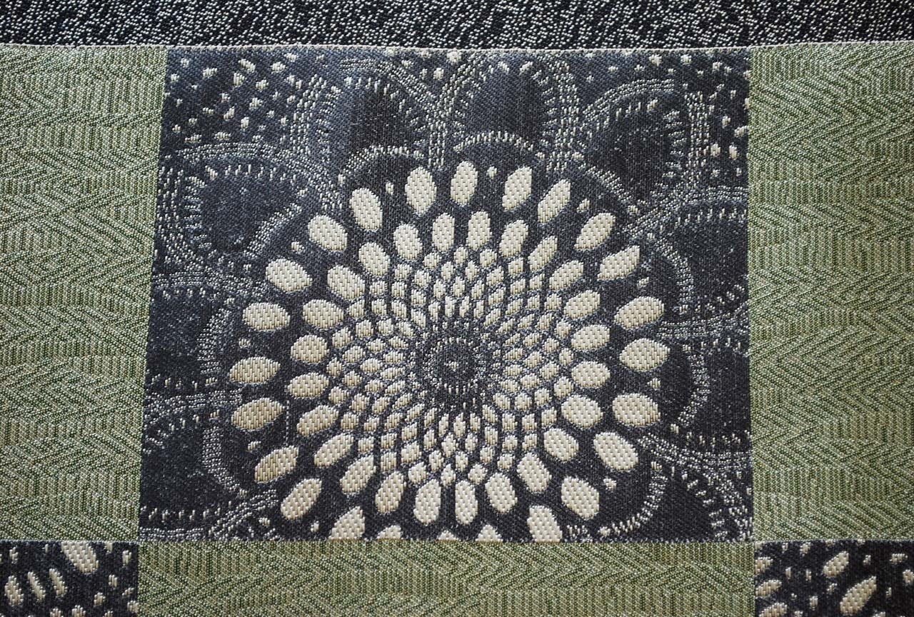大胆な市松取りの中には菊をモチーフにしたような