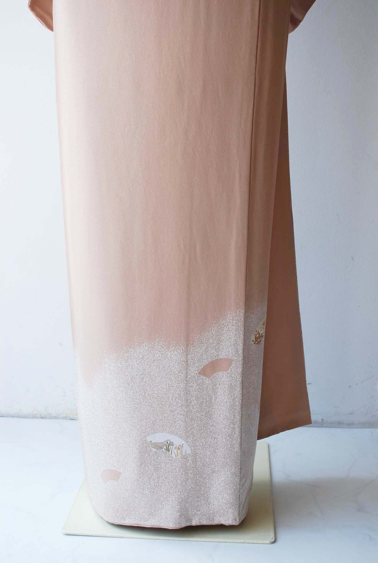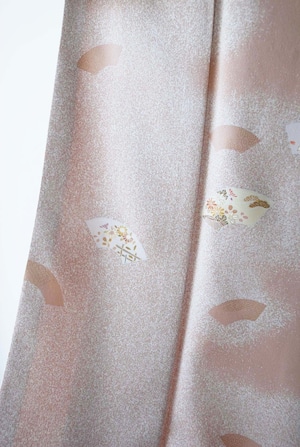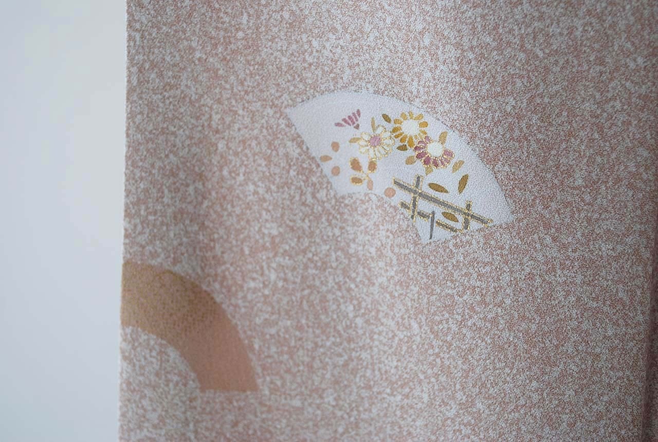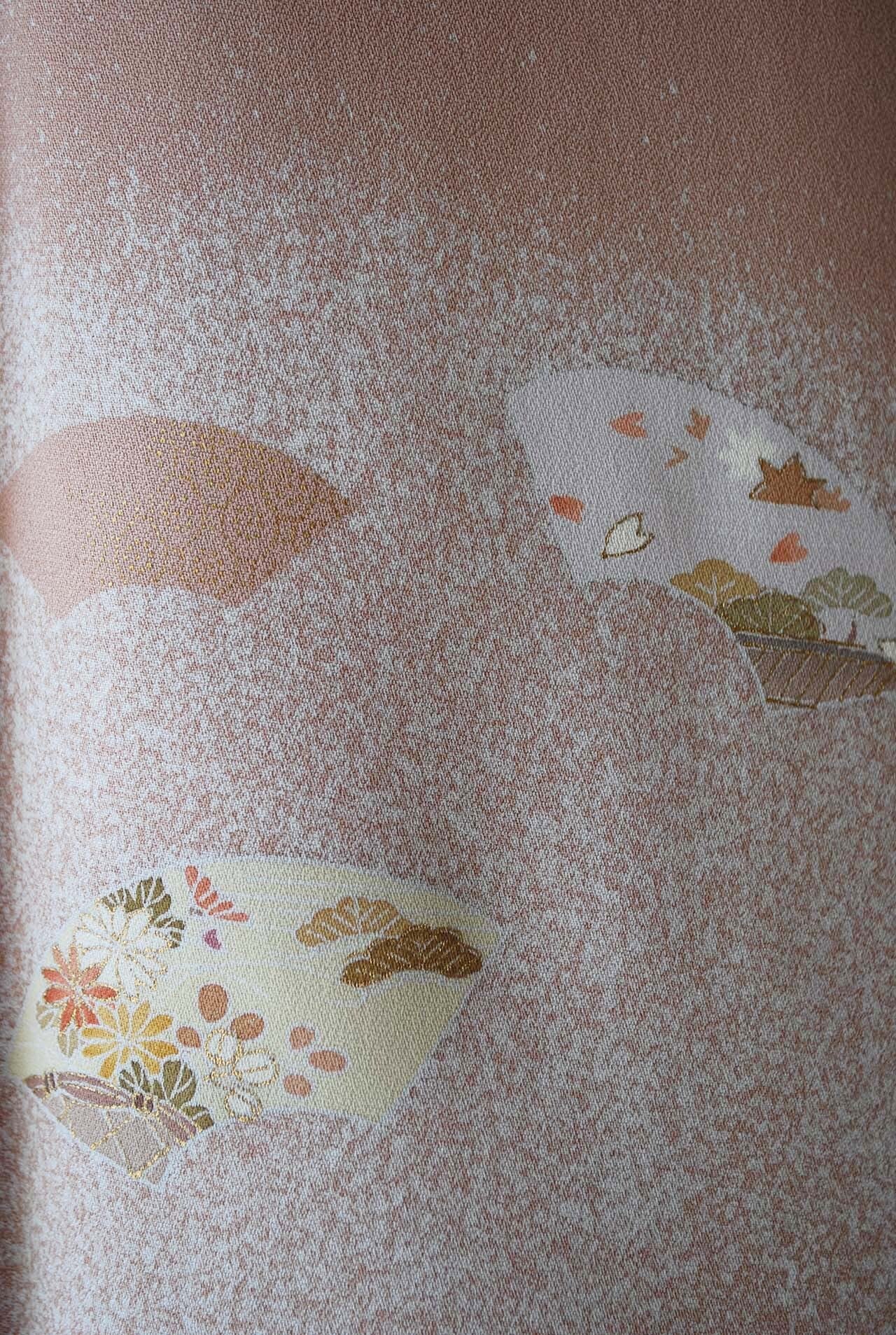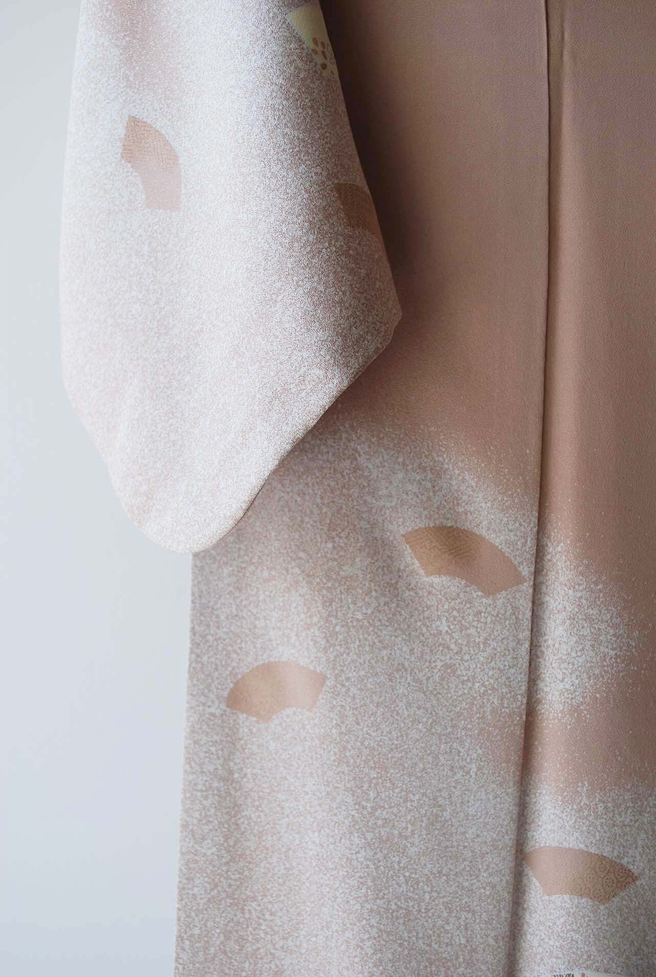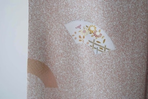【袷】灰梅色 扇面紋 付下げ