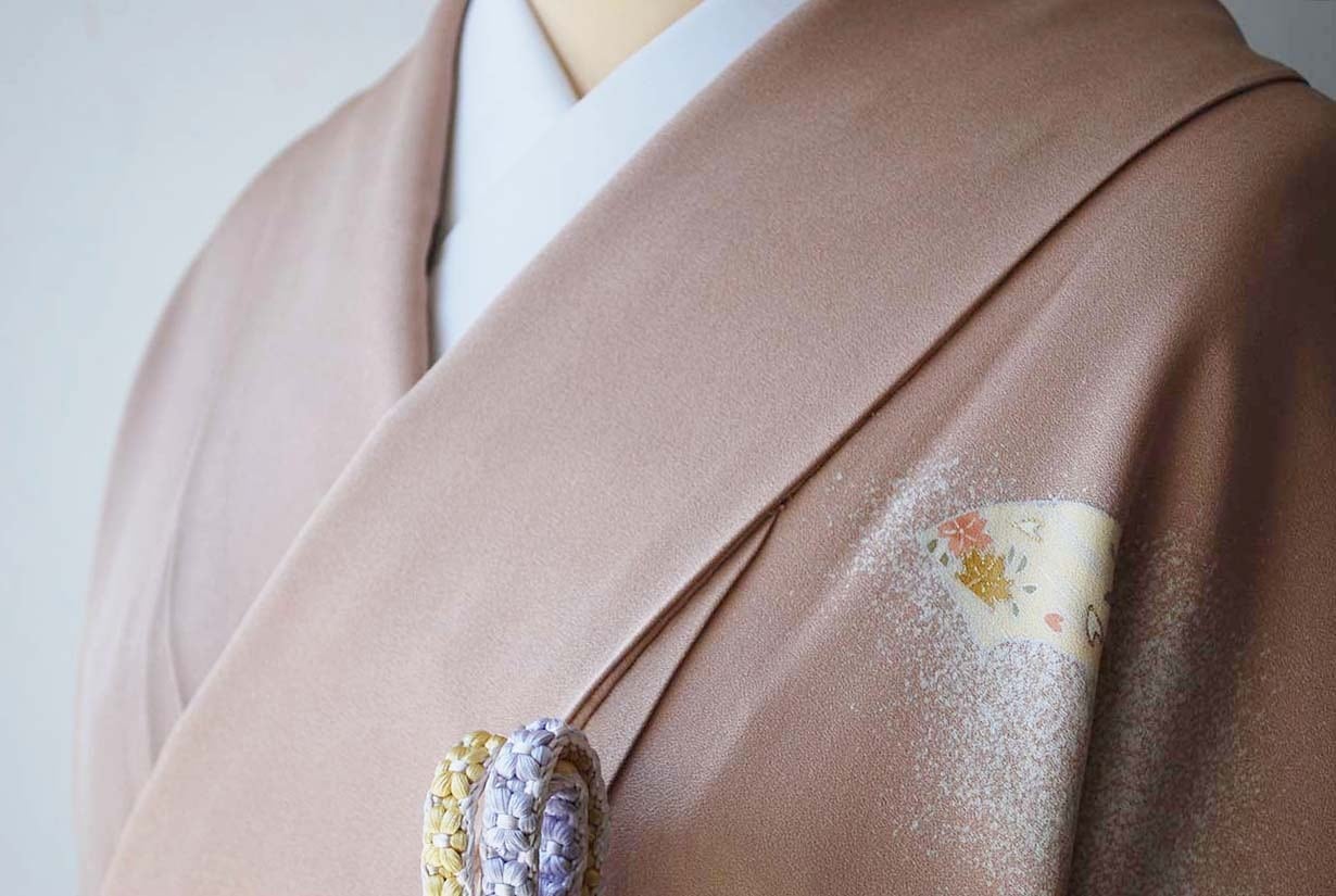 ほんのりと赤みをおびた、やわらかな灰梅色の付下げです。