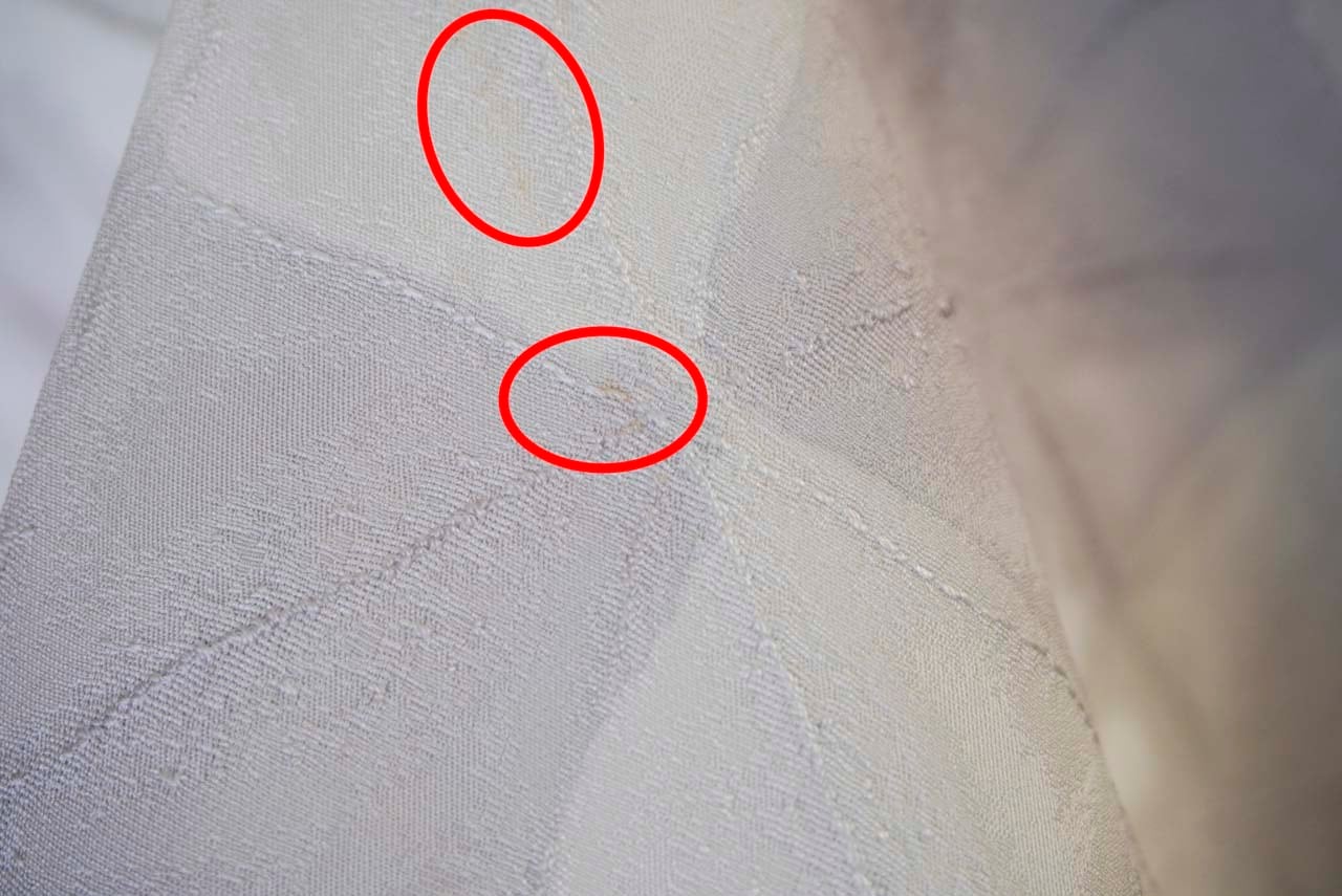 ・上前うち揚げ1㎝付近と内側の八掛に点染みがあります(画像17、18)
