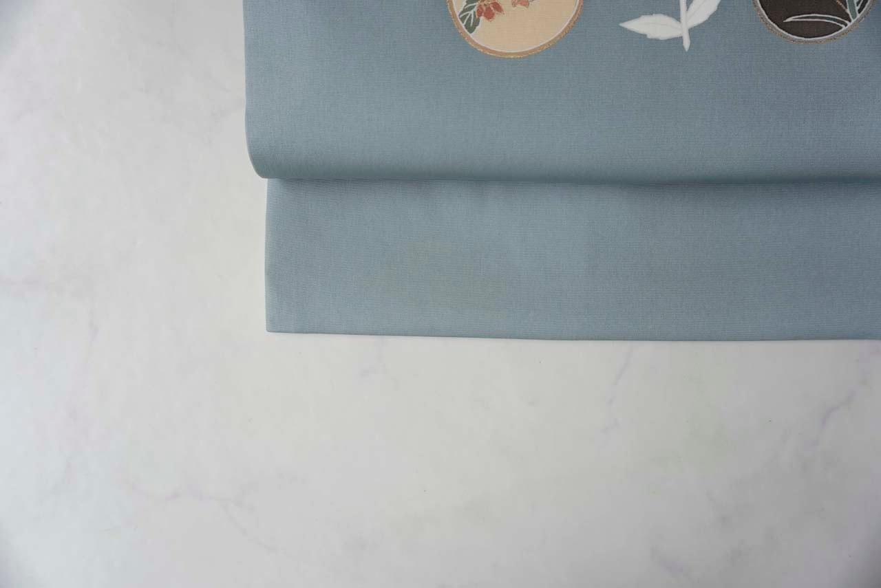 【なごや帯】水浅葱色 抽象花文 塩瀬なごや帯
