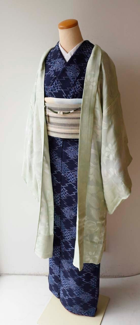 身頃、袖に柔らかな曲線の縦暈かしが施されています。