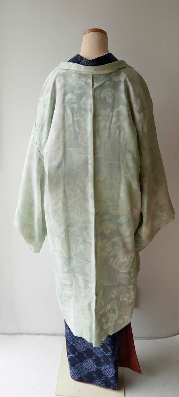 【紗羽織】紋紗 華唐草文 夏虫色 × 白縦暈し 薄羽織 新品