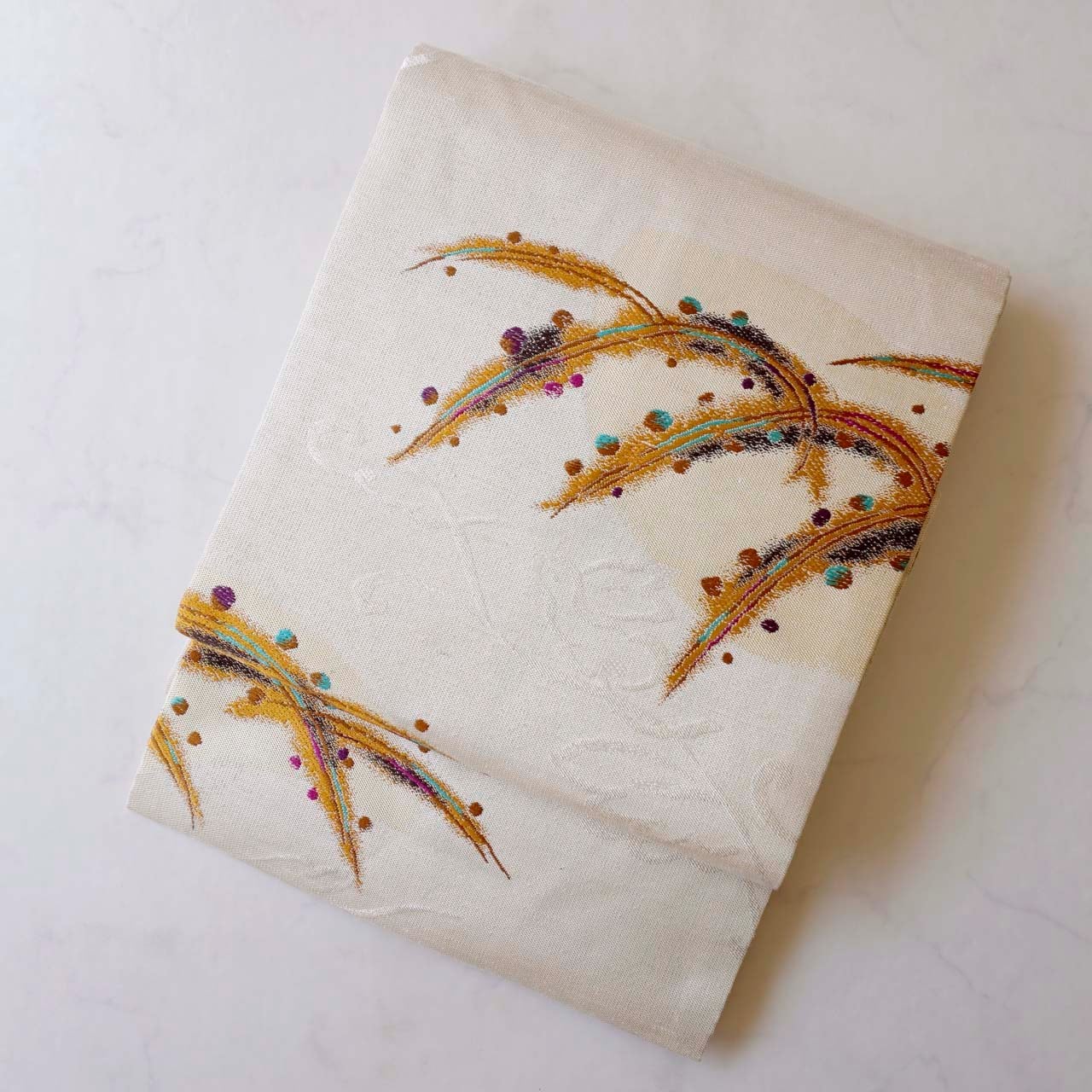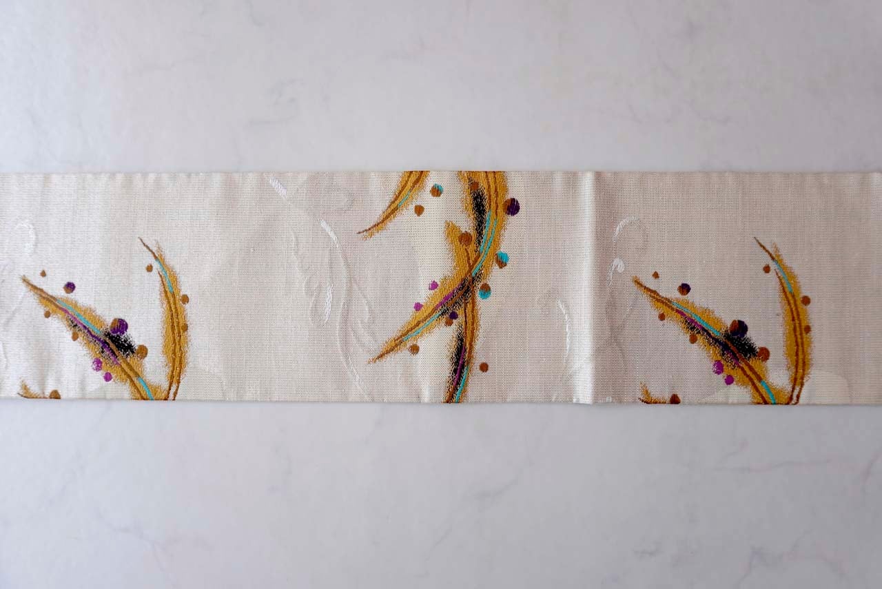 西陣の老舗機屋、鹿子井山田製、象牙色地に