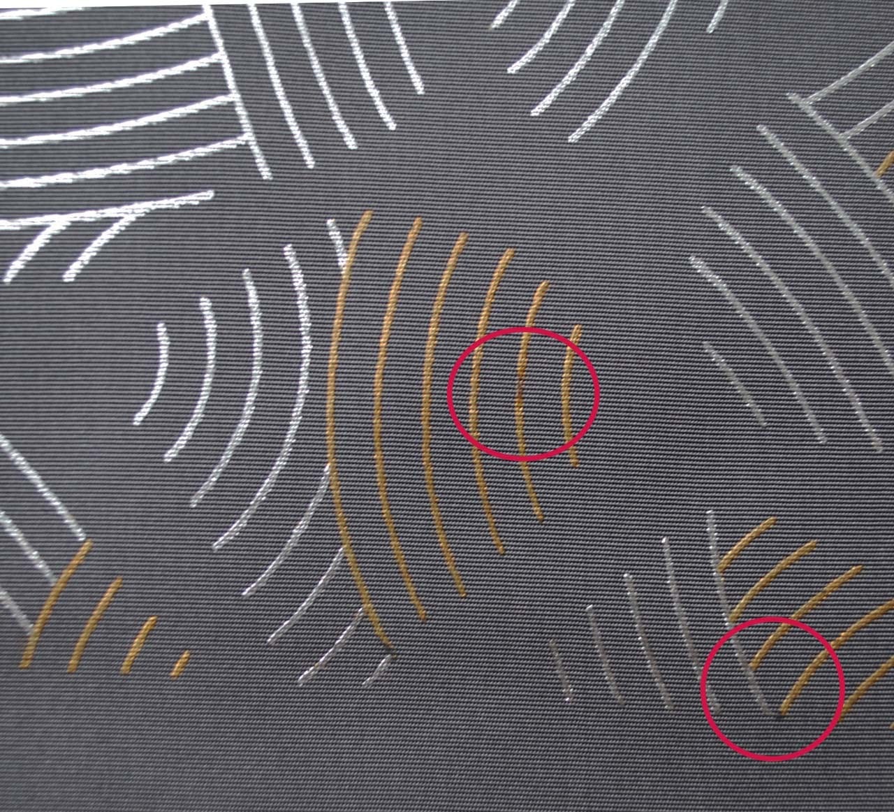 ・お太鼓柄の下部に金彩が変色したような箇所がございます。