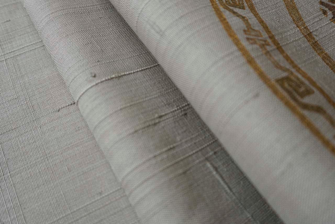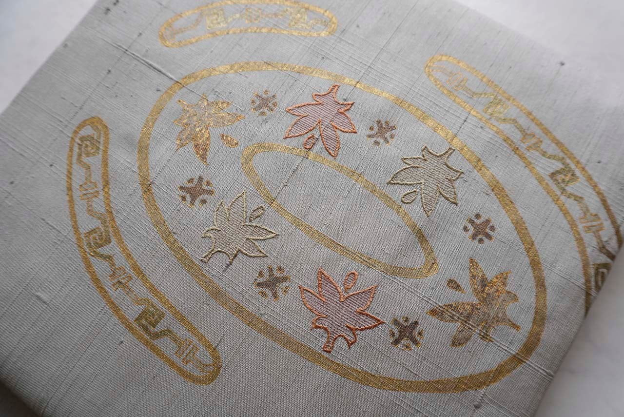 【なごや帯】利休白茶色 抽象文様 紬 なごや帯