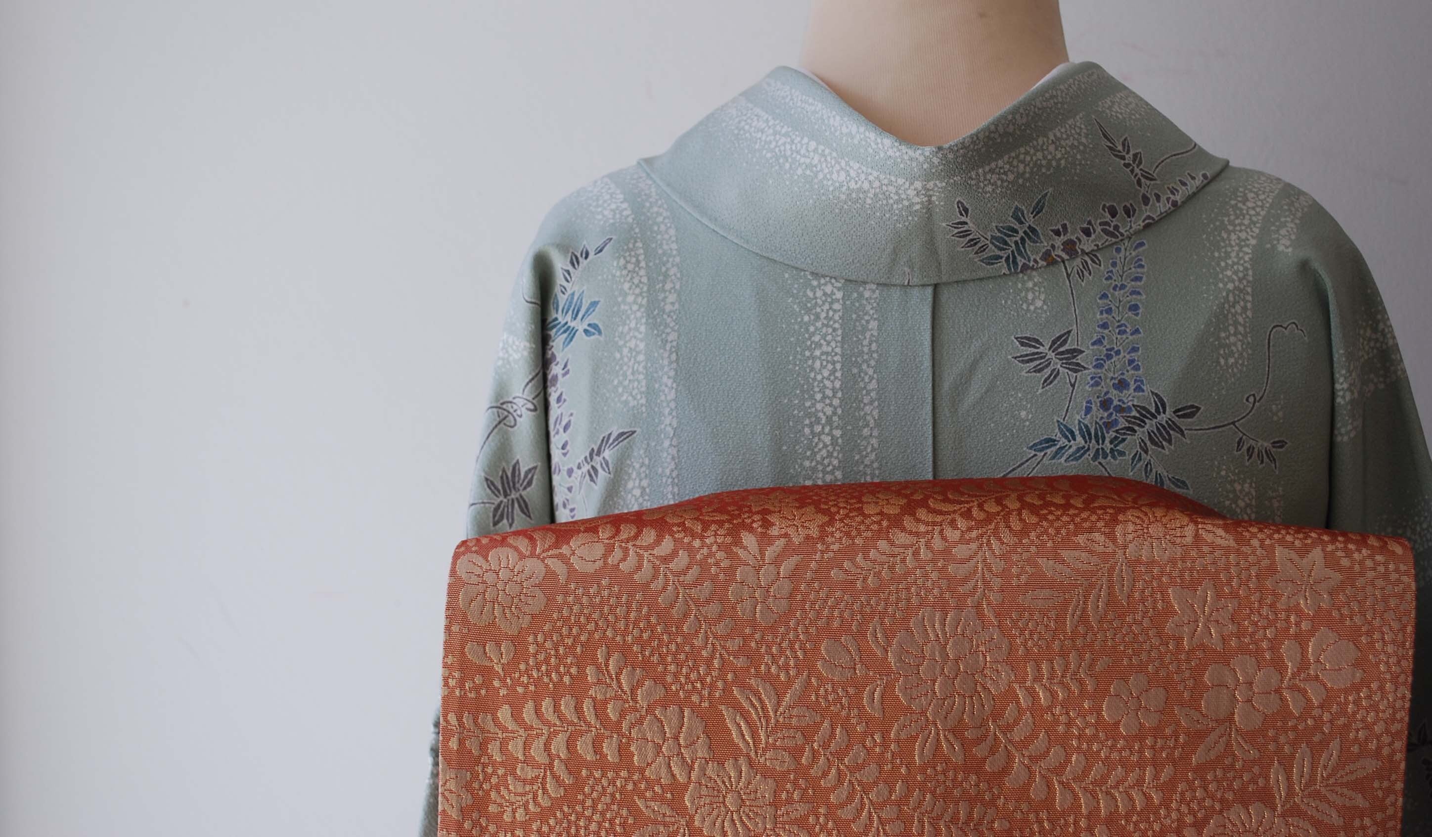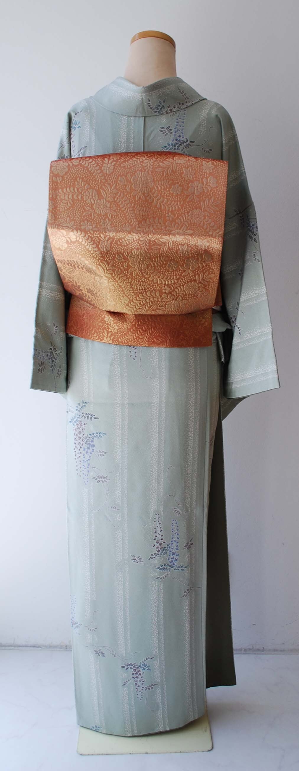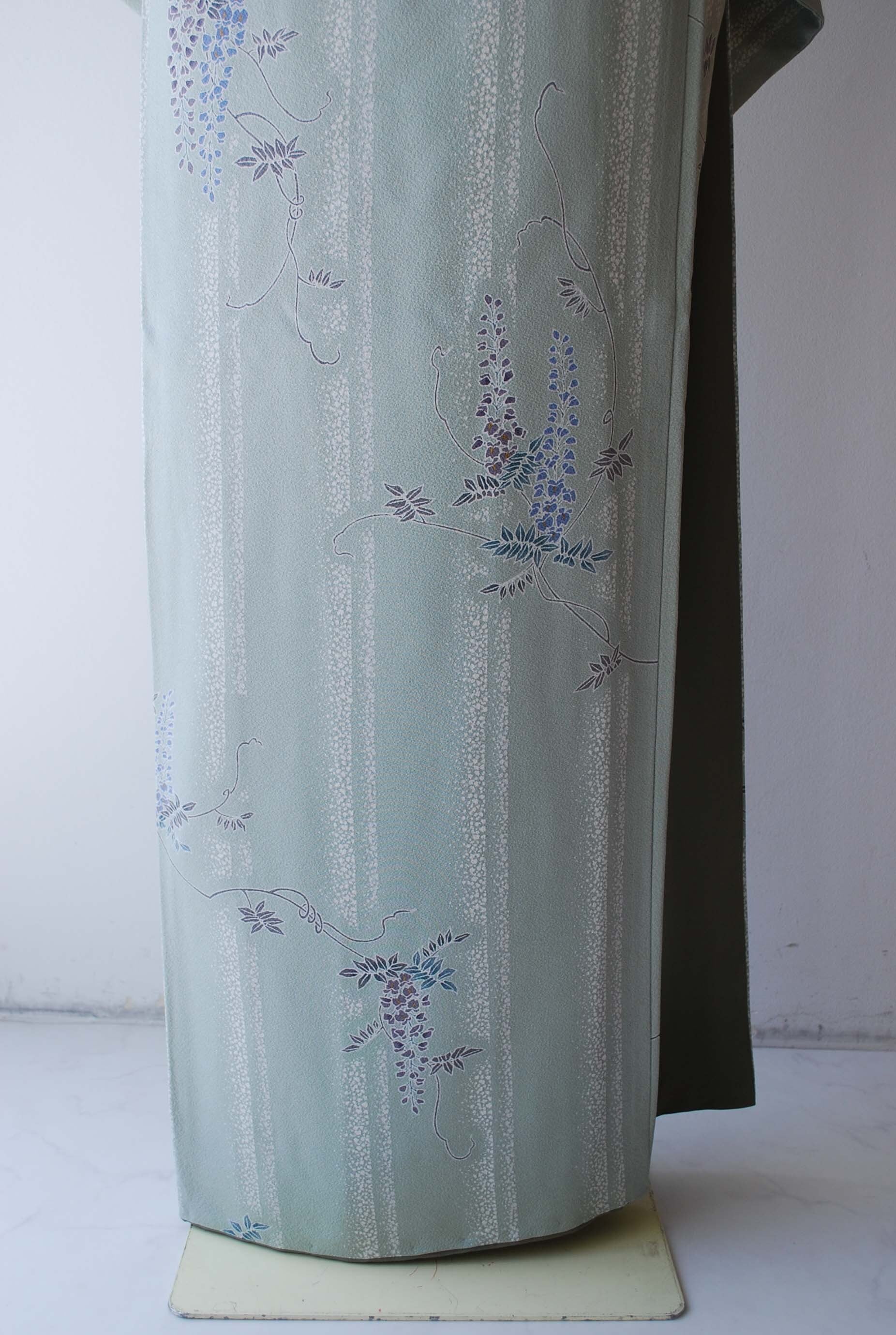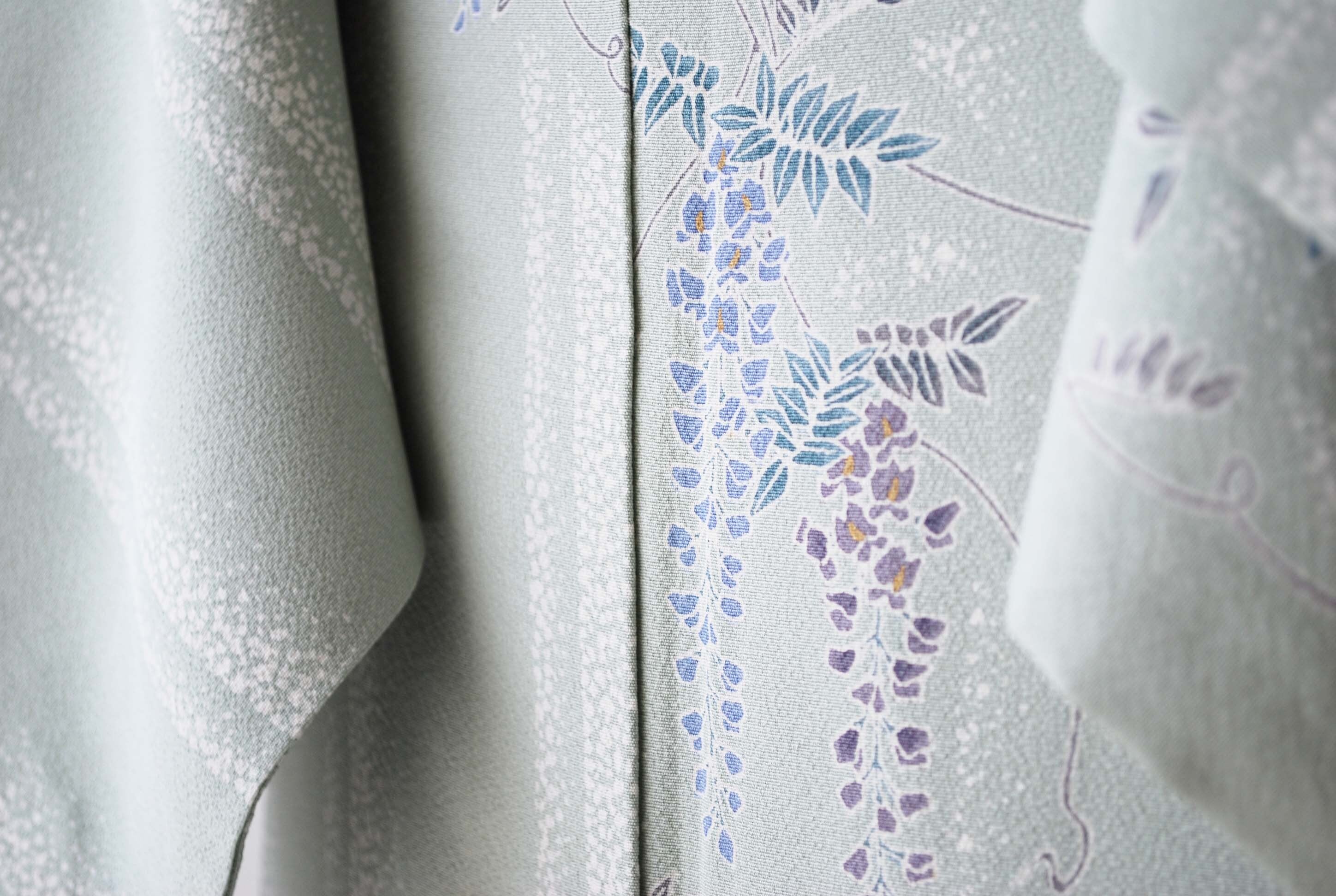 藤の花房がゆったりと垂れ下がる小紋です。