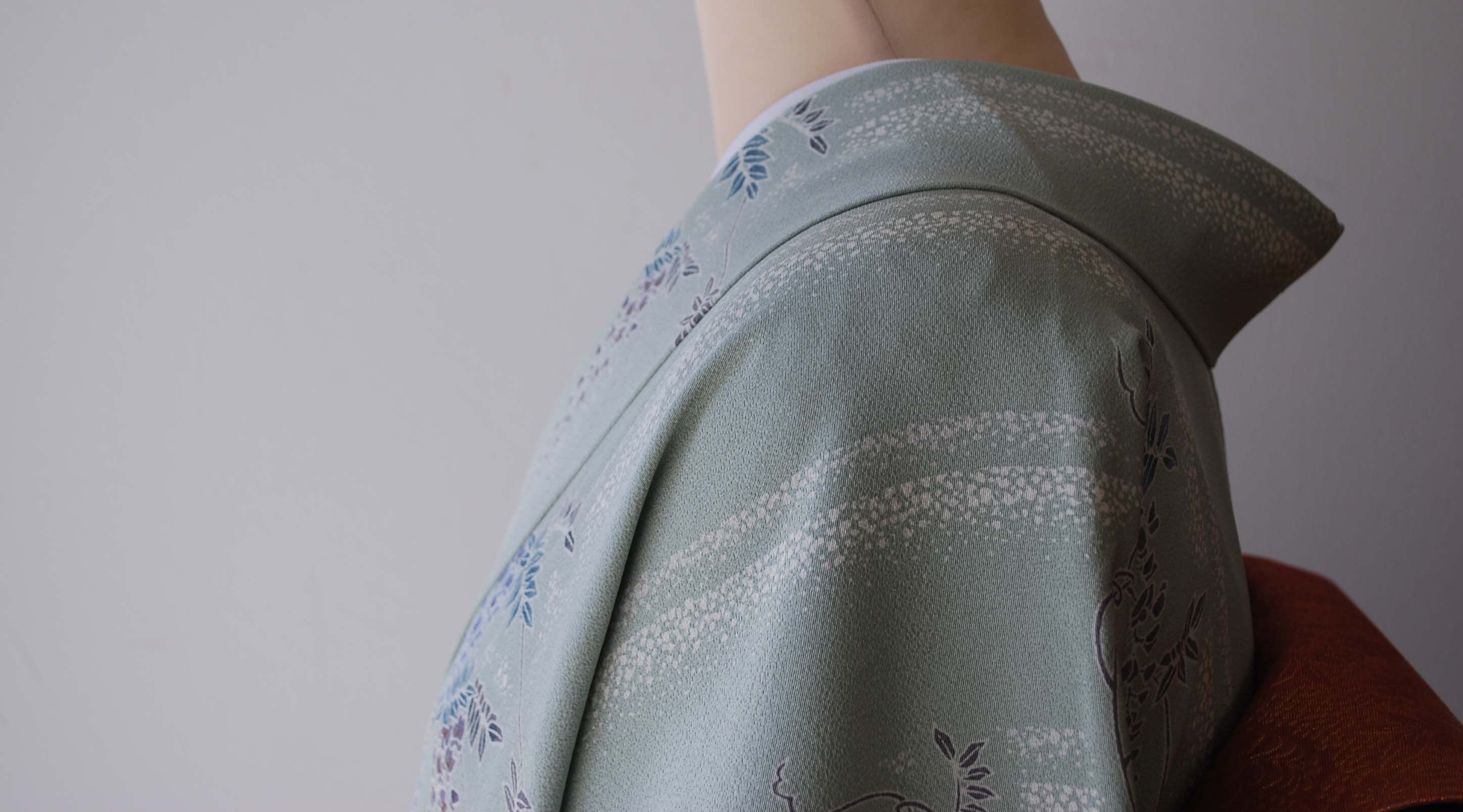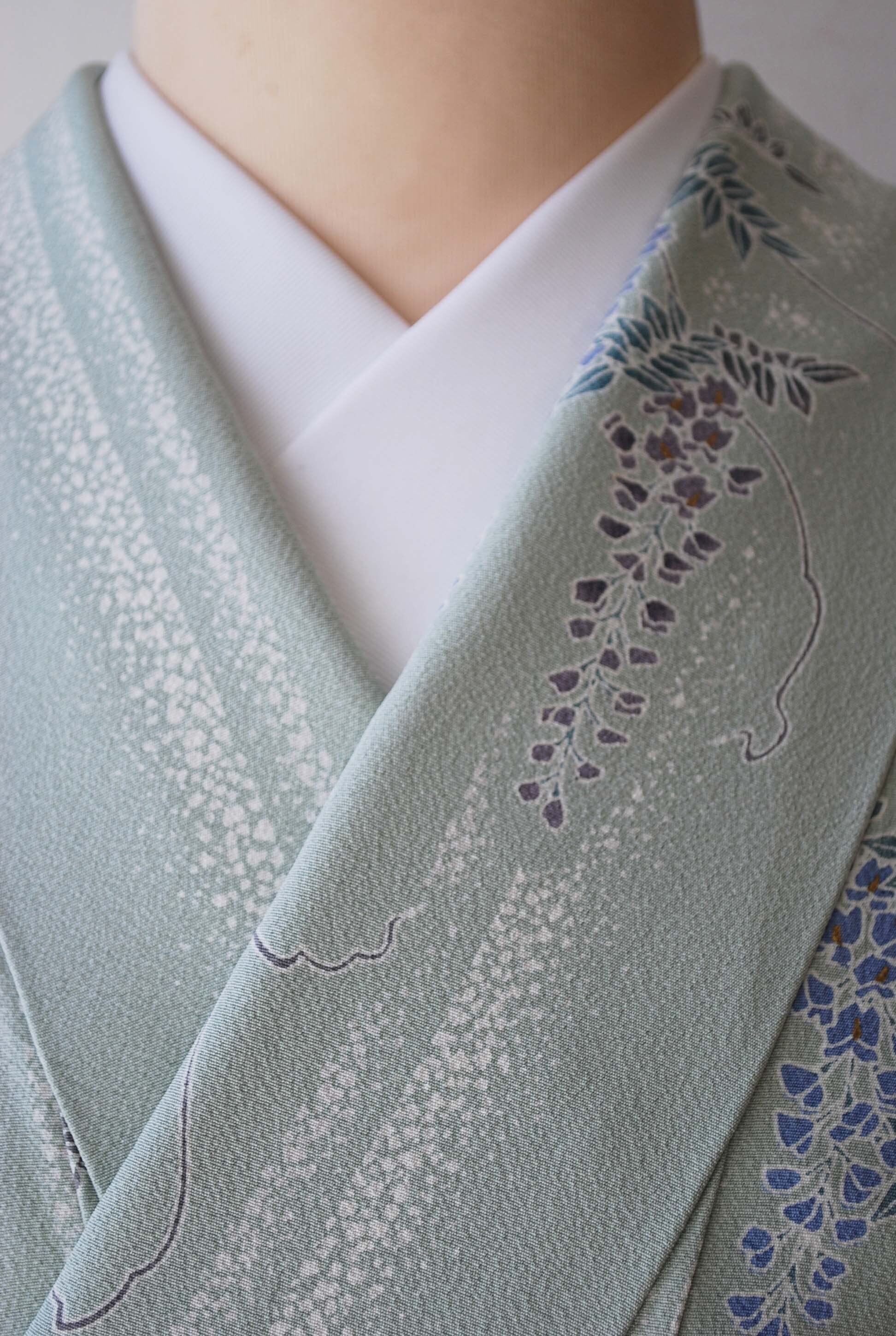 【袷】錆青磁色地 藤紋 小紋