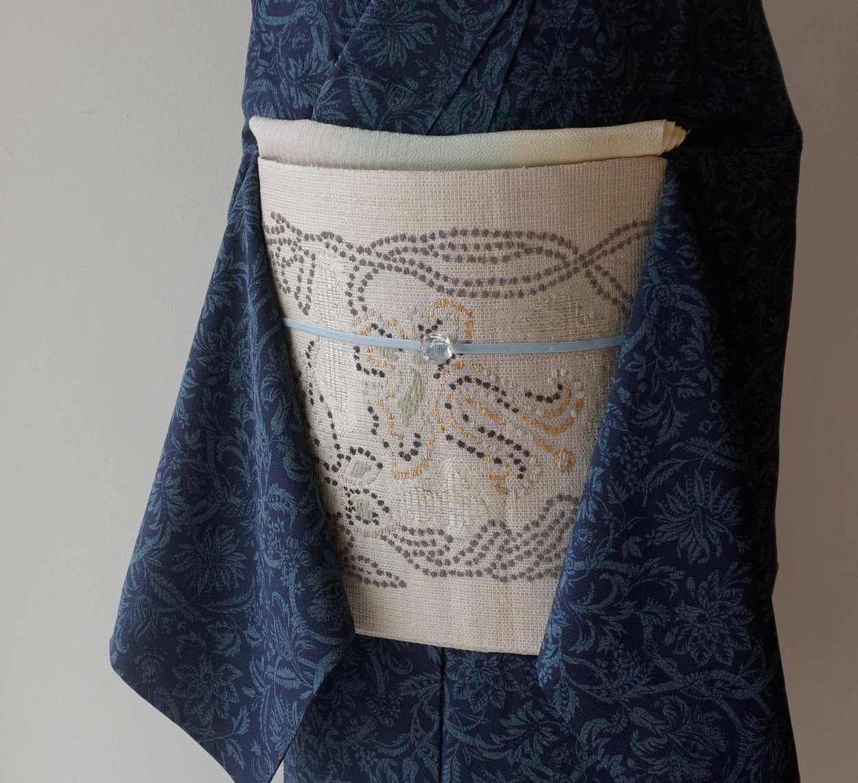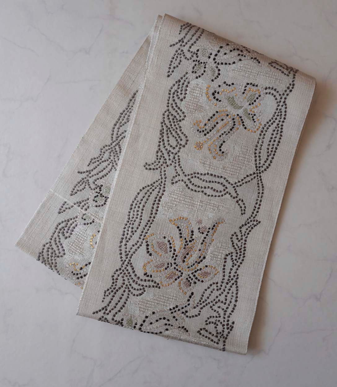 【ふくろ帯】都謹製 白地 抽象植物文 ふくろ帯