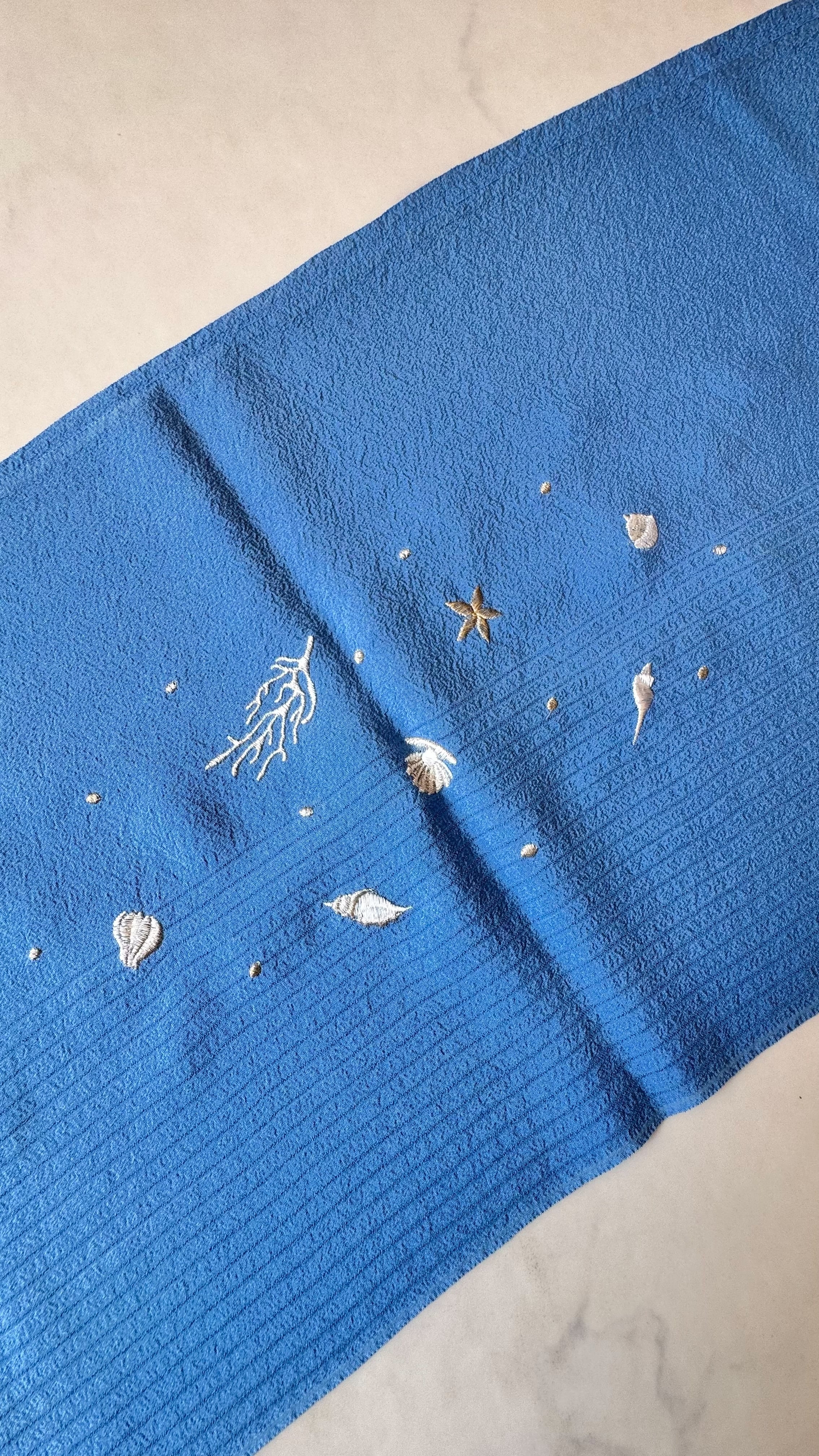 海のモチーフの刺繍入りちりめん帯揚げ ヒヤシンスブルー