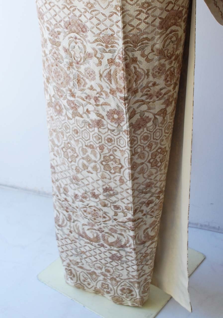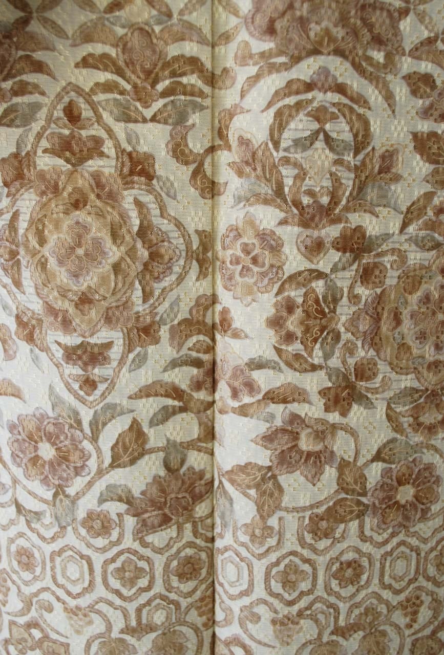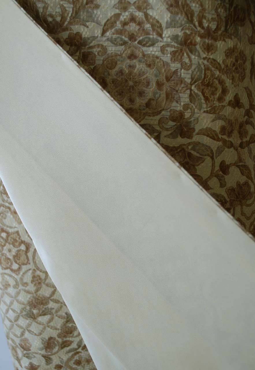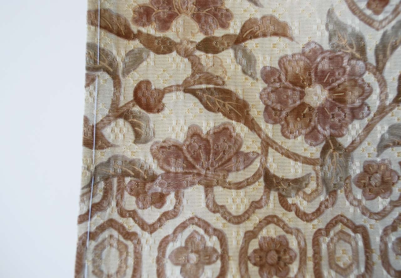 蒸栗色、花織地紋に更紗文の