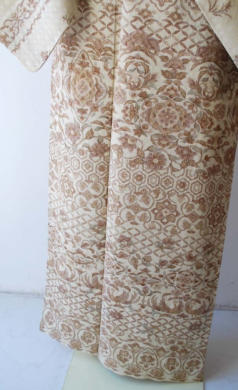 【袷】蒸栗色 花織地紋に更紗文 訪問着