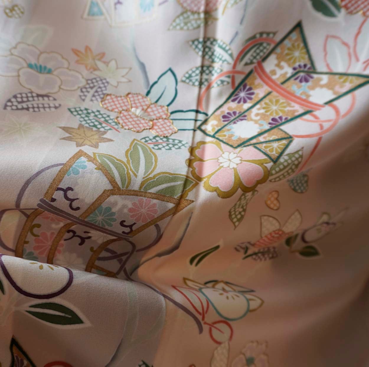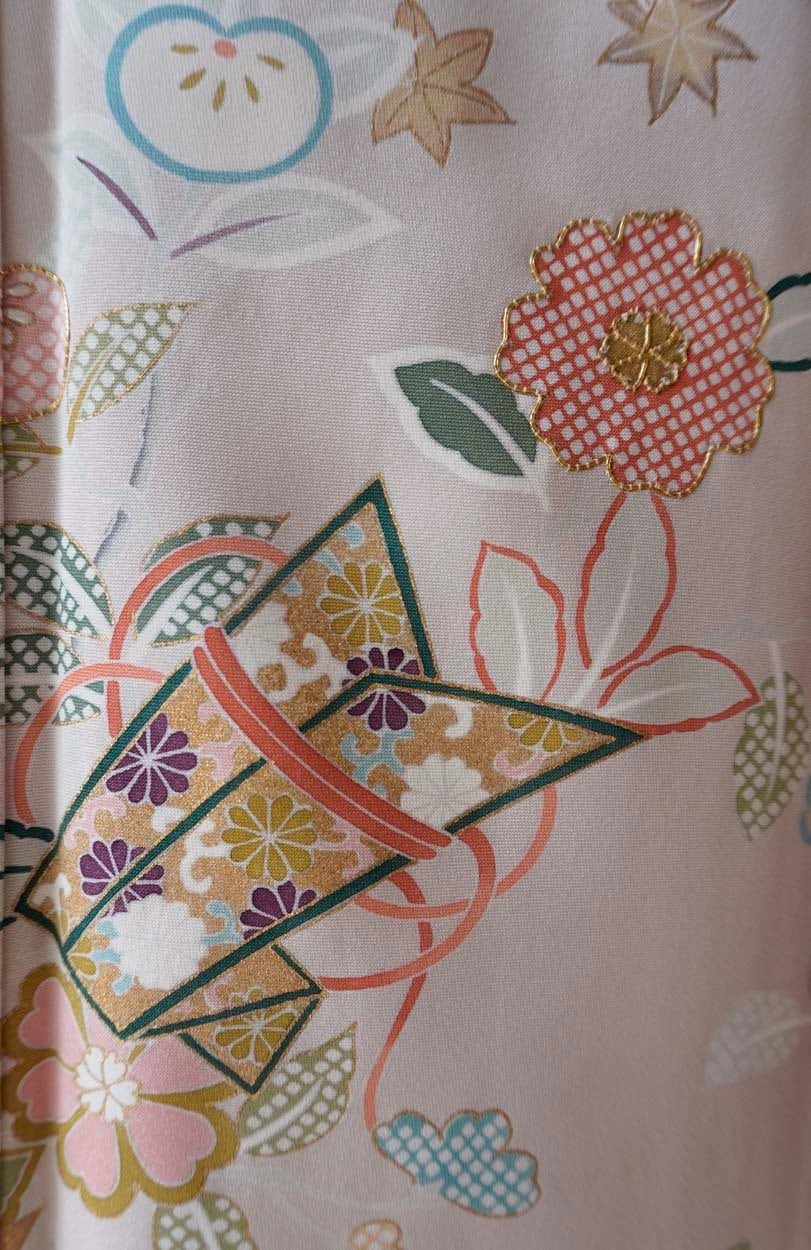 淡い暈かしや染め疋田、金彩、金駒刺繍など、