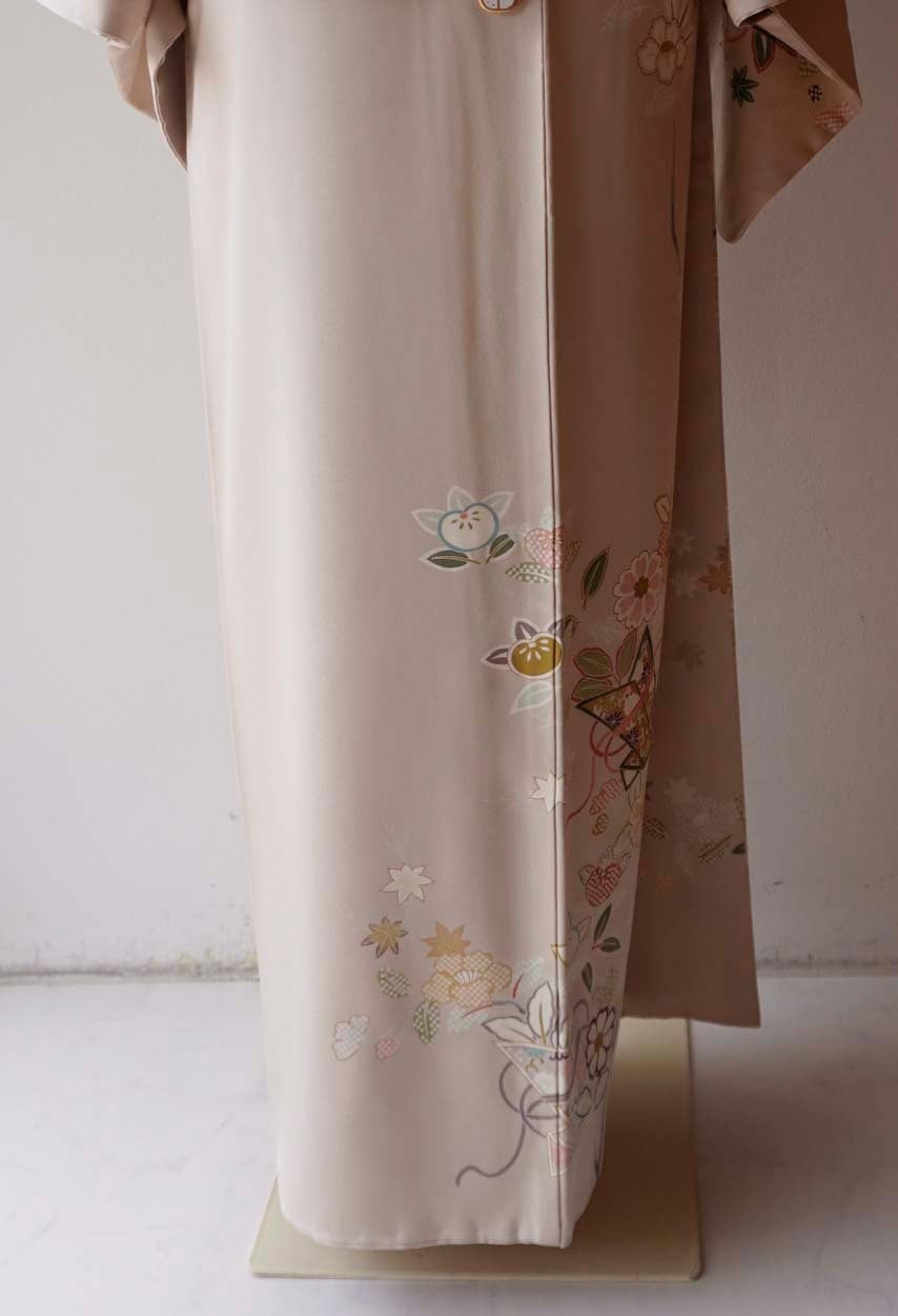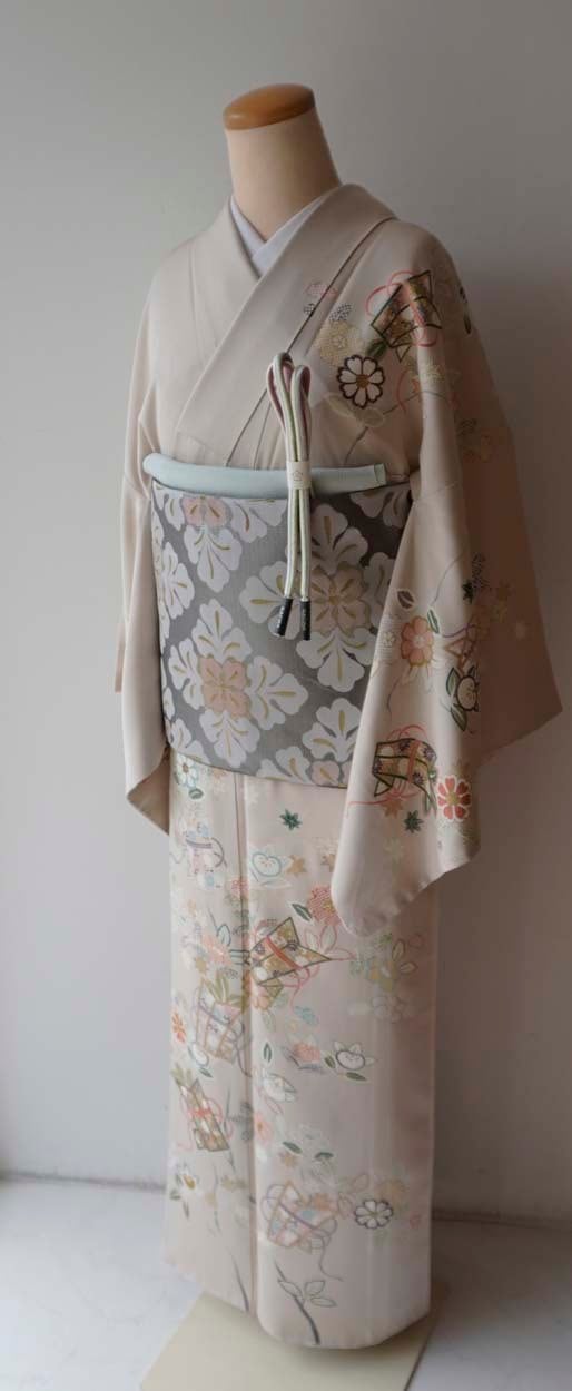 【袷】灰桜色地 花熨斗文 訪問着 縫い一つ紋