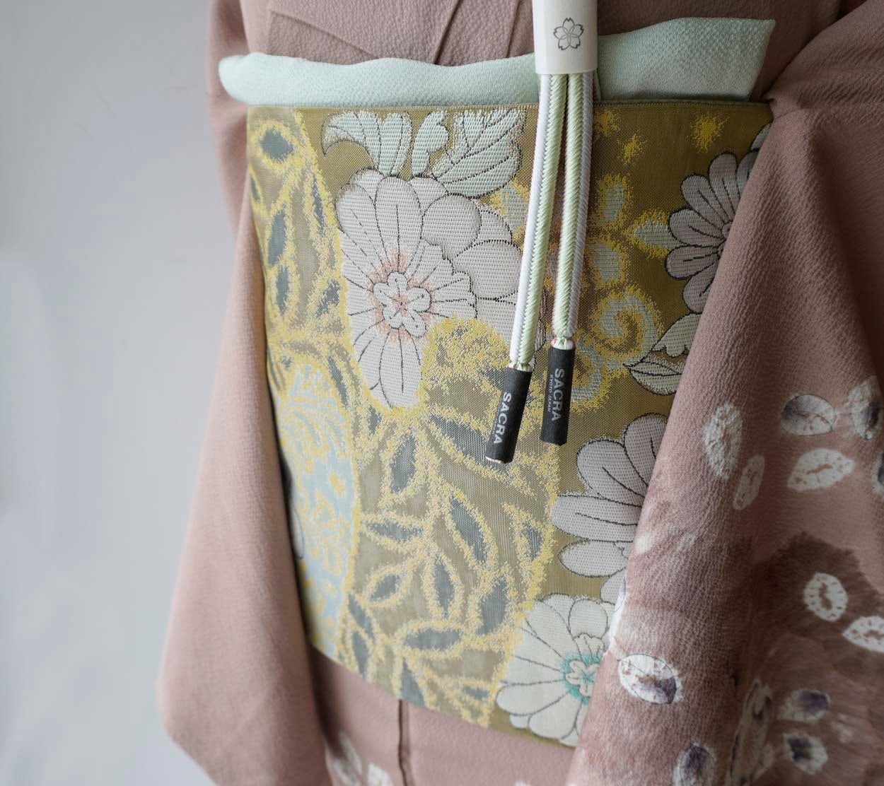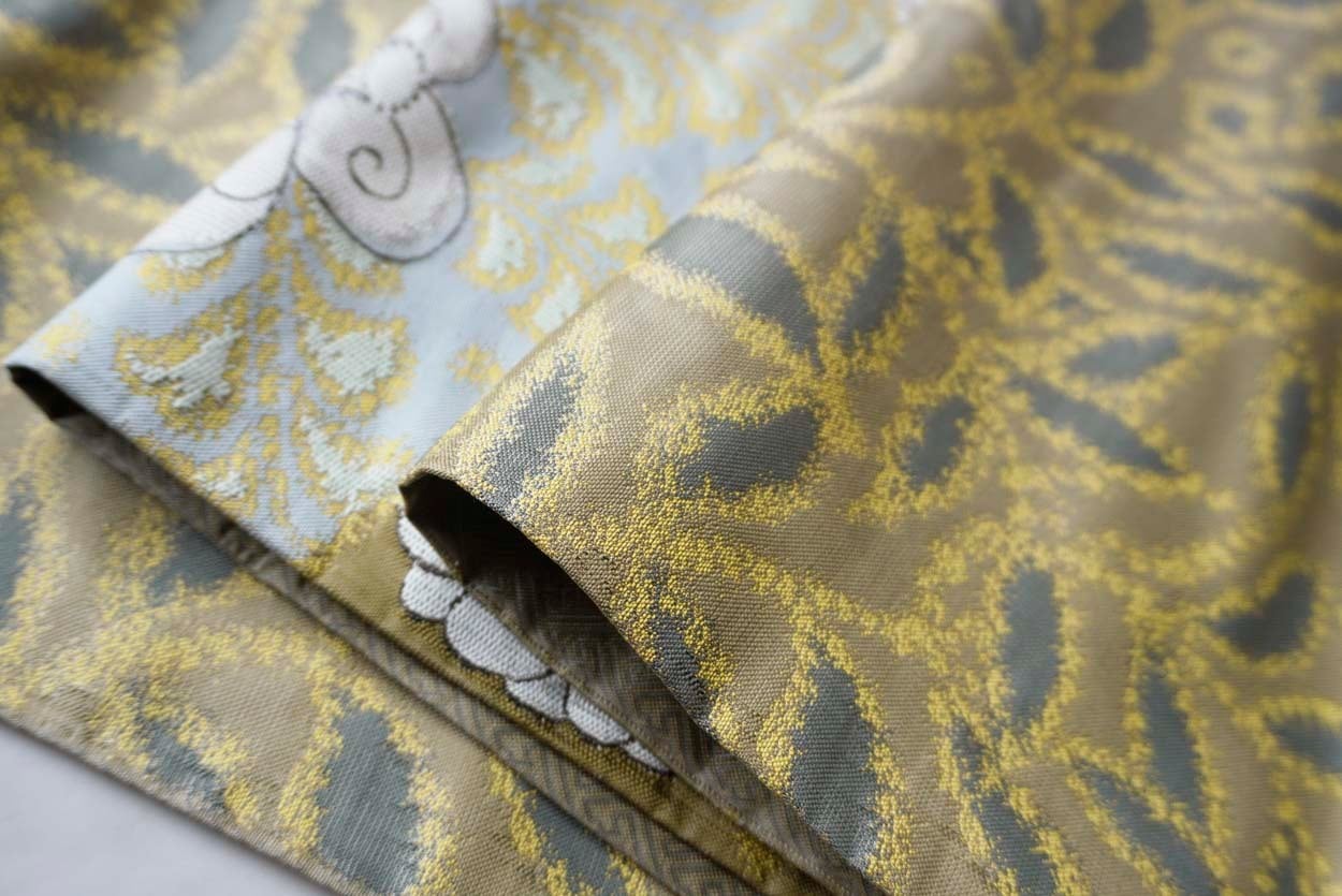 葵花文が織り出された部分がお太鼓、胴前のお柄に
