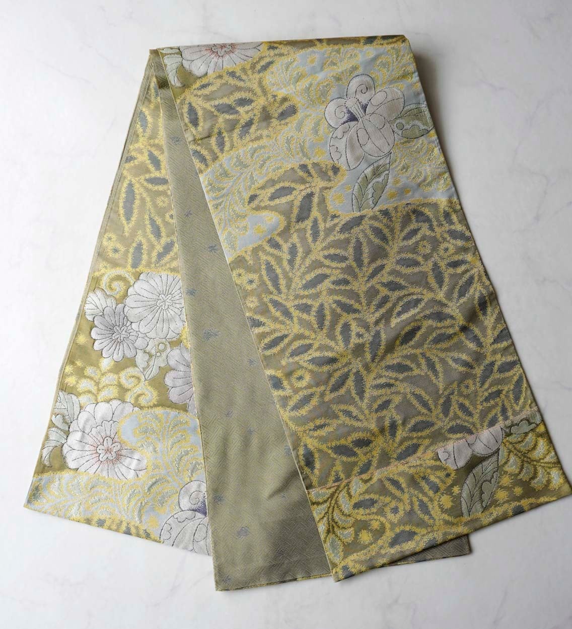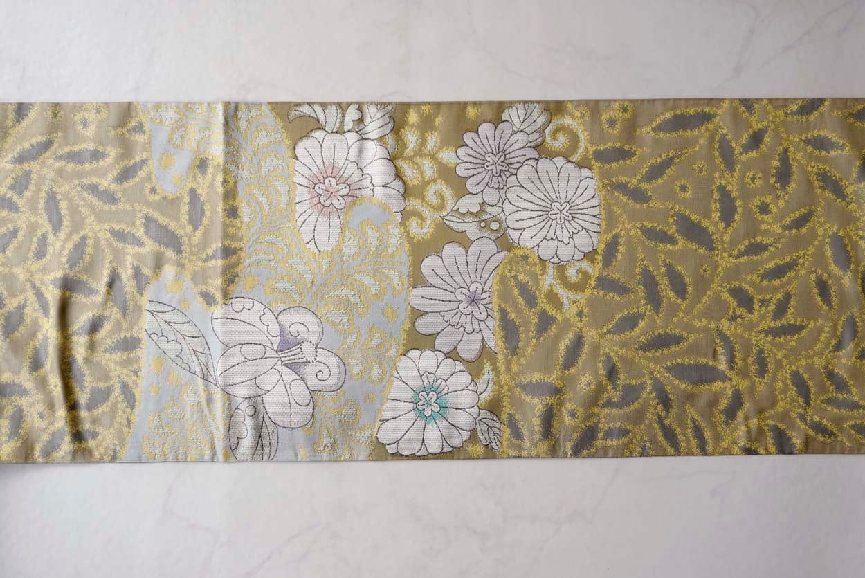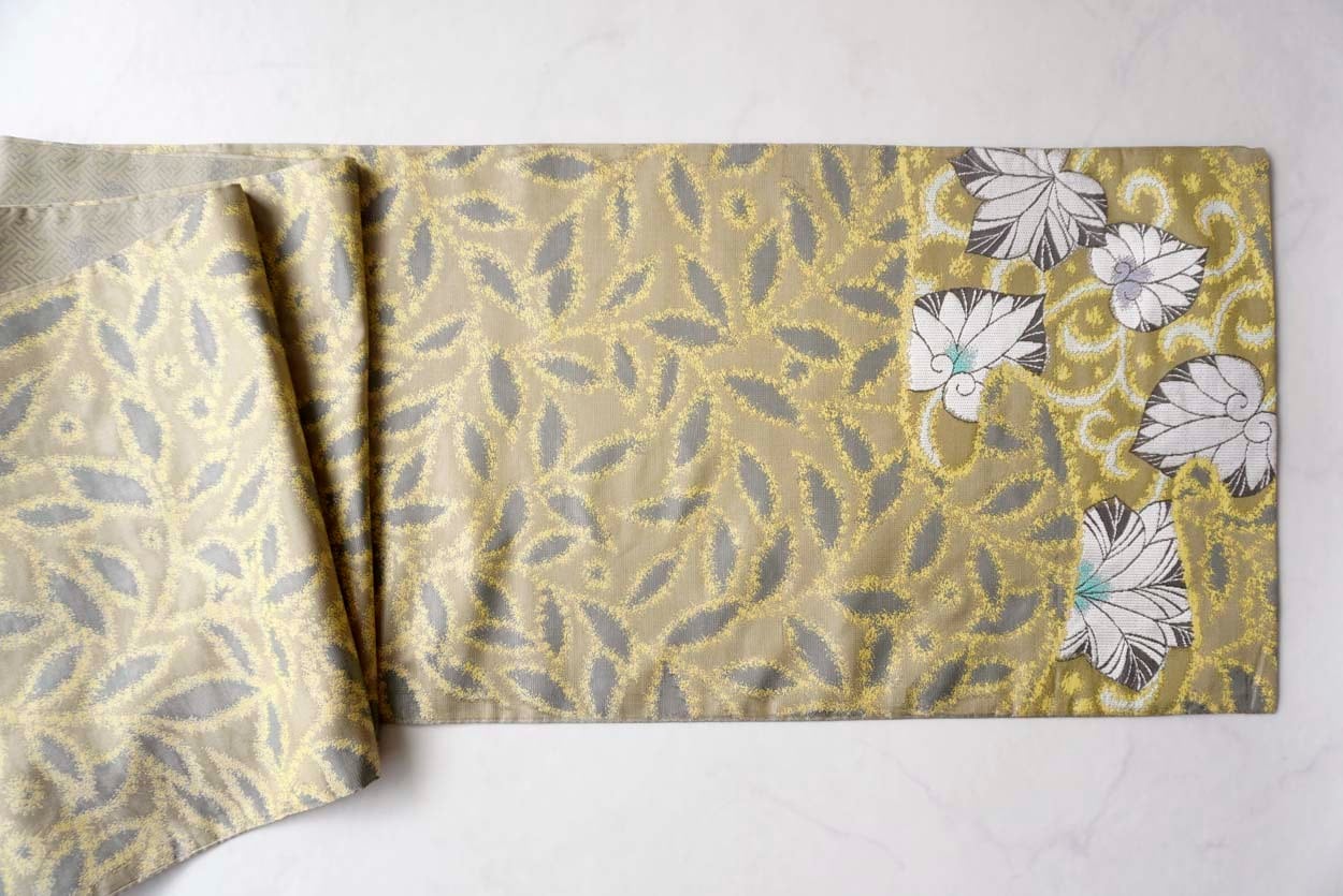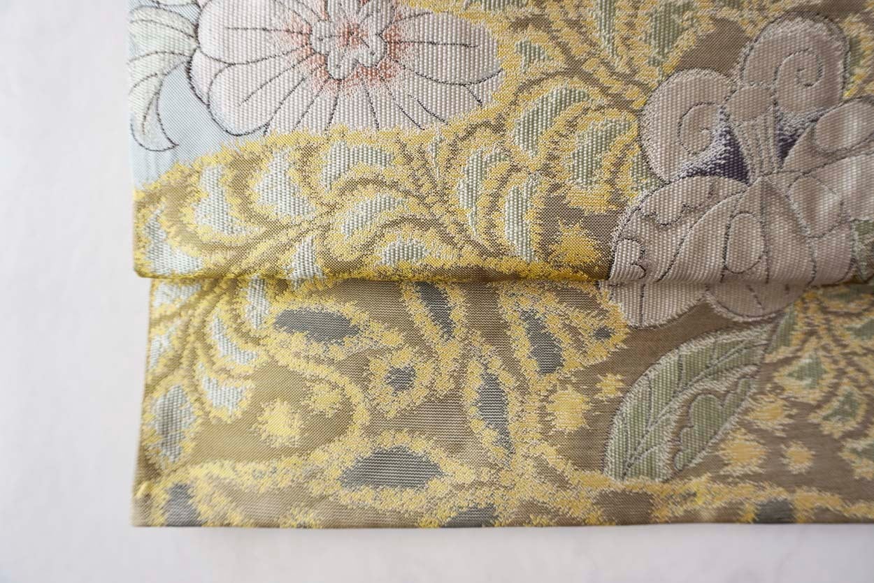 【ふくろ帯】淡油色地 葵花文 ふくろ帯