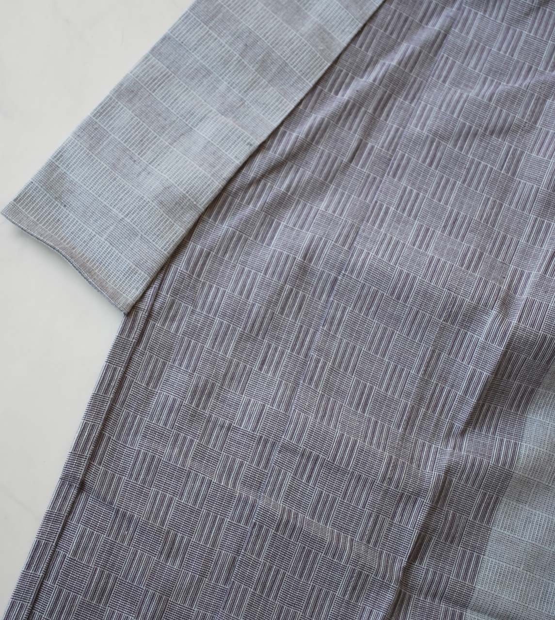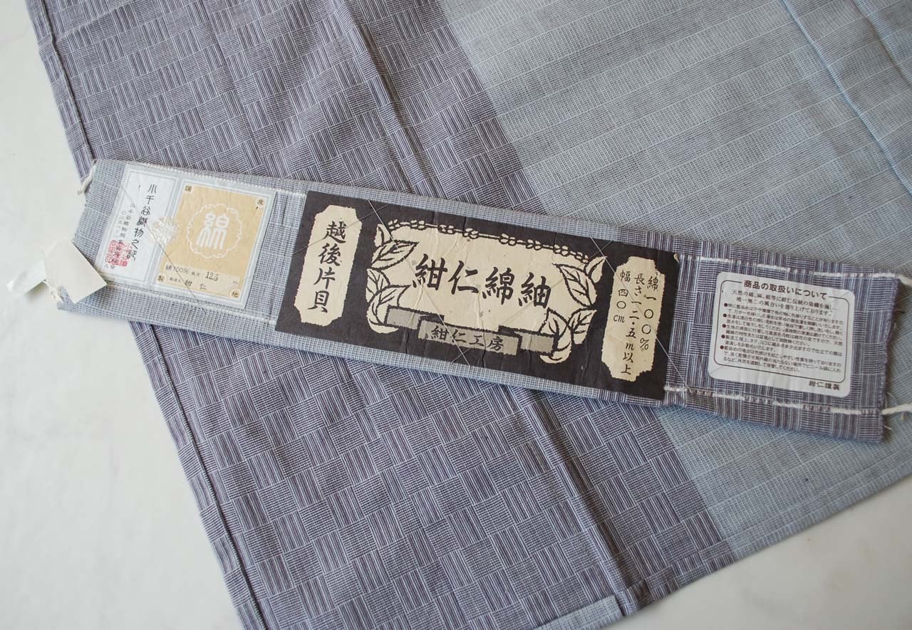 【単衣】小千谷織物 越後片貝 紺仁謹製 綿紬 単衣着物
