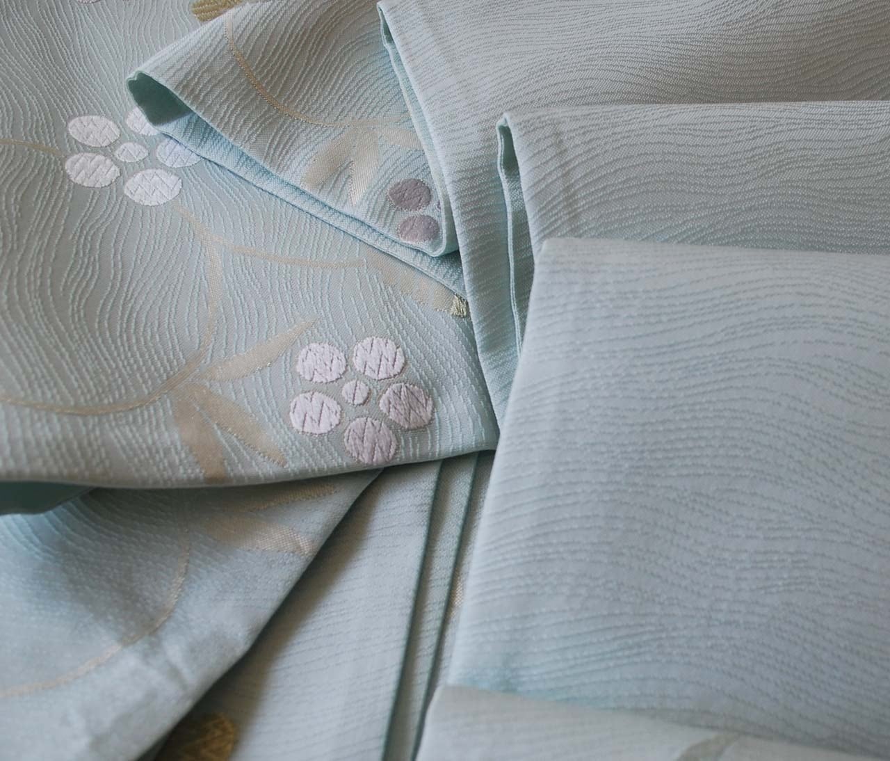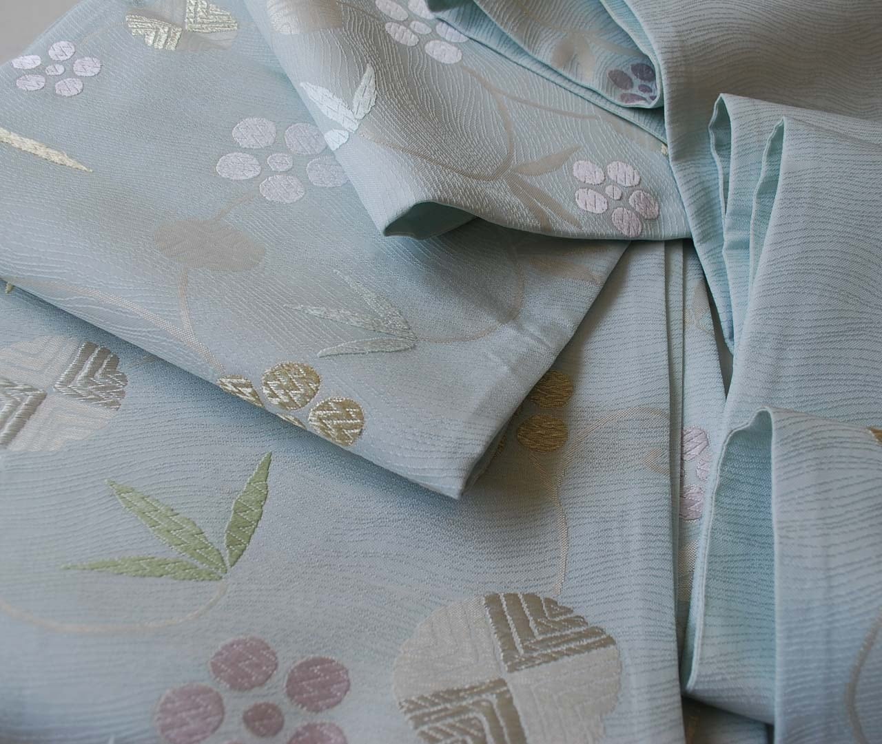 【ふくろ帯 】西陣ふくい謹製 白藍色 笹蔓文 ふくろ帯