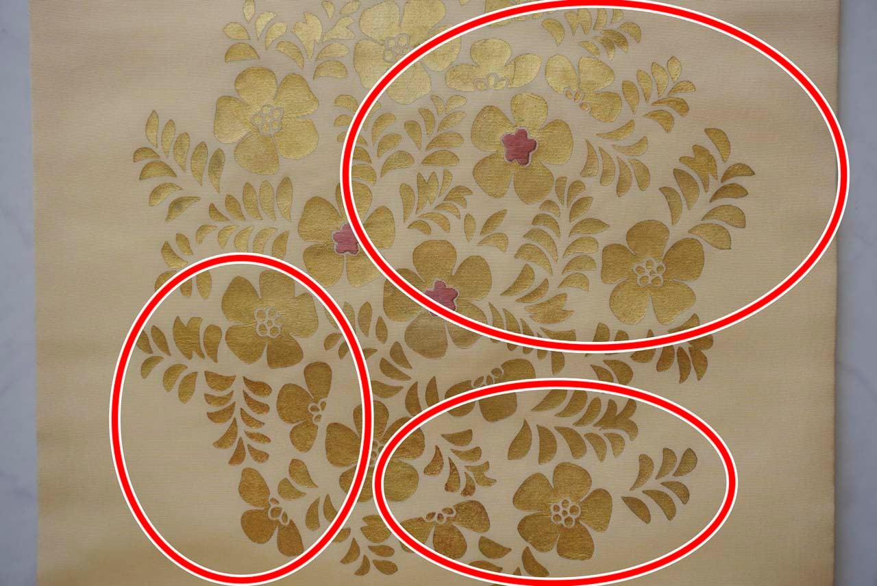 ・お太鼓柄含め、金色部分が赤や濃い色に