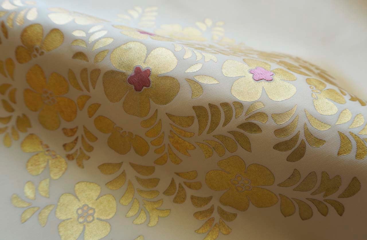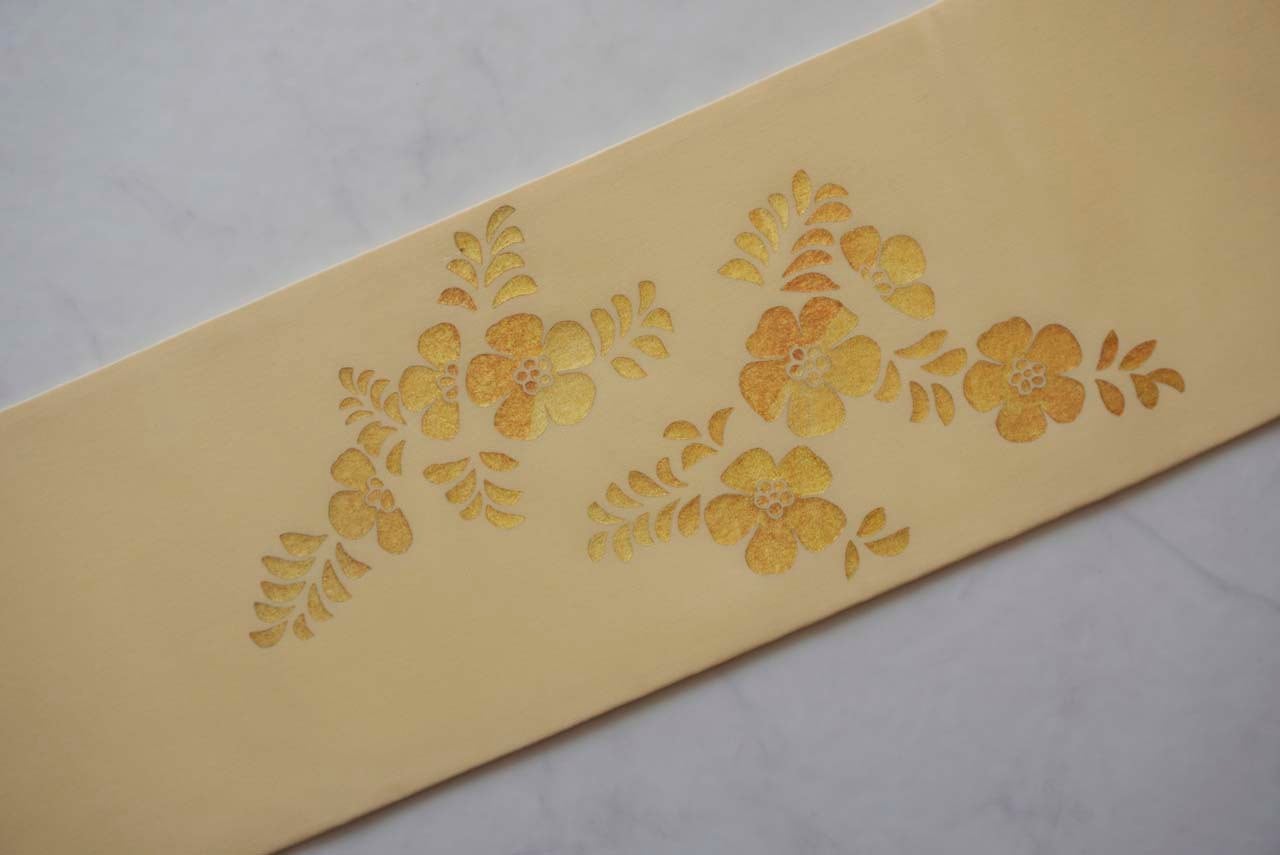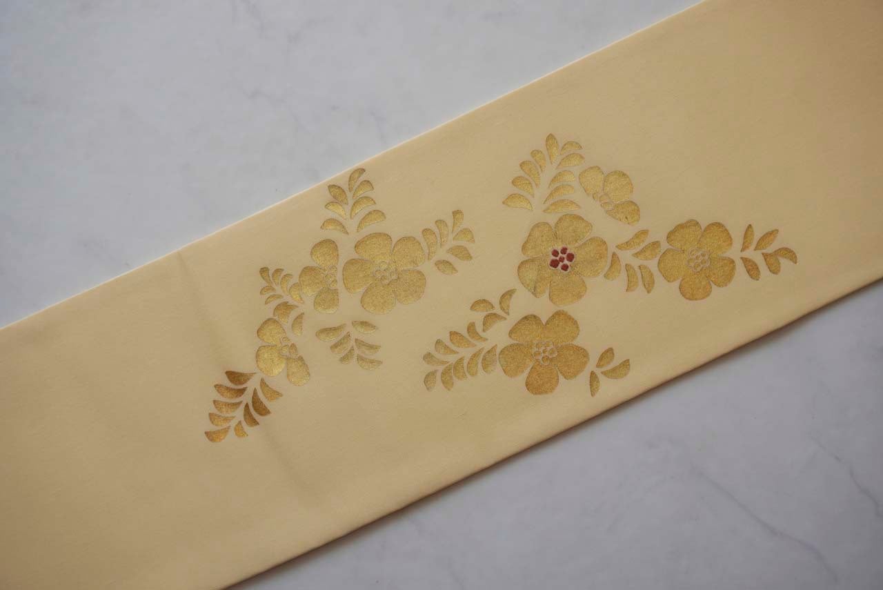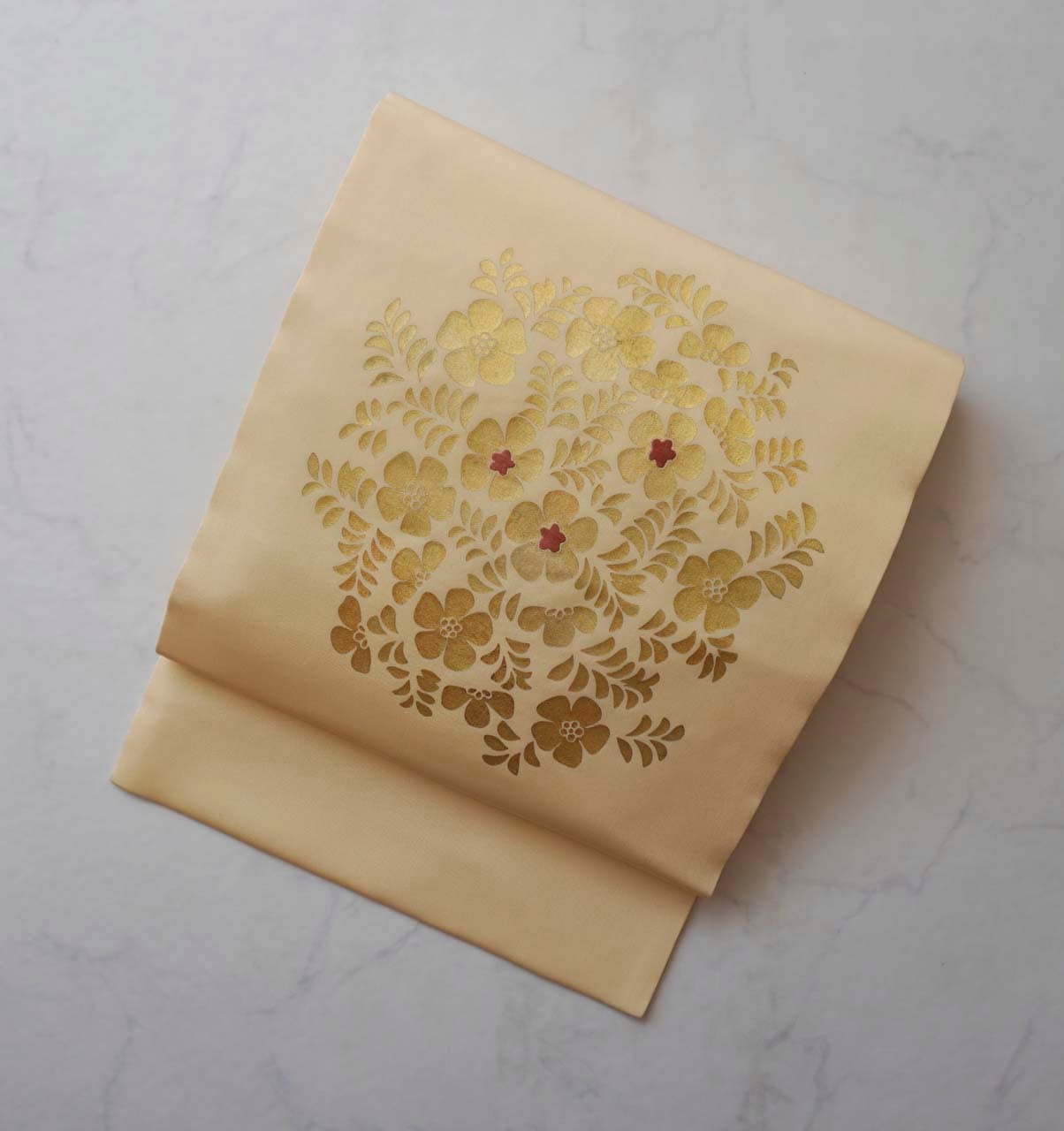 【なごや帯】砥粉色 抽象植物文 塩瀬なごや帯