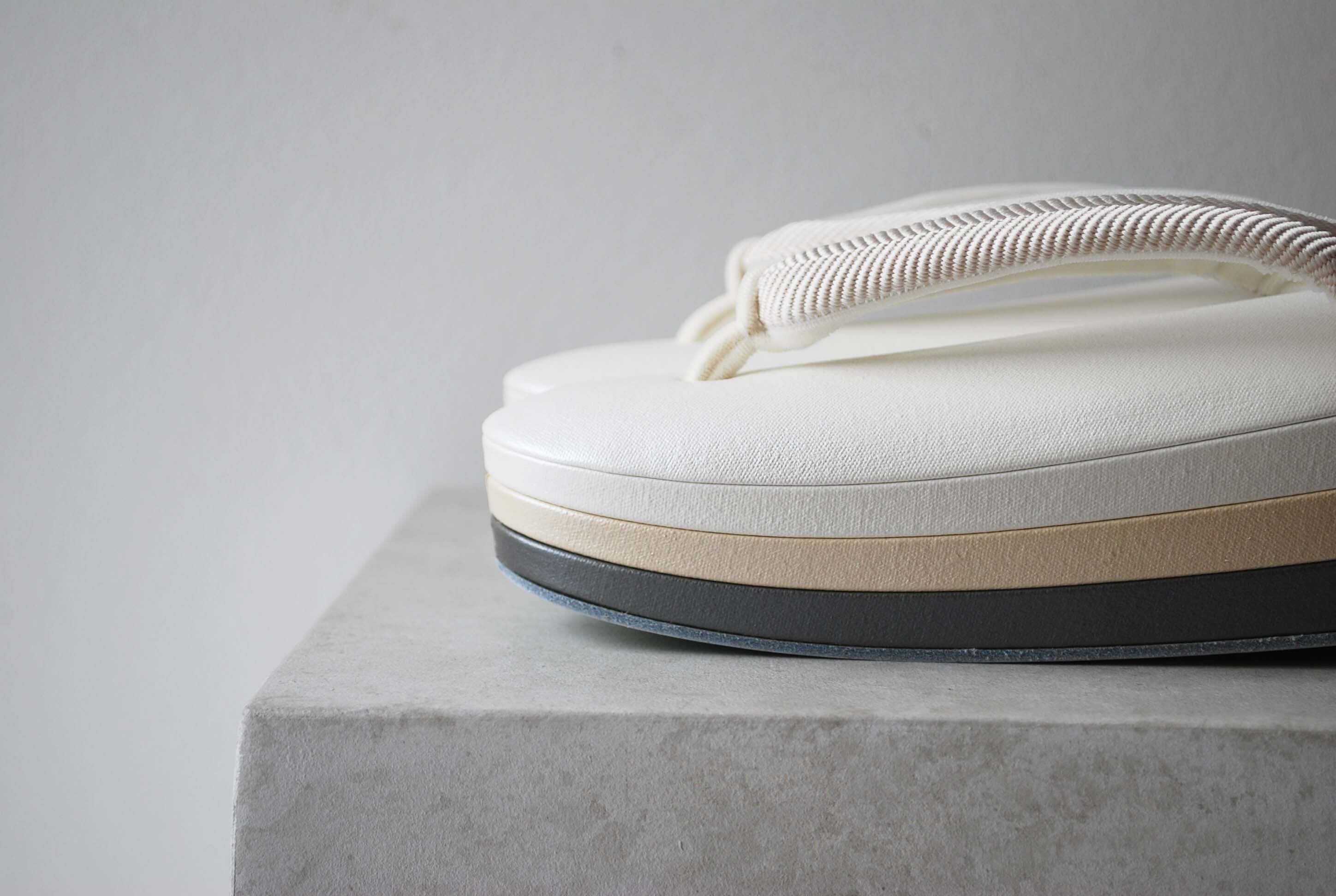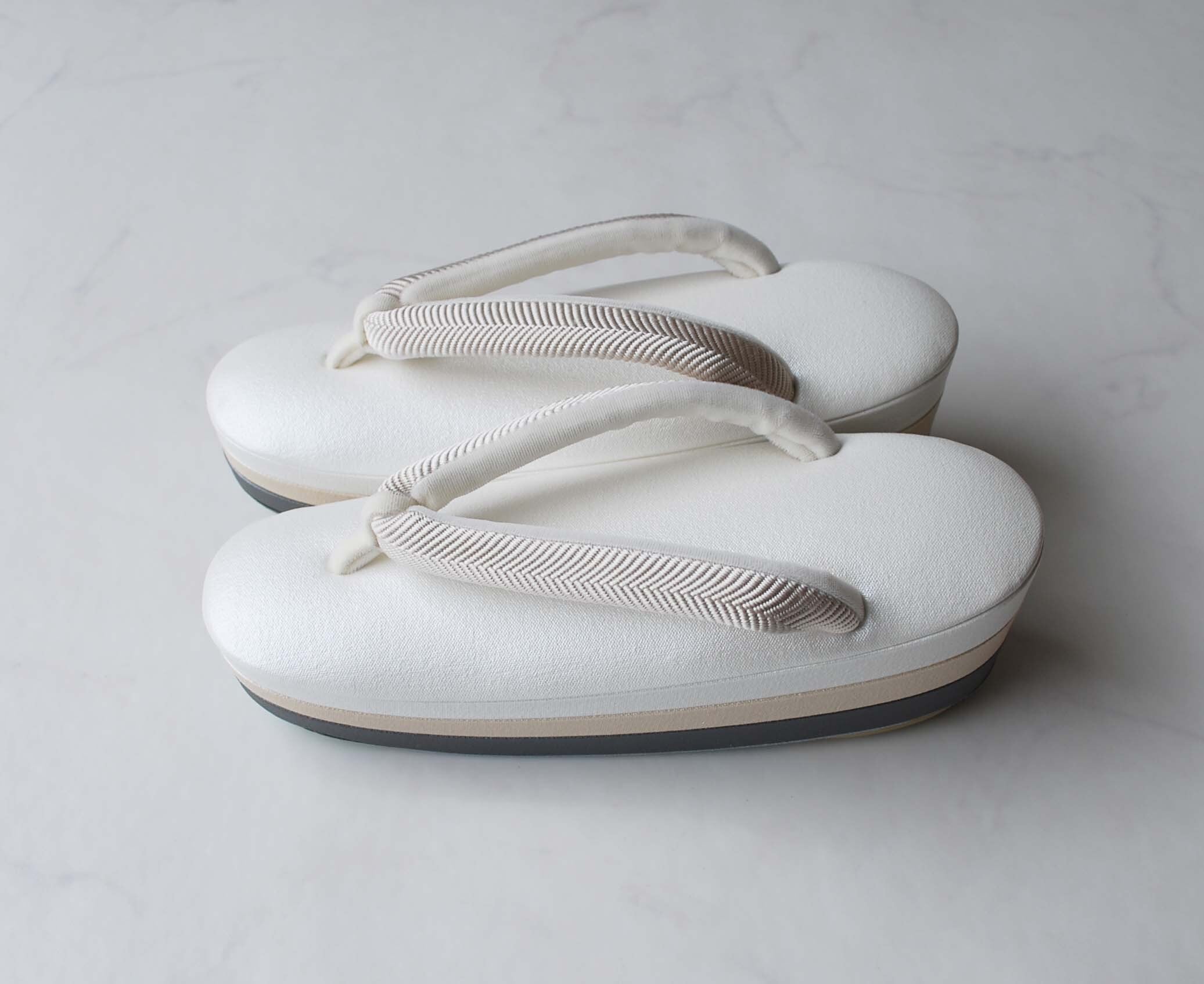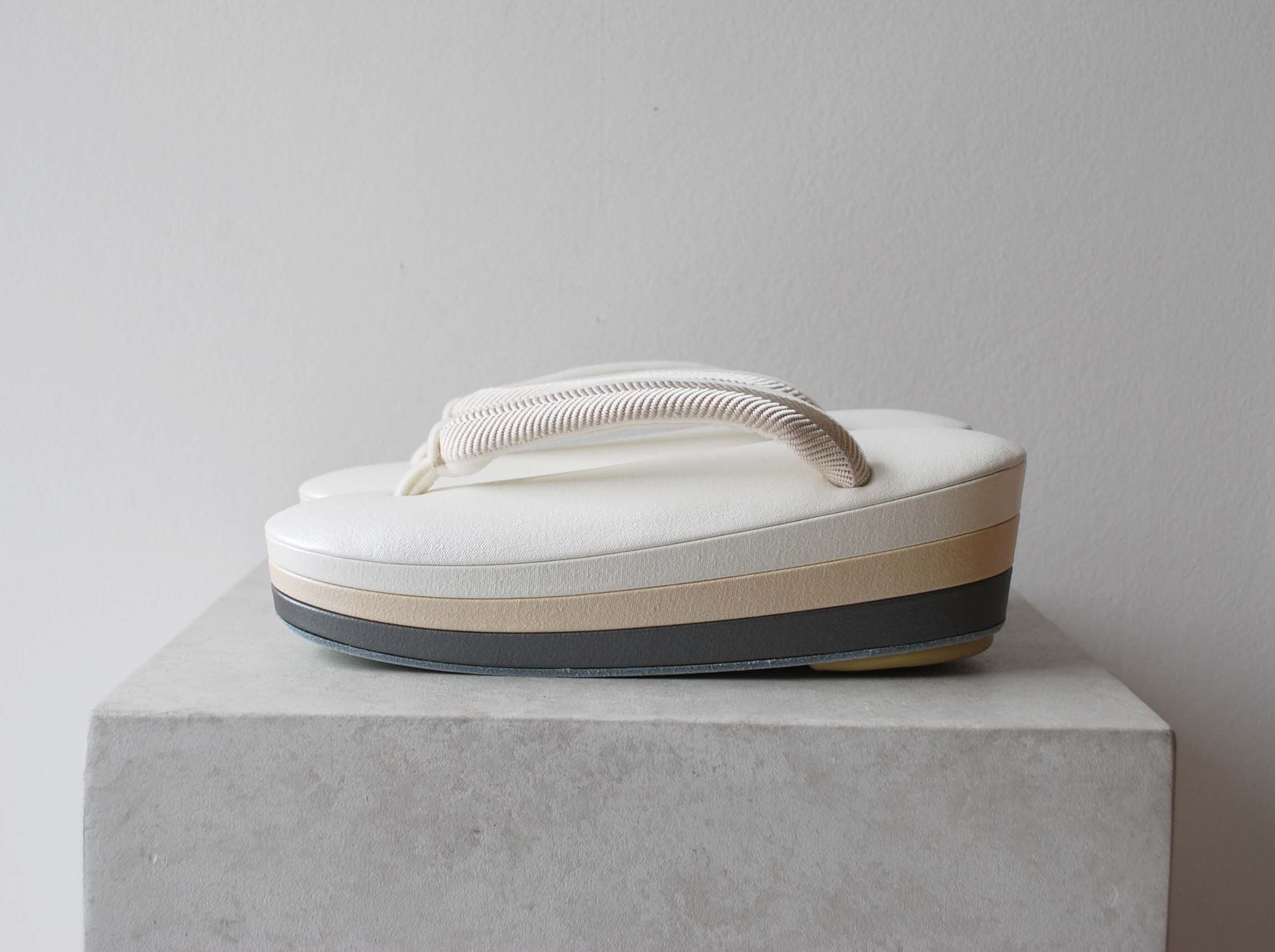 【和小物さくら】真珠色・薄香色・鈍色台×白綾織花緒 三段真綿草履 即納品