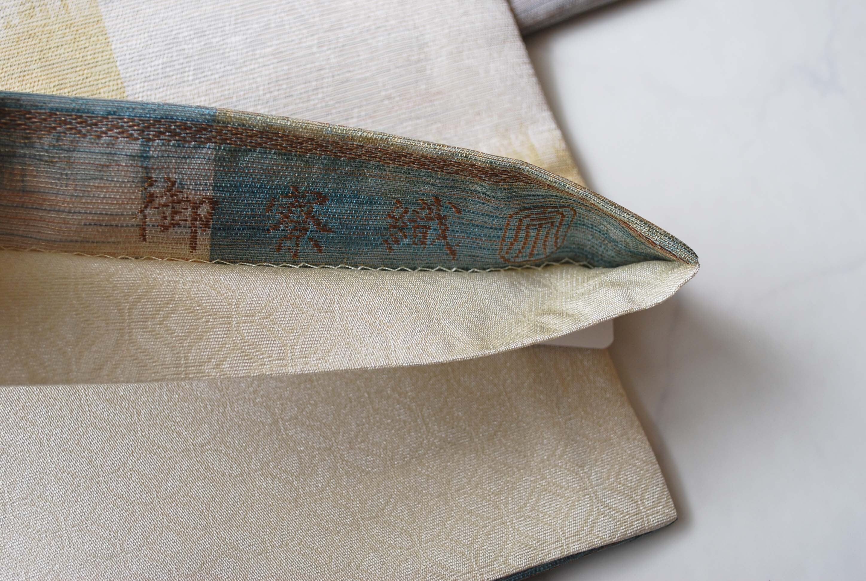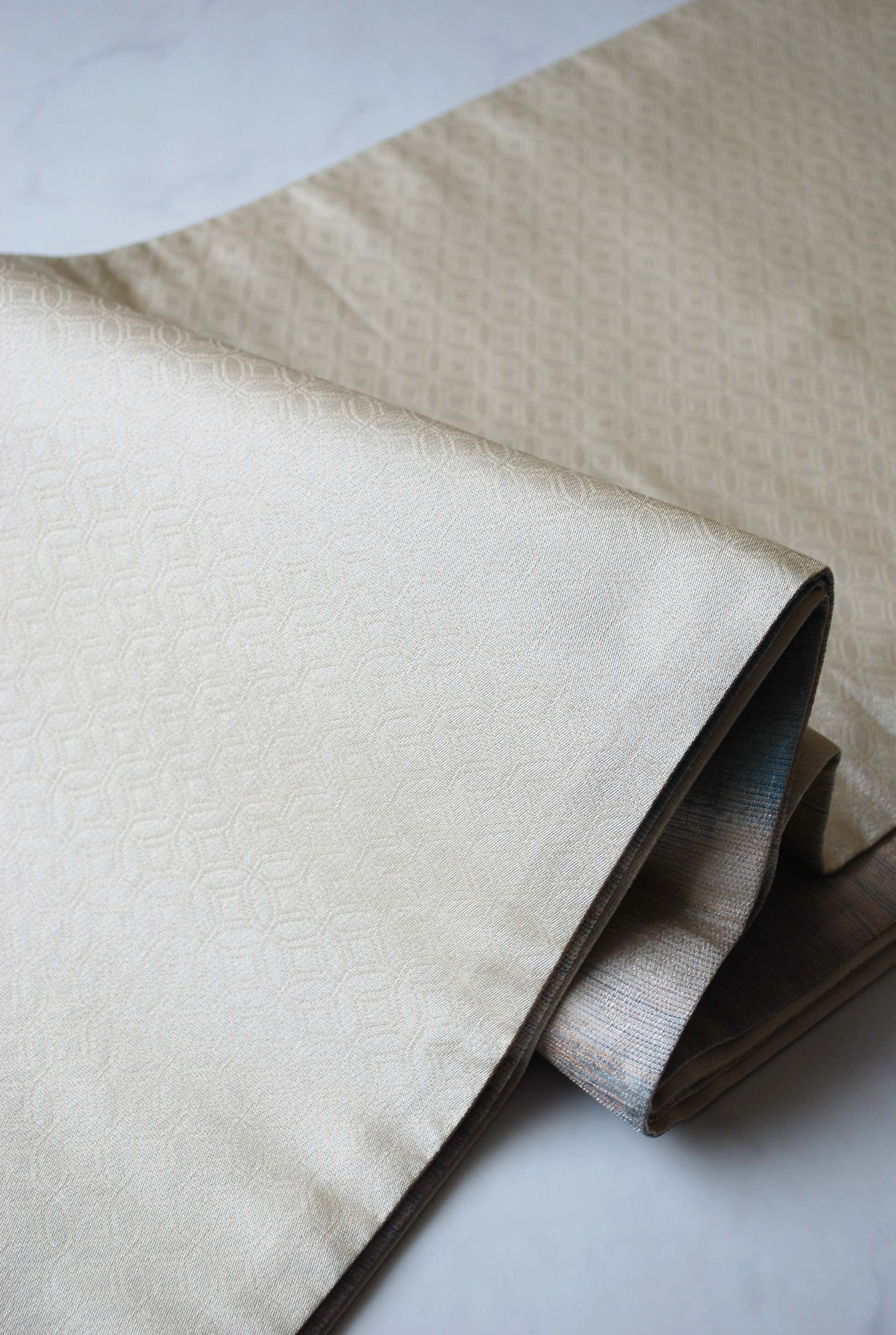 緯糸にランダムに織り込まれた金糸・銀糸は