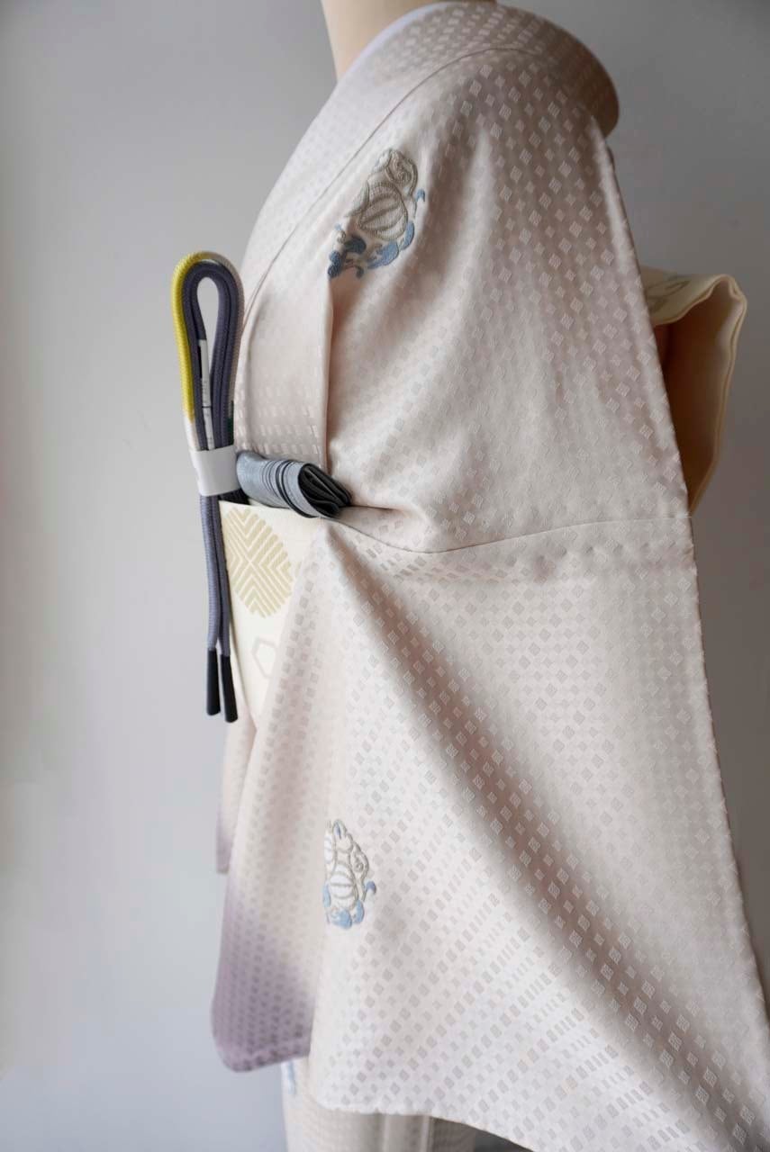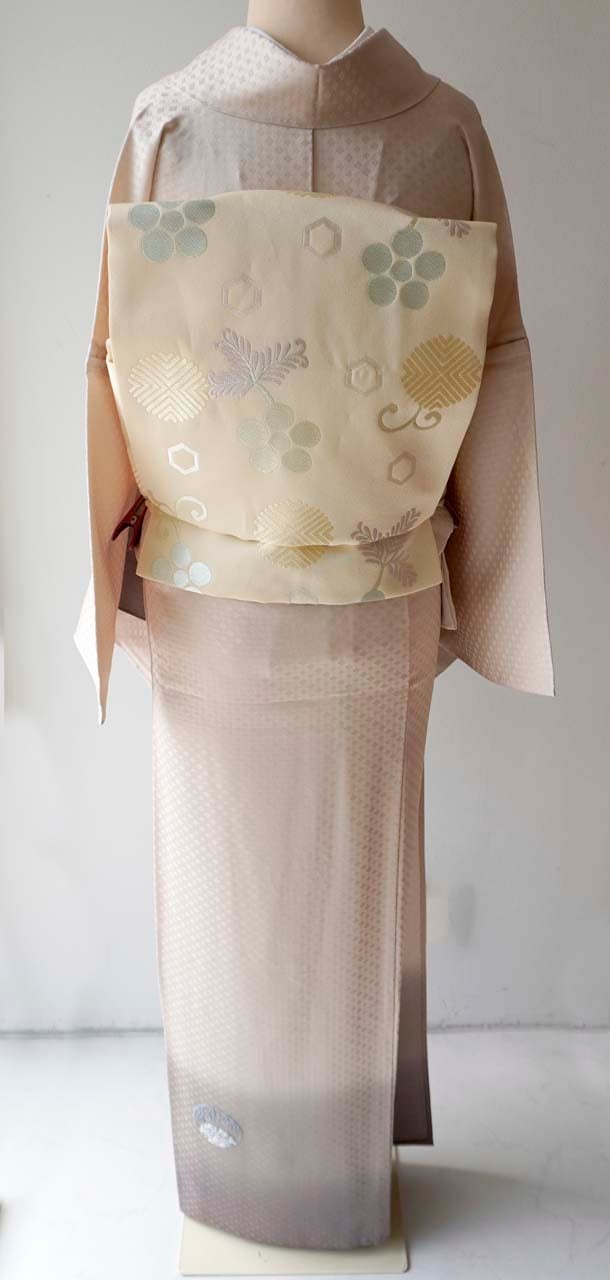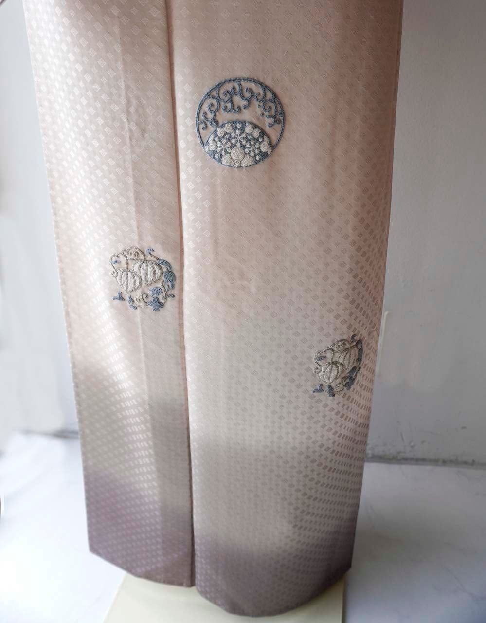 【単衣】三段暈かし 花丸植物文 相良刺繍 附下げ