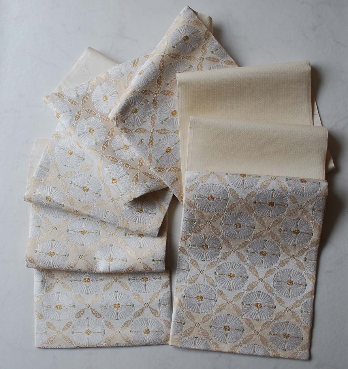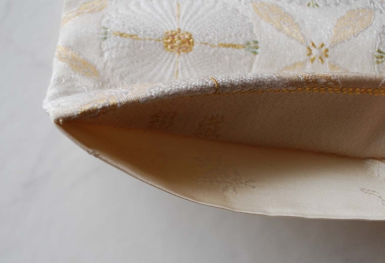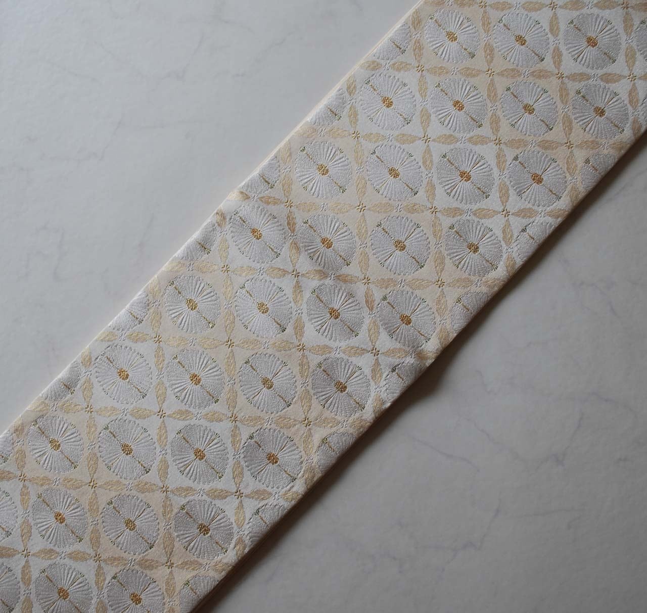 【ふくろ帯】西陣橋本テル織物 薄卵色 菱に菊文 ふくろ帯