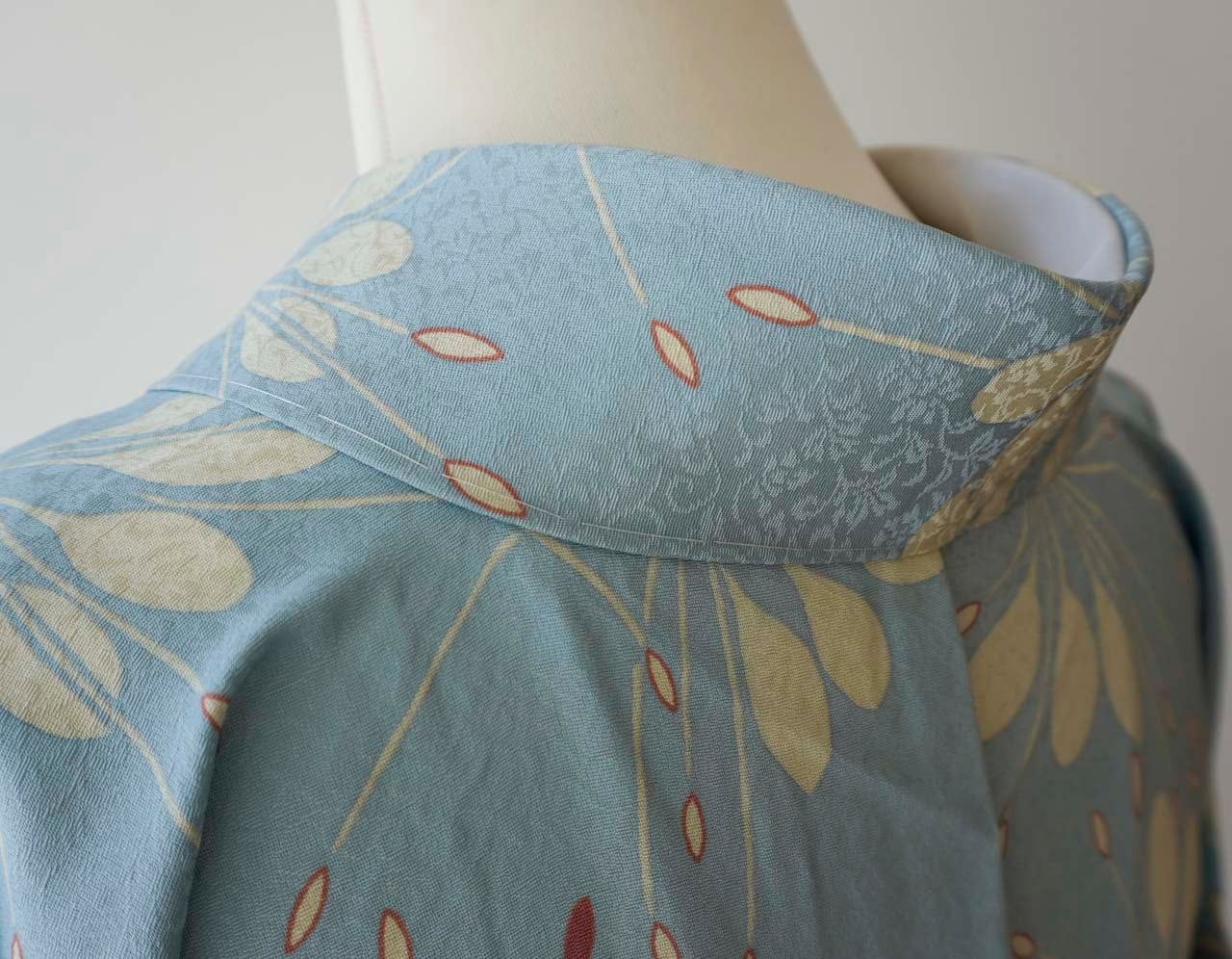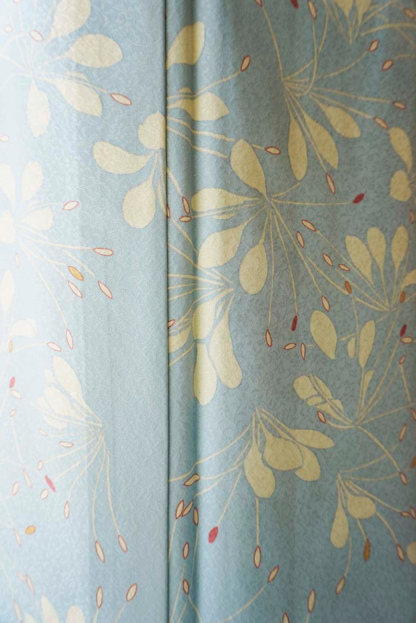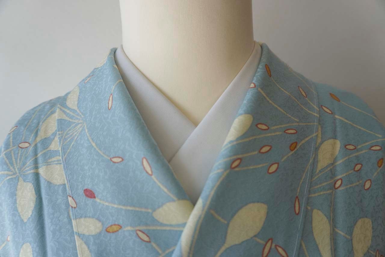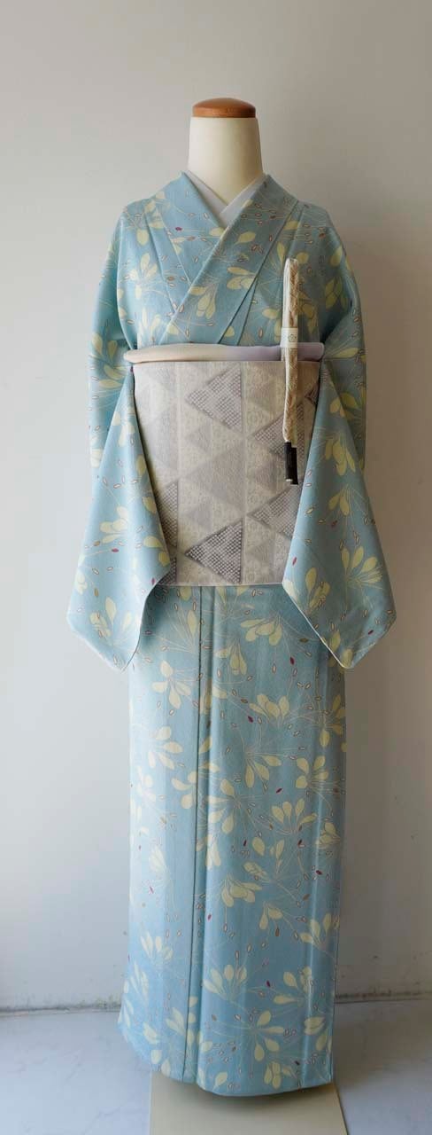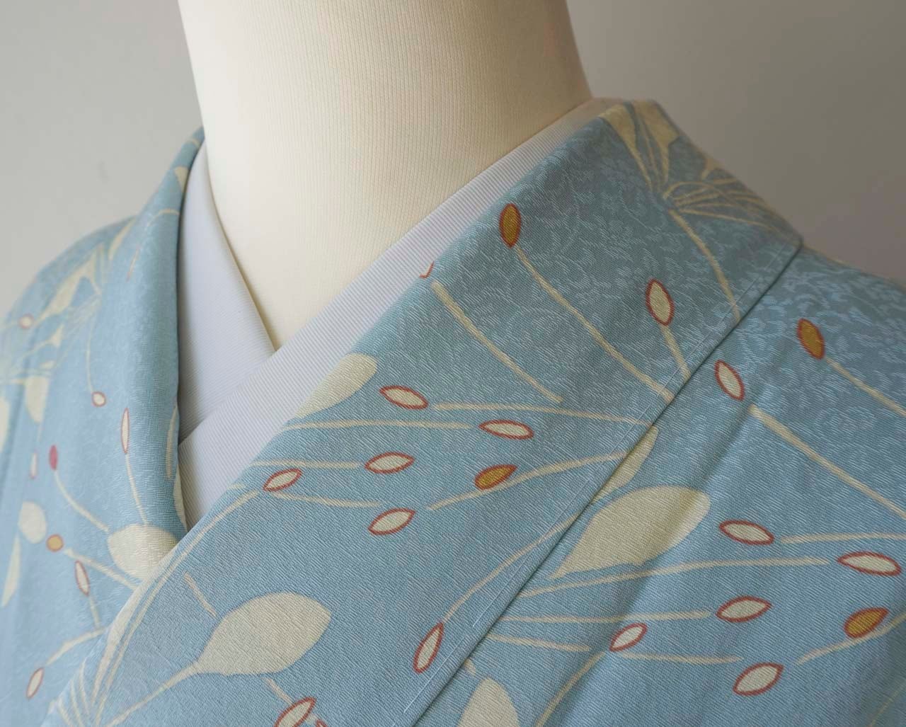 【単衣】白縹色地 抽象花文 小紋 MaoMao