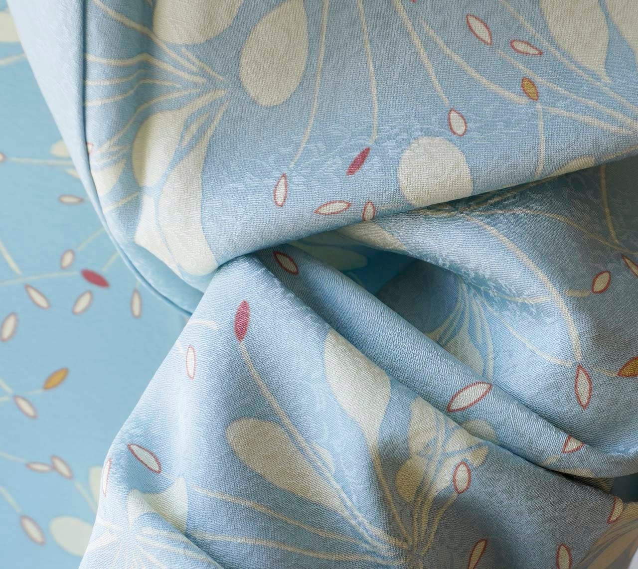 地紋の花唐草は、ほのかな光沢と奥行きを