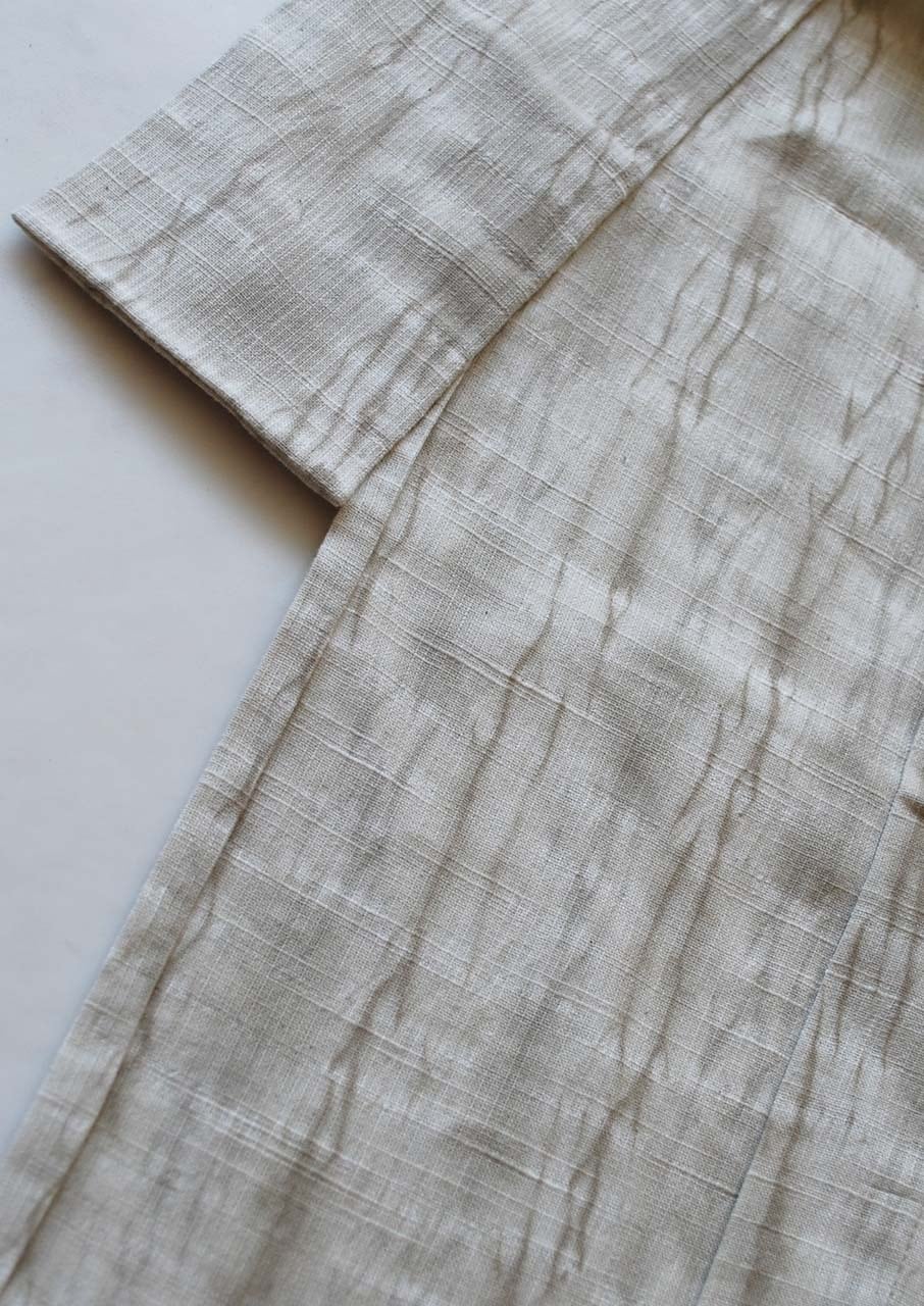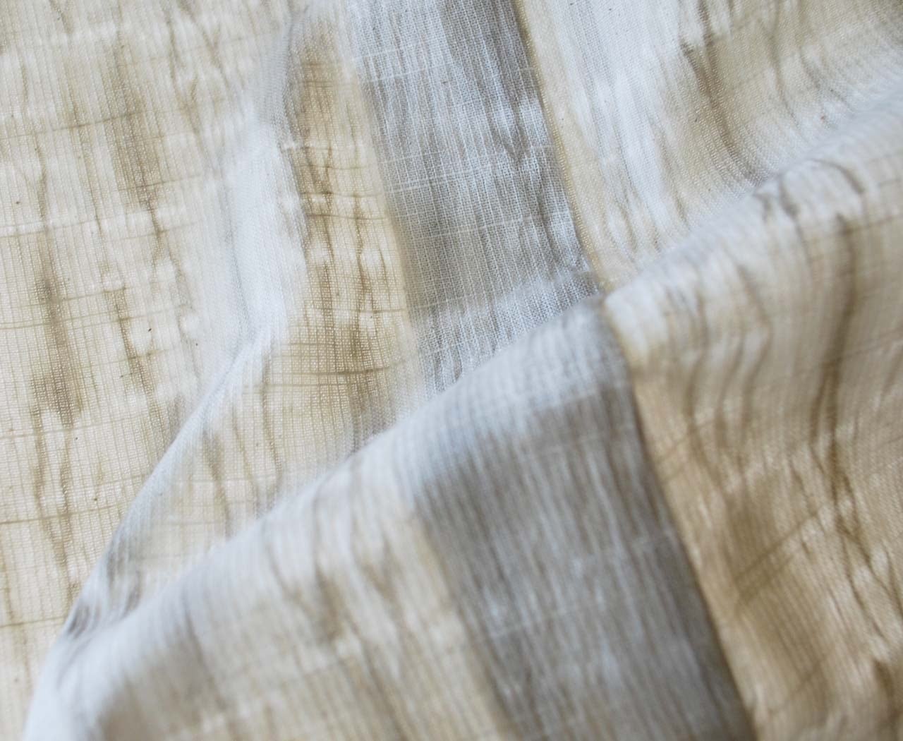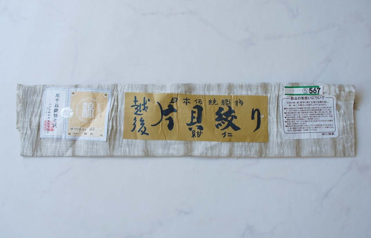 【単衣】小千谷織物 紺仁謹製 越後片貝絞り 利休色系縫い絞り 仕立上がり品