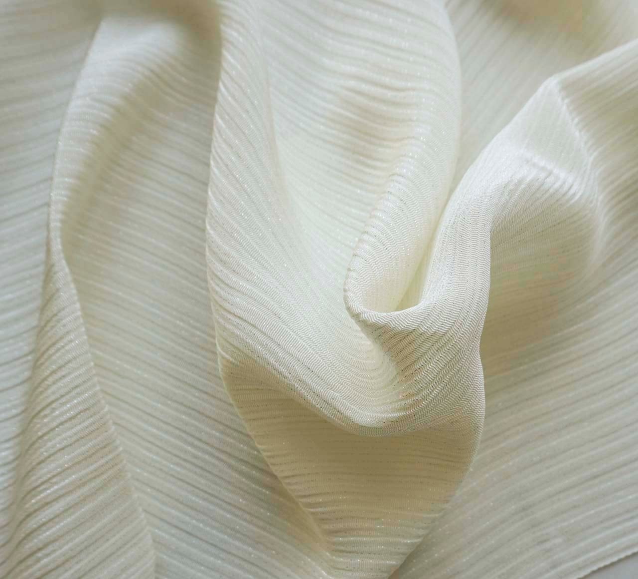 【帯揚げ】クリームイエロー色地 縞文に銀糸 帯揚げ 260419②