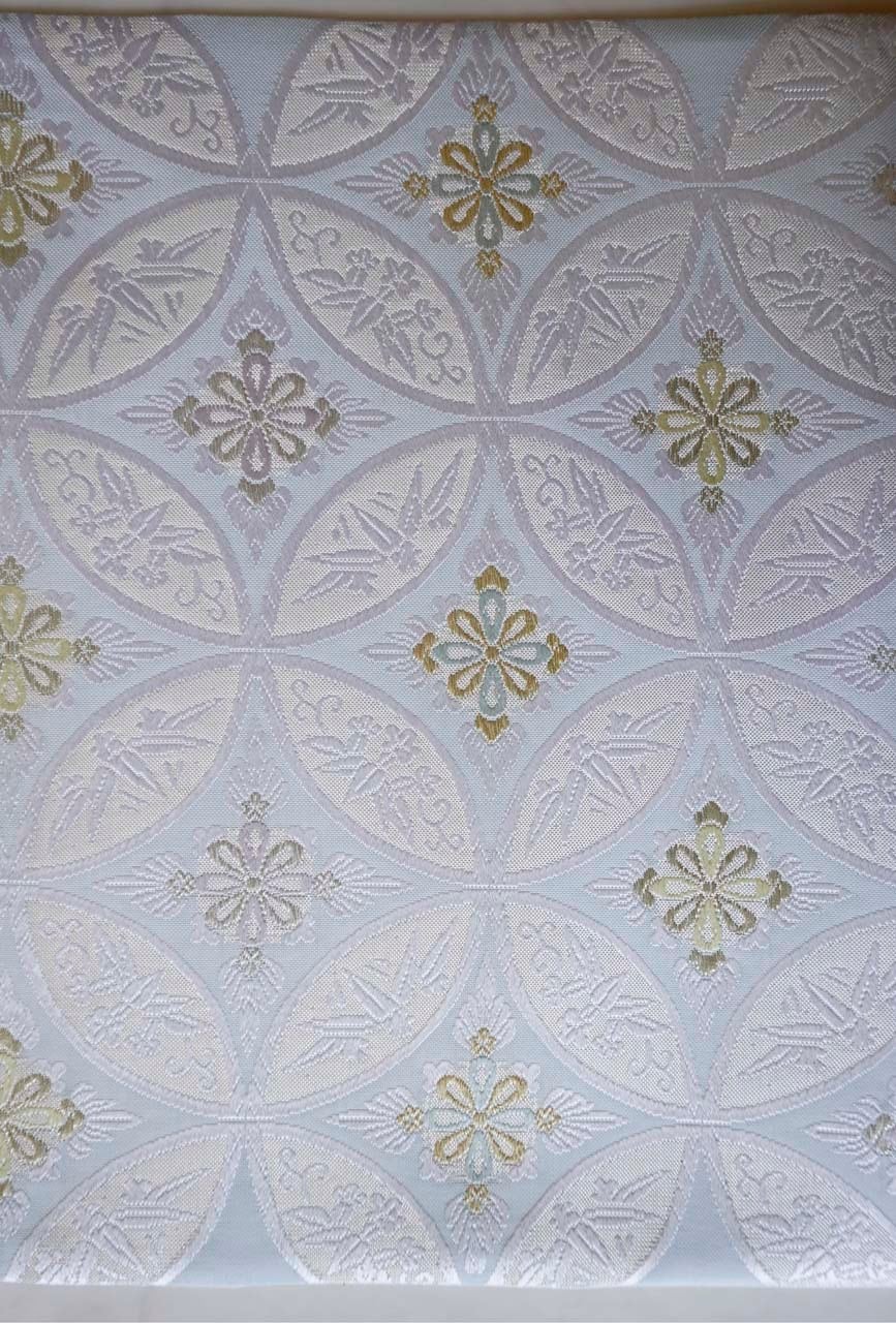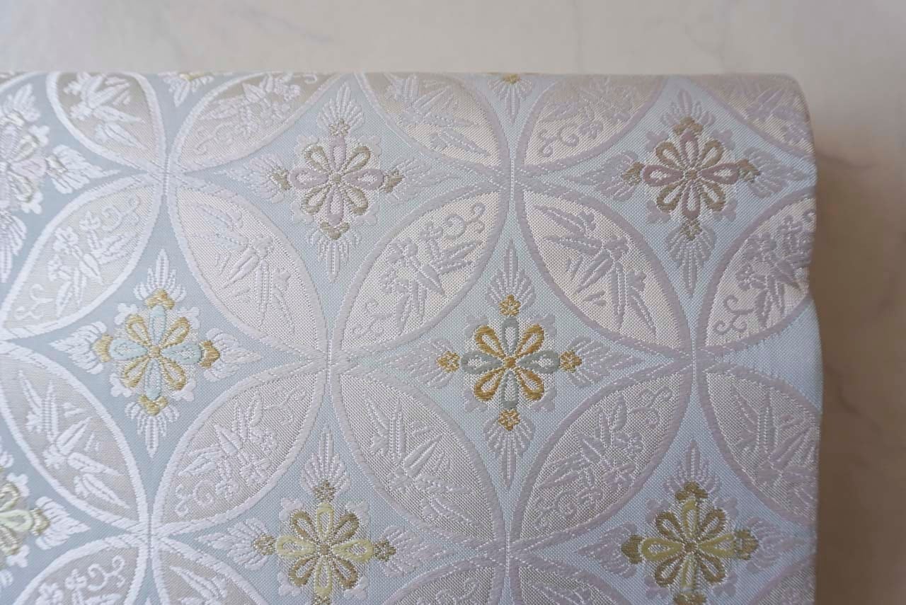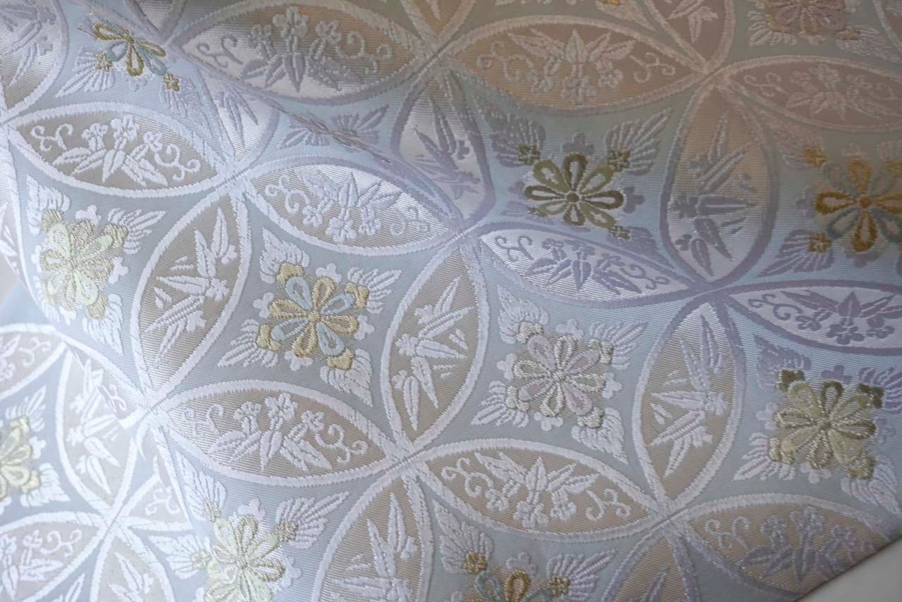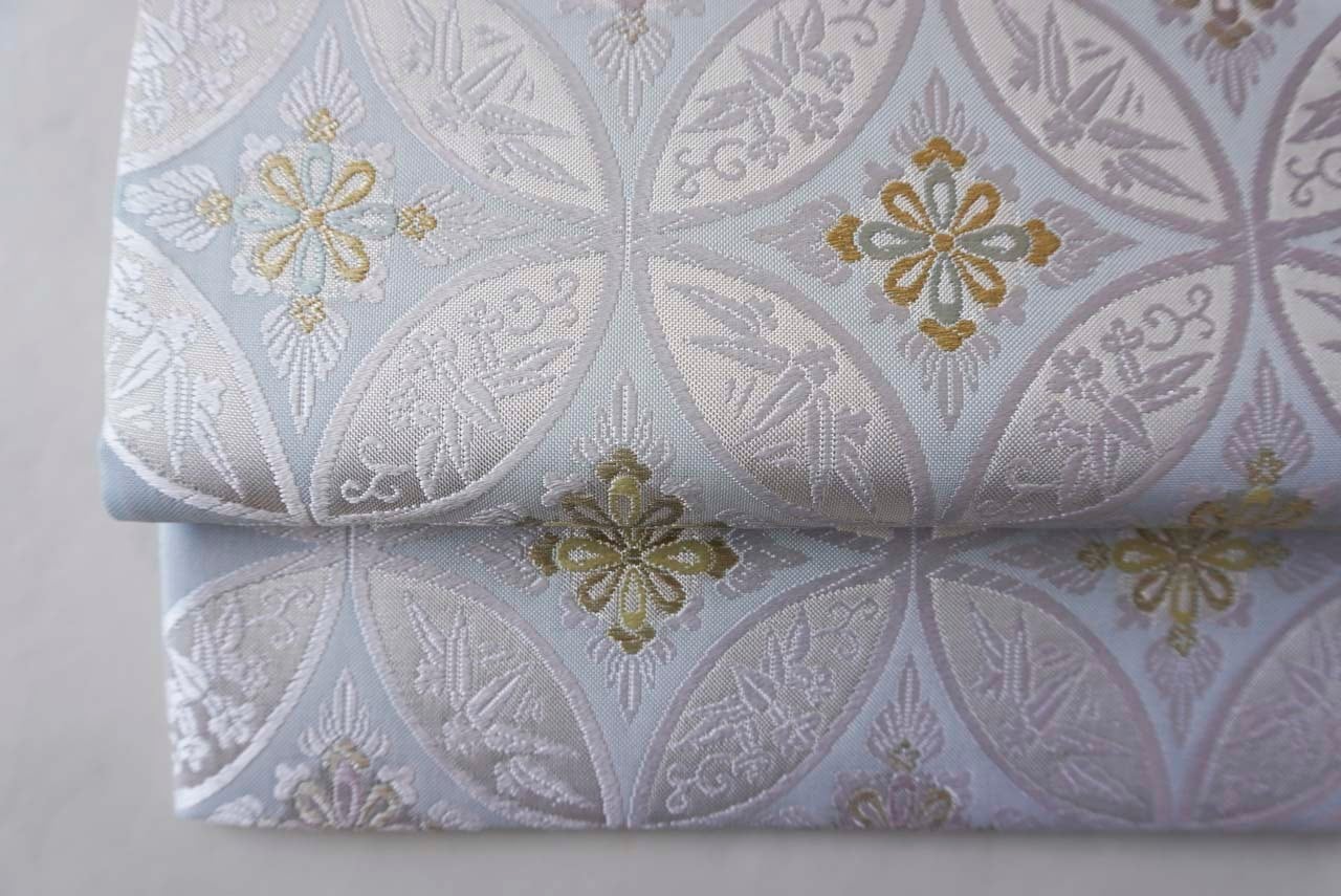 【ふくろ帯 】西陣ふくい謹製 白藍色 七宝花菱文 ふくろ帯