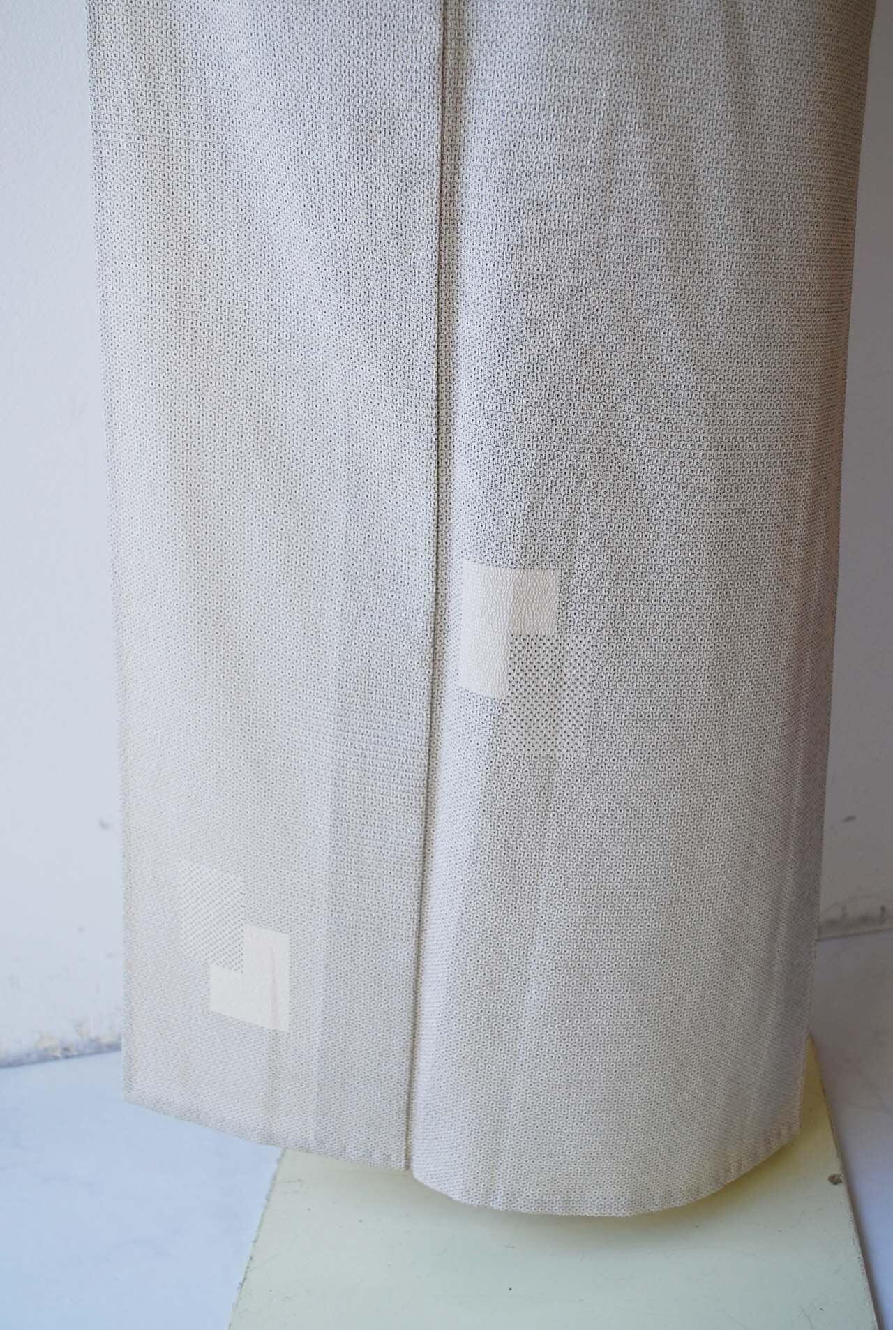 【単衣】生成り地 亀甲絣に色紙紋 塩沢御召