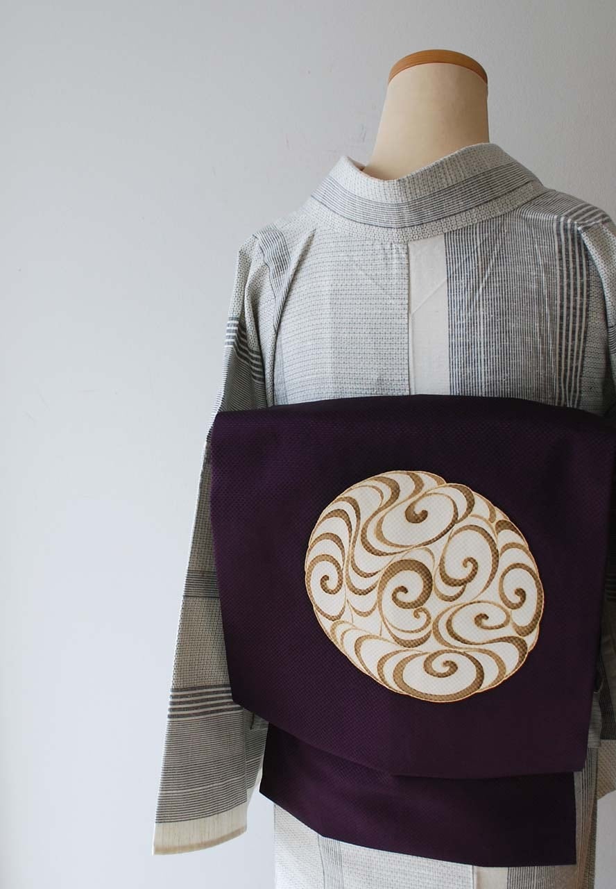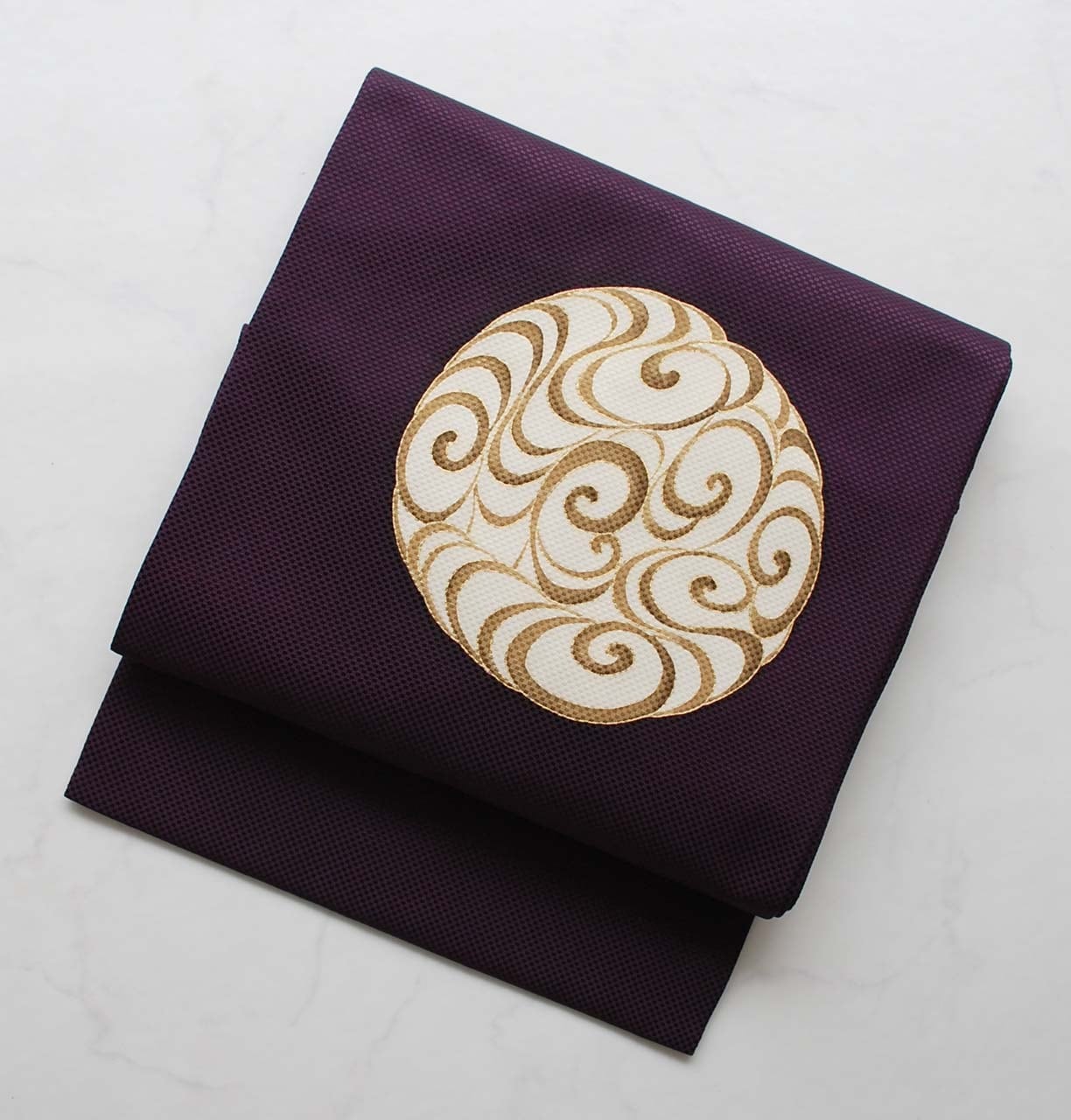 【なごや帯】紫紺色 丸文光琳波 なごや帯